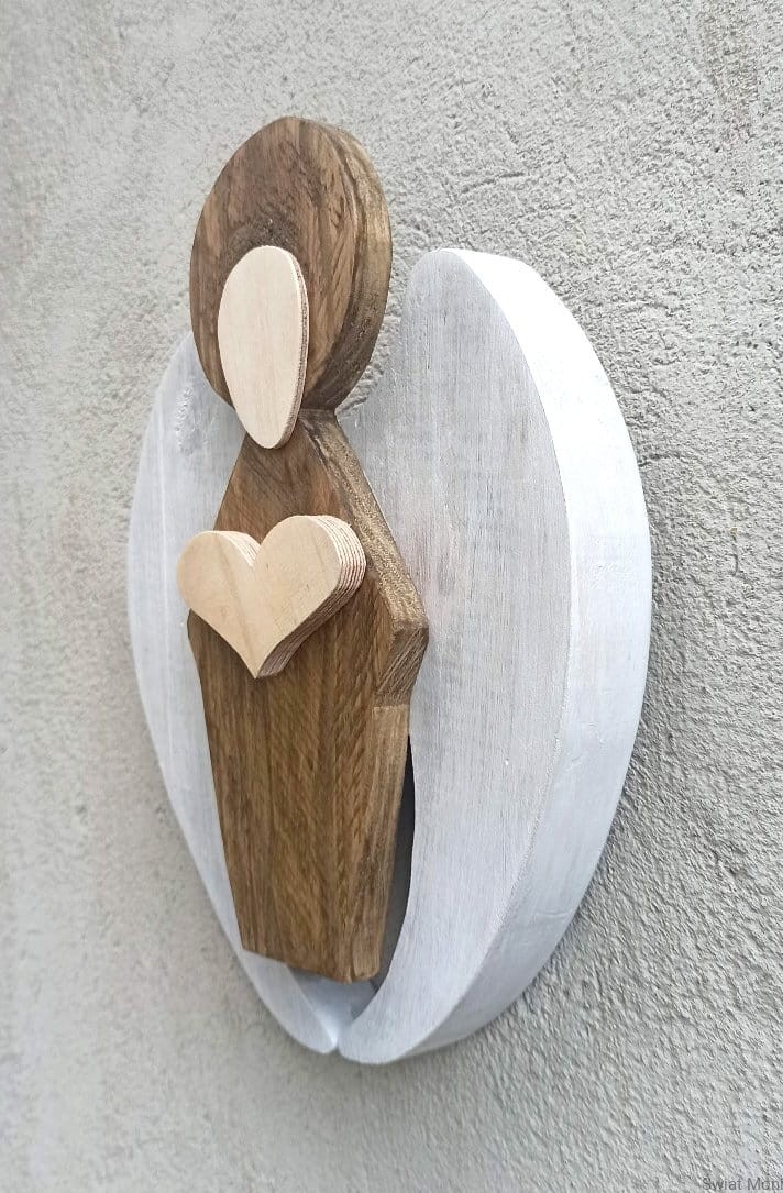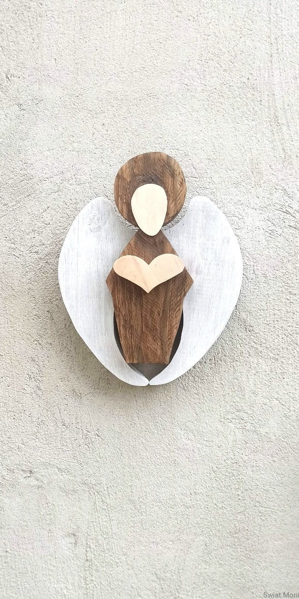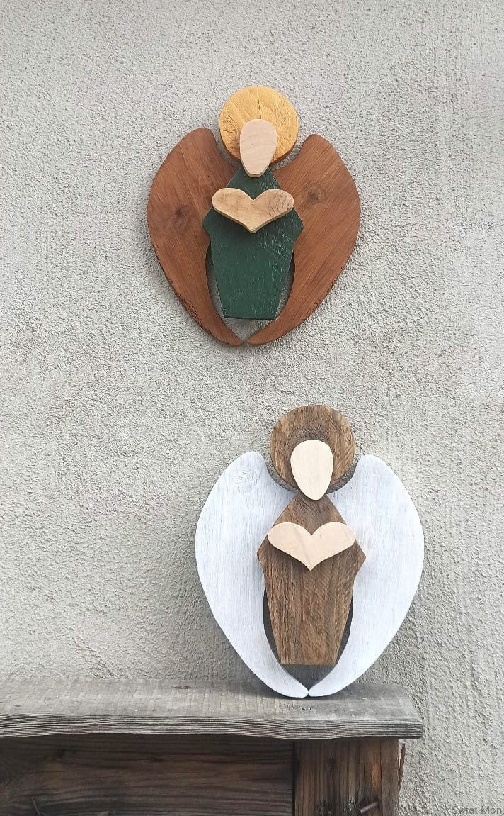 Anioł Oaza Spokoju dla każdego kto potrzebuje choć chwili wyciszenia. Jego ogromne skrzydła potrafią otulić nas całych, dać ukojenie i spokój naszej potarganej duszy. Duże serce jest pełne czystej i bezinteresownej MIŁOŚCI, którą wlewa w nas, by dać nam siły iść do drugiego człowieka każdego dnia... Wysokość Anioła to 30 cm, cena 160 zł. Na zamówienie dowolna kolorystyka i rozmiar.