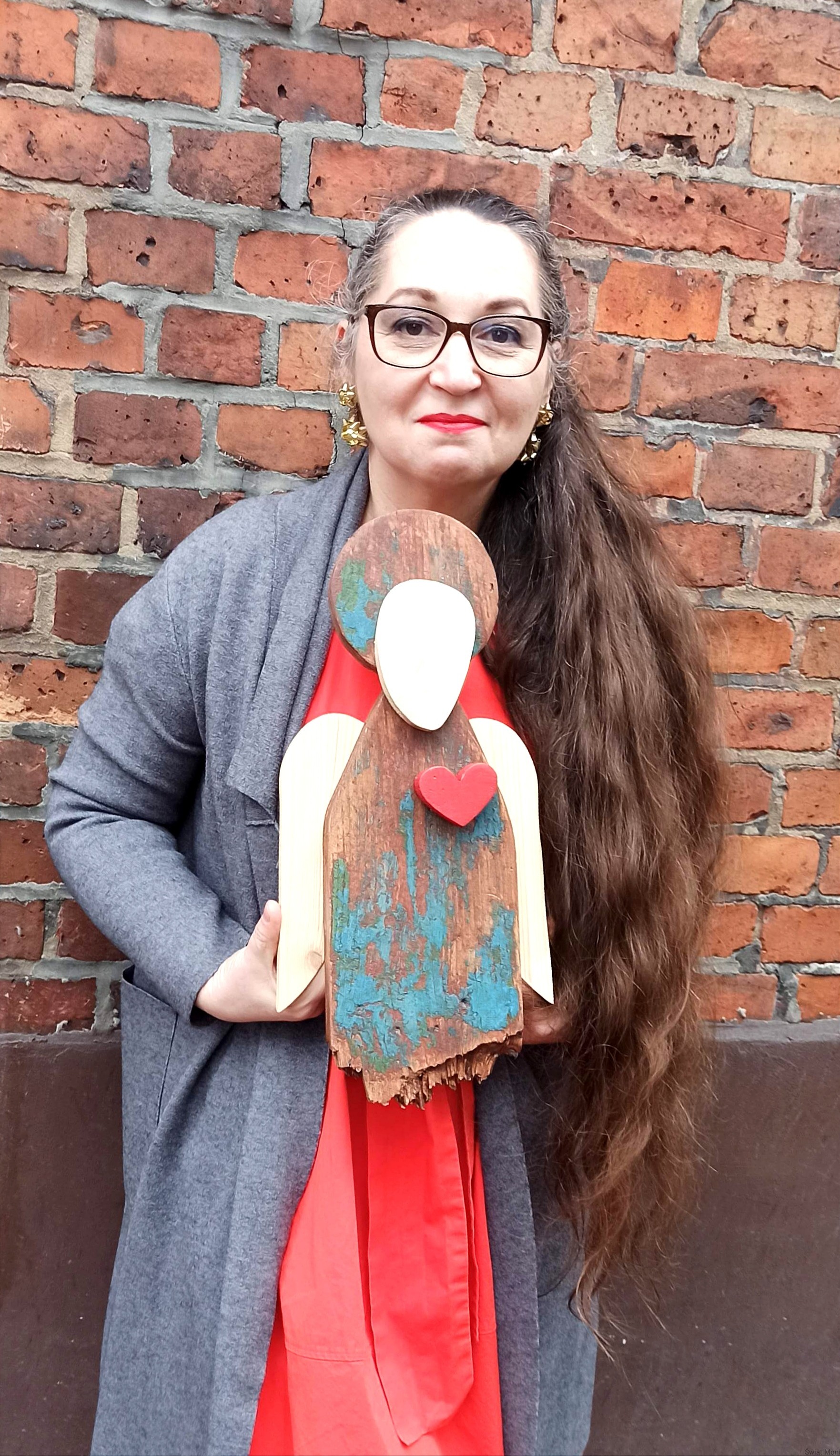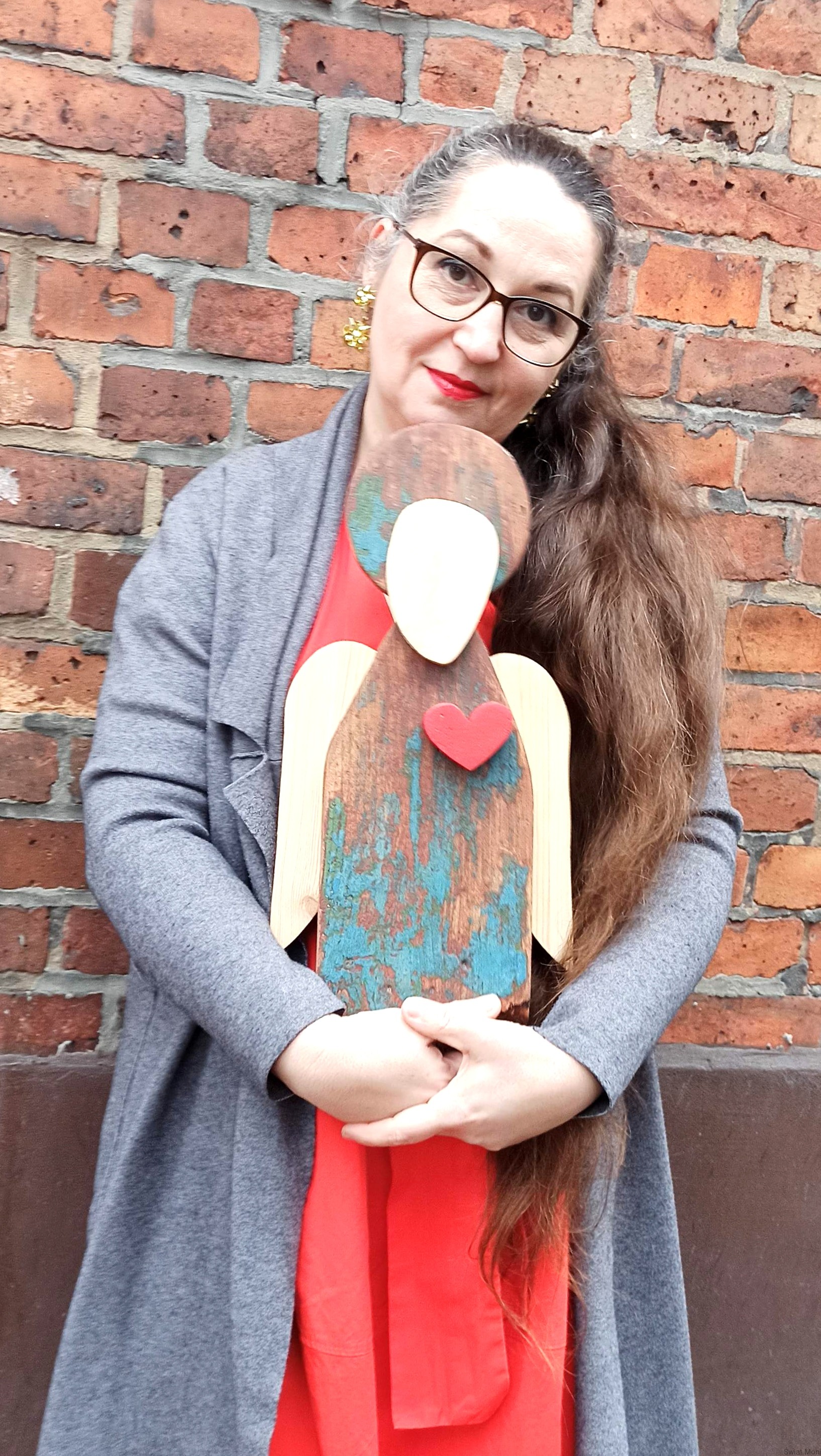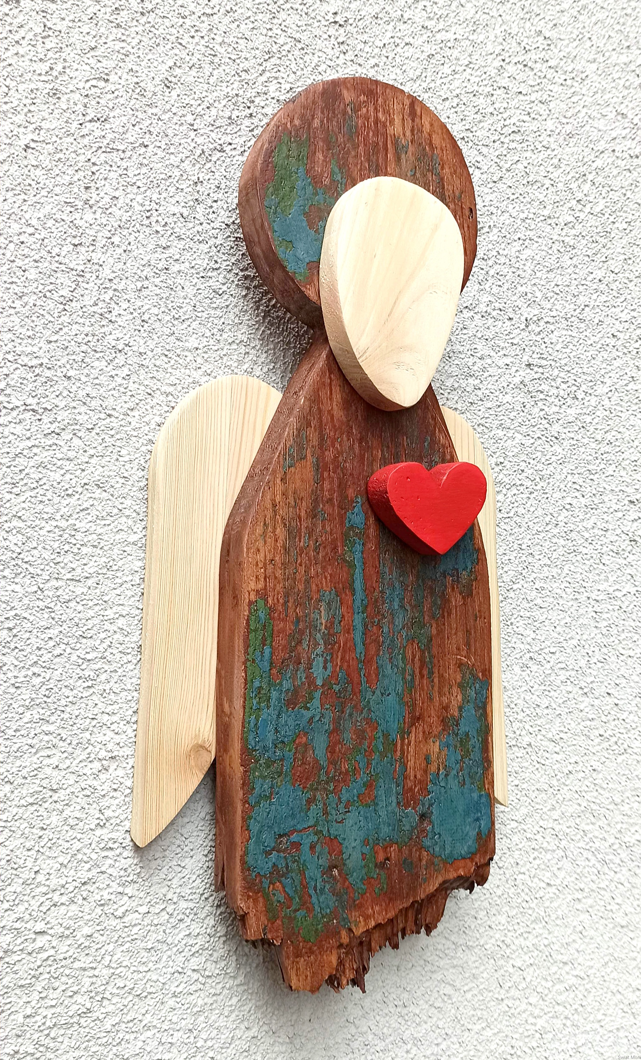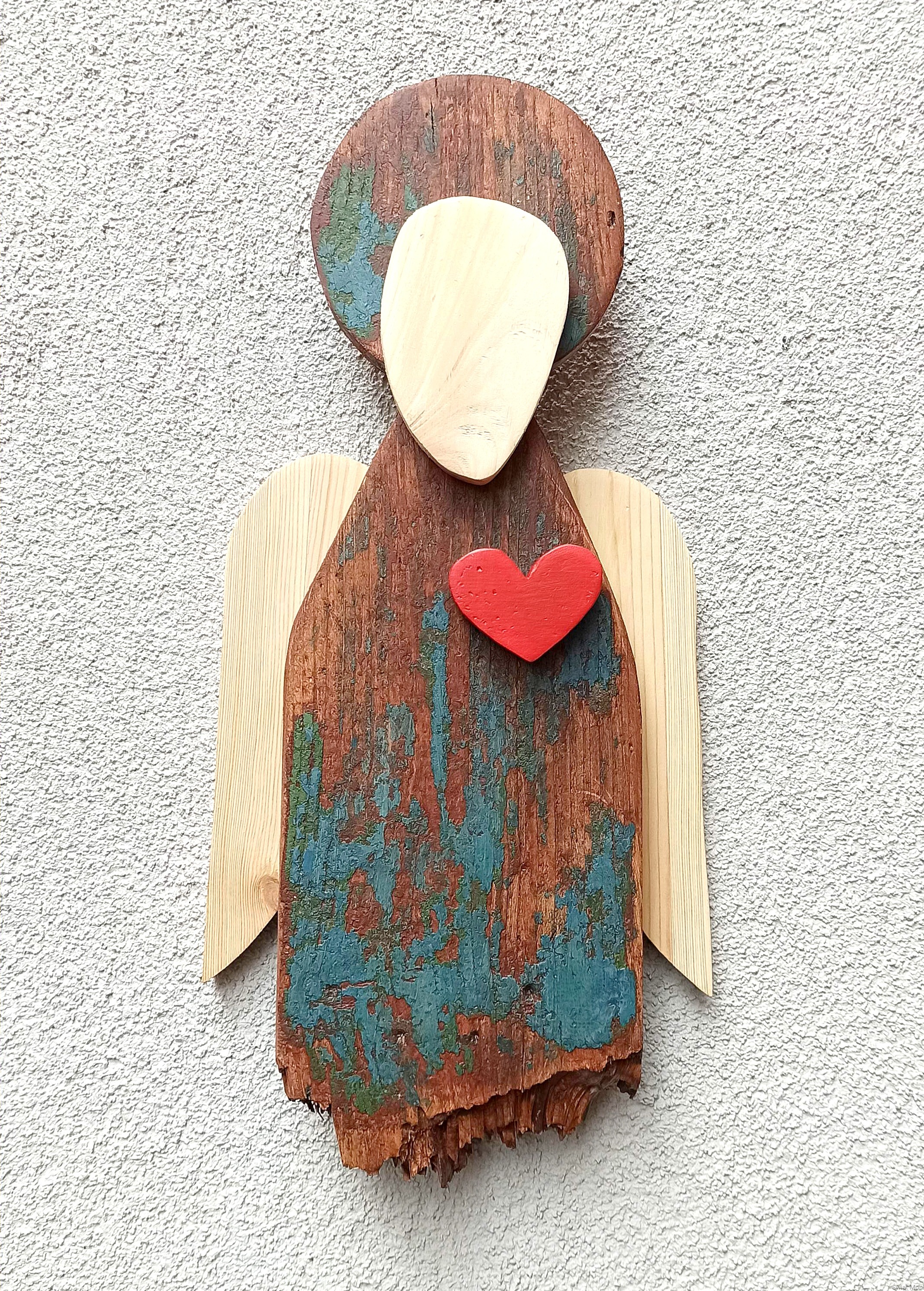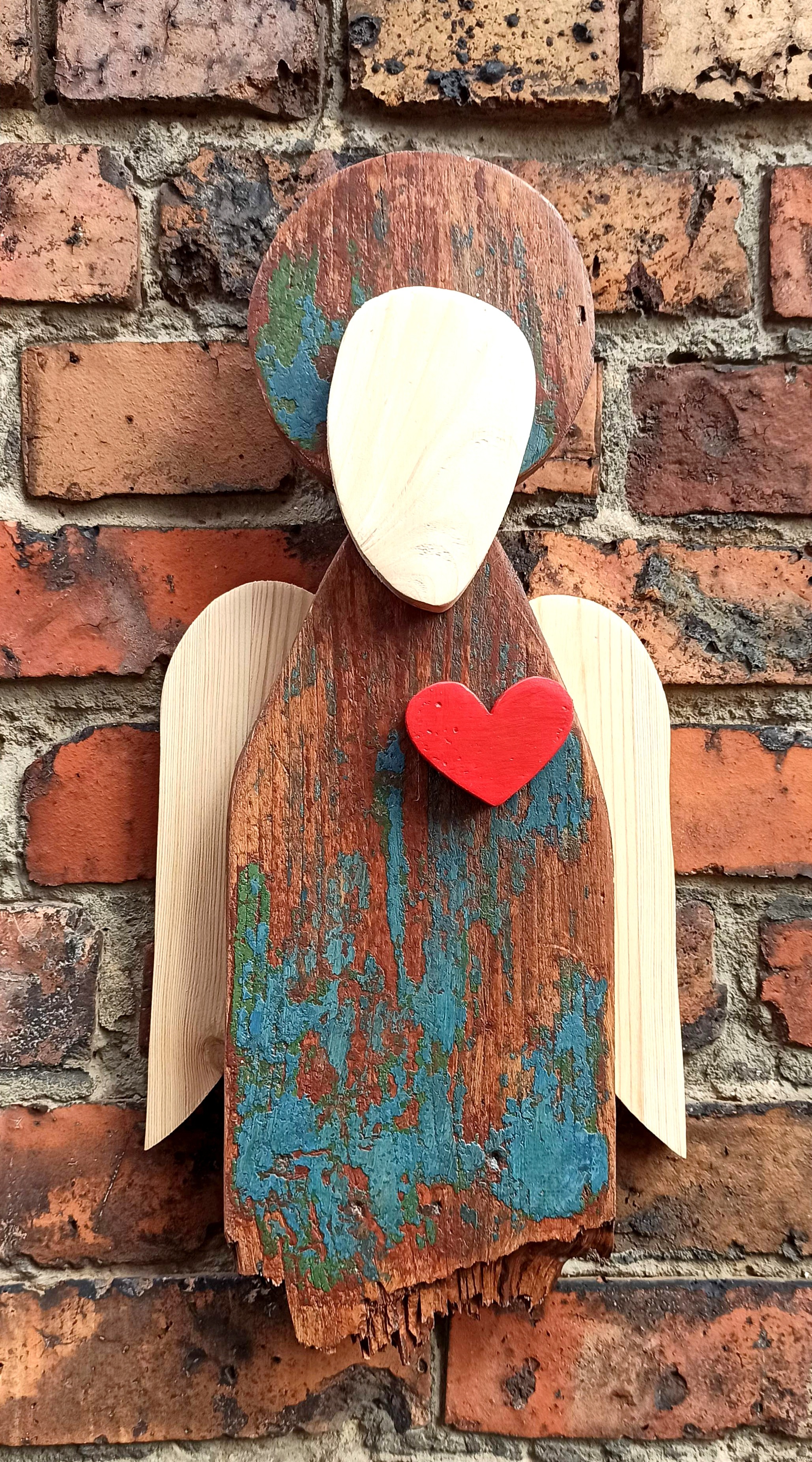 Anioł Zatroskany Postrzępiony 45 cm do wewnątrz ze starej podłogi