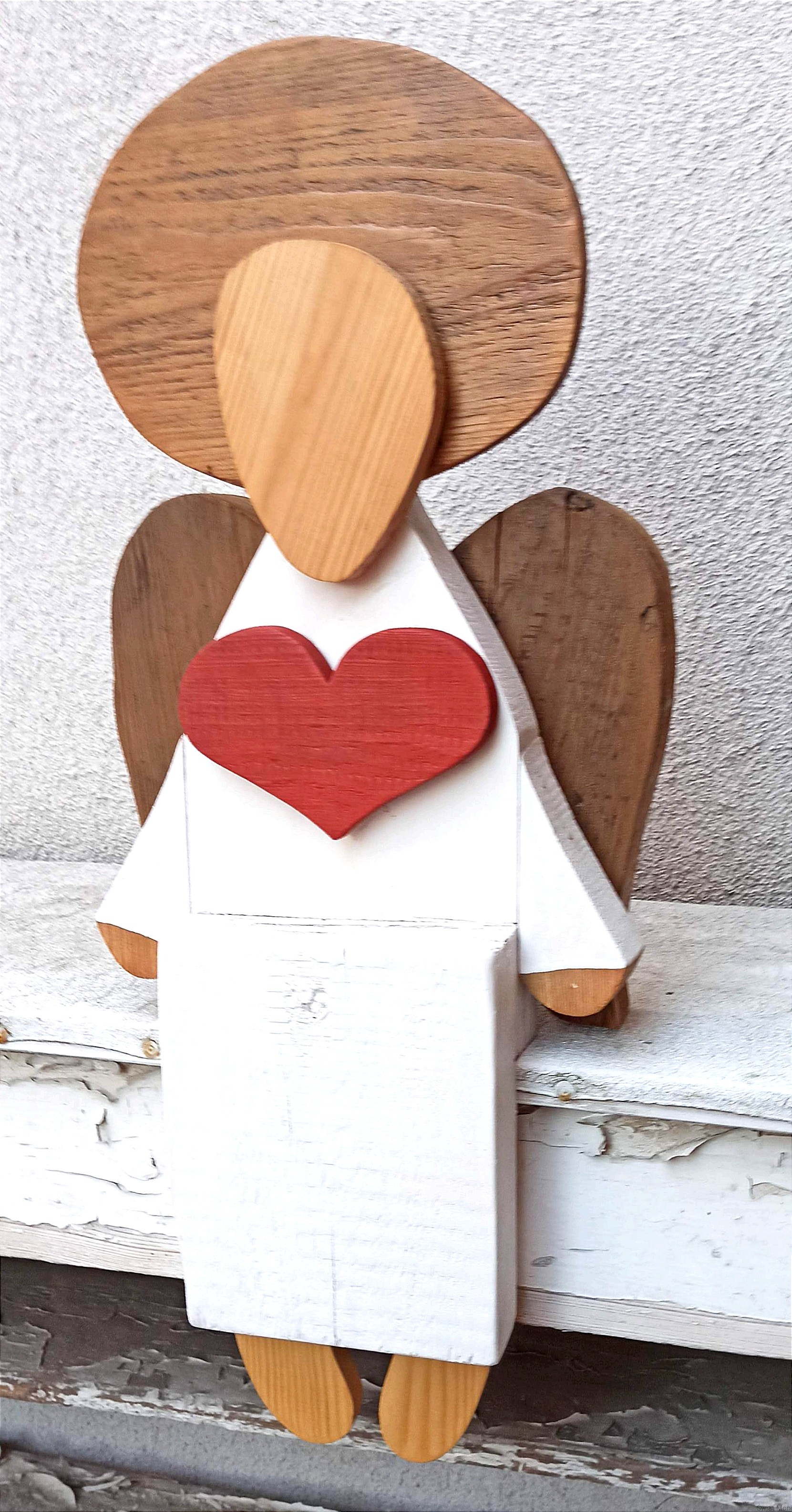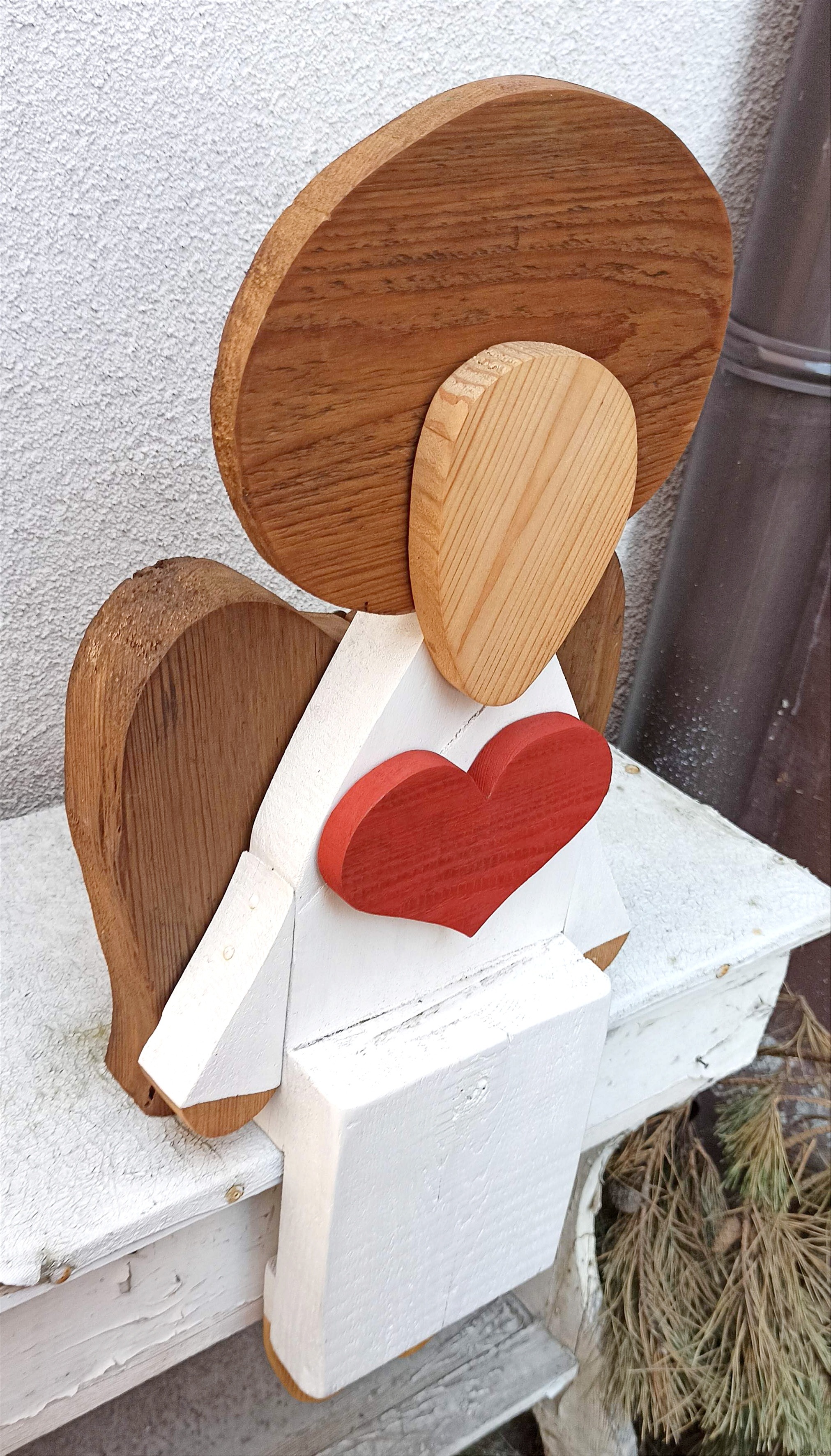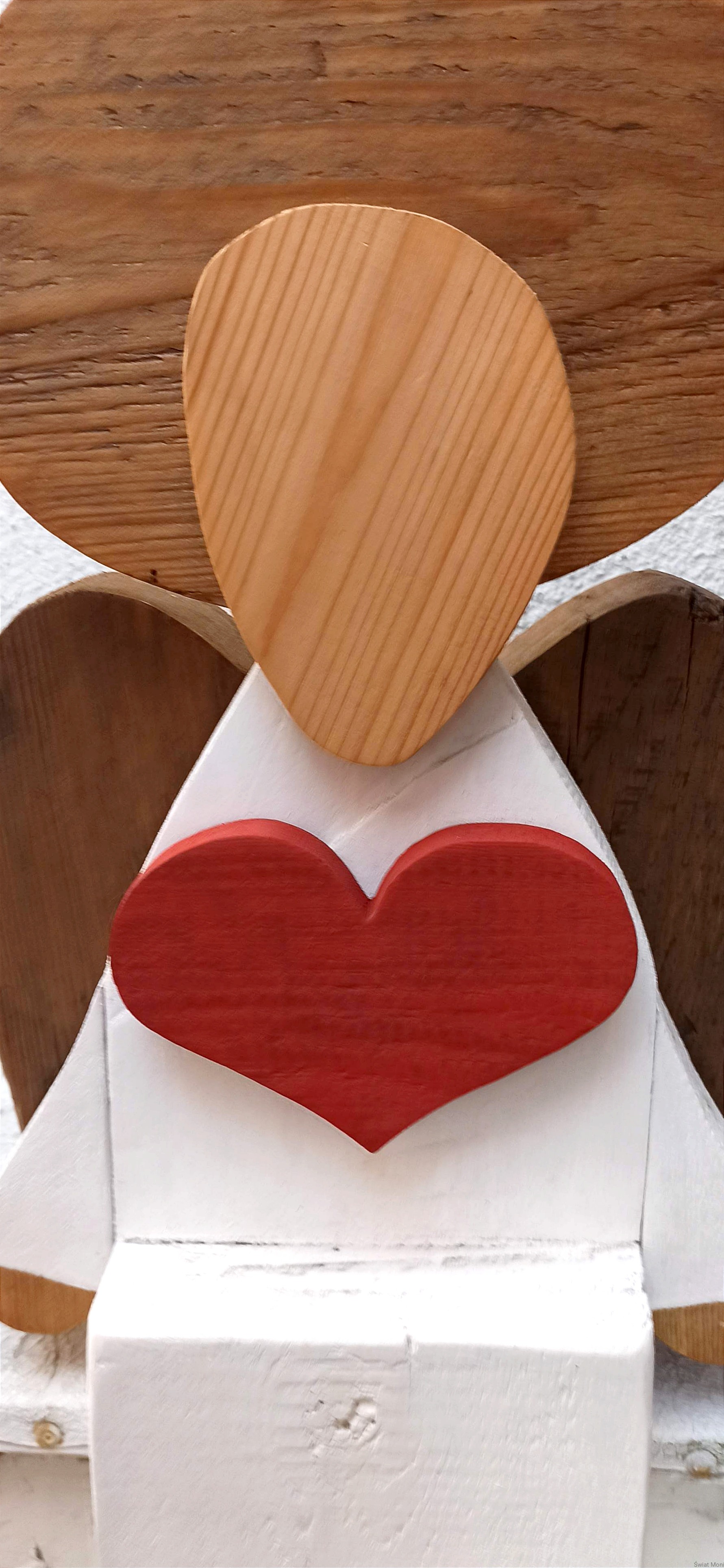 Anioł siedzący w białej sukni z czerwonym sercem 64 cm