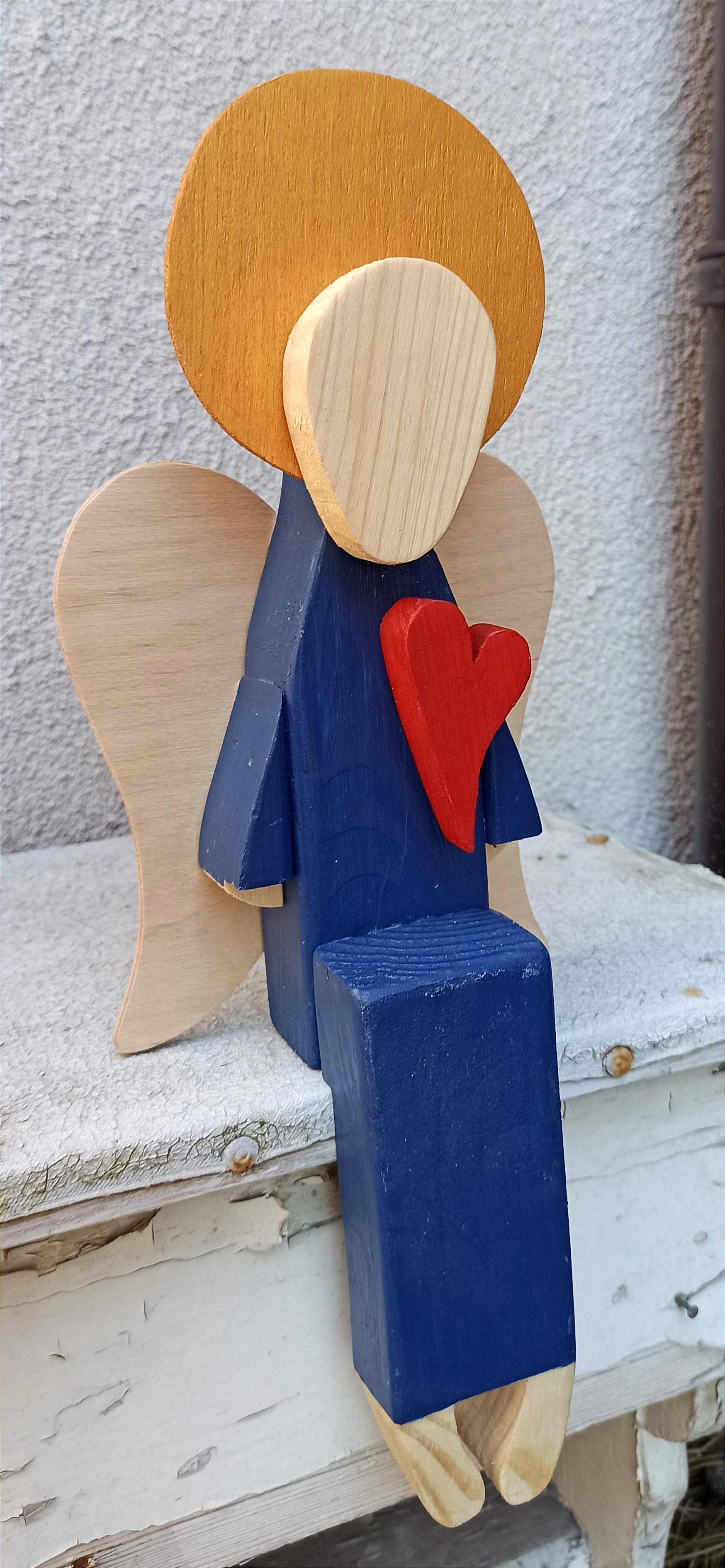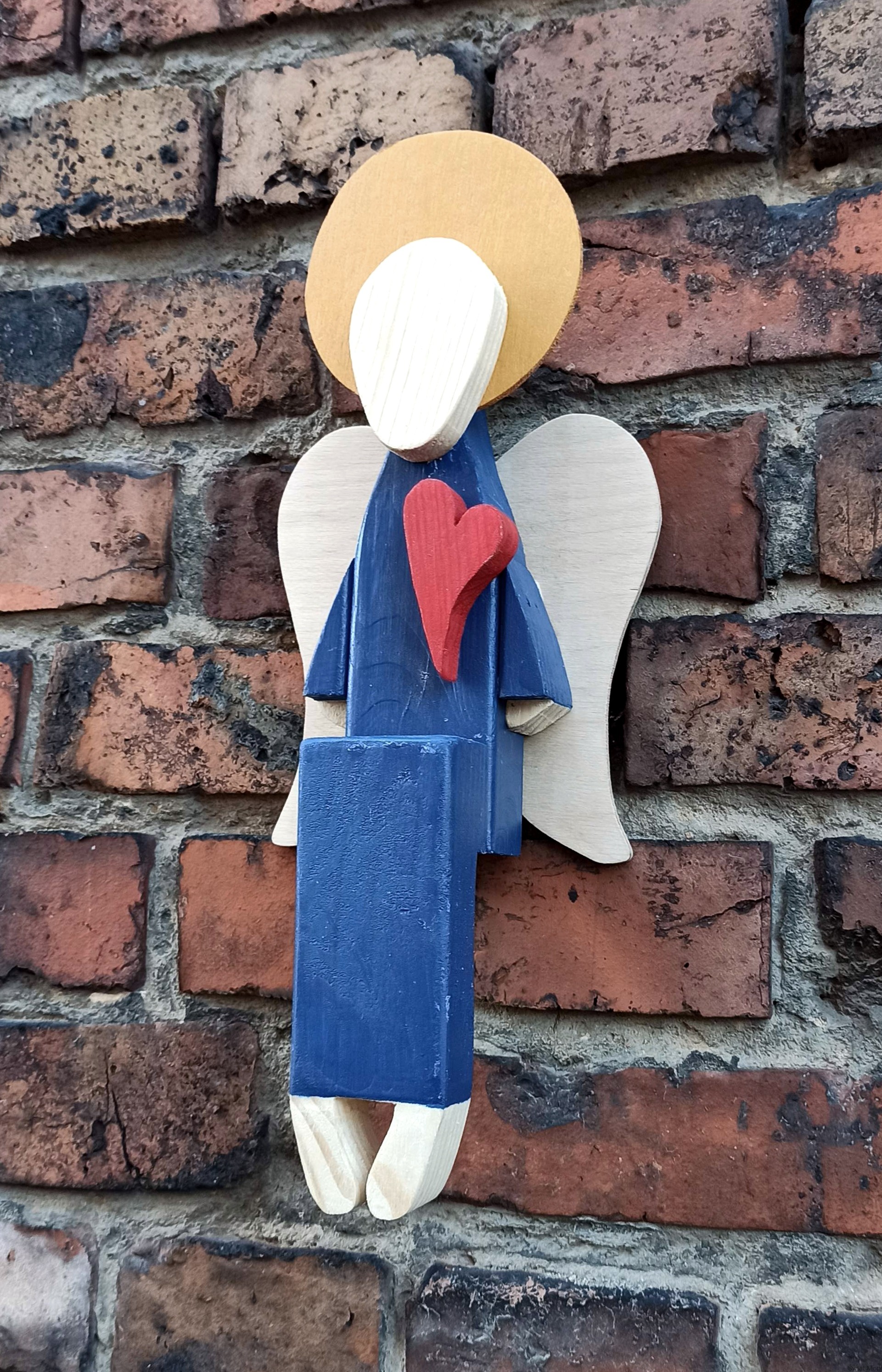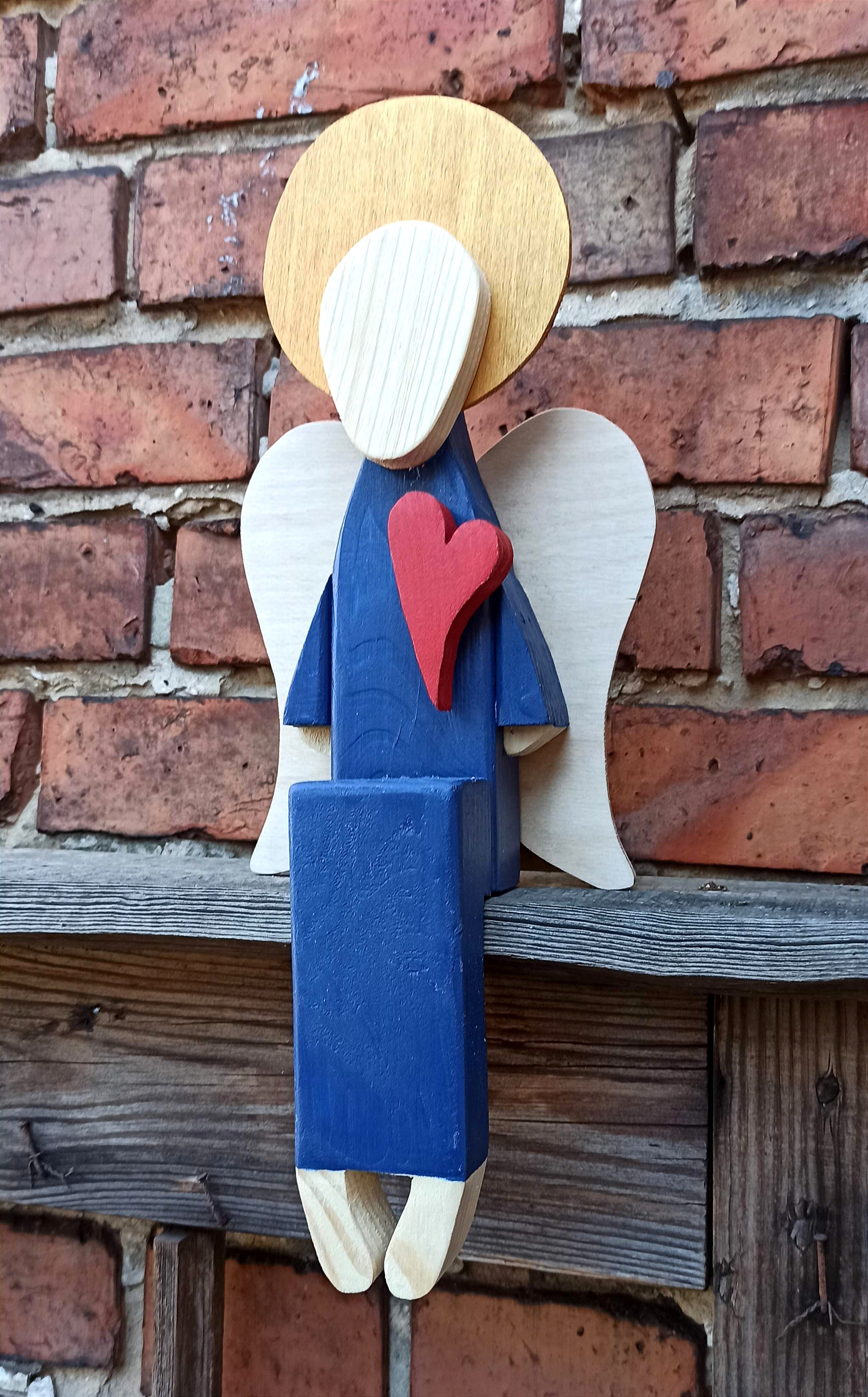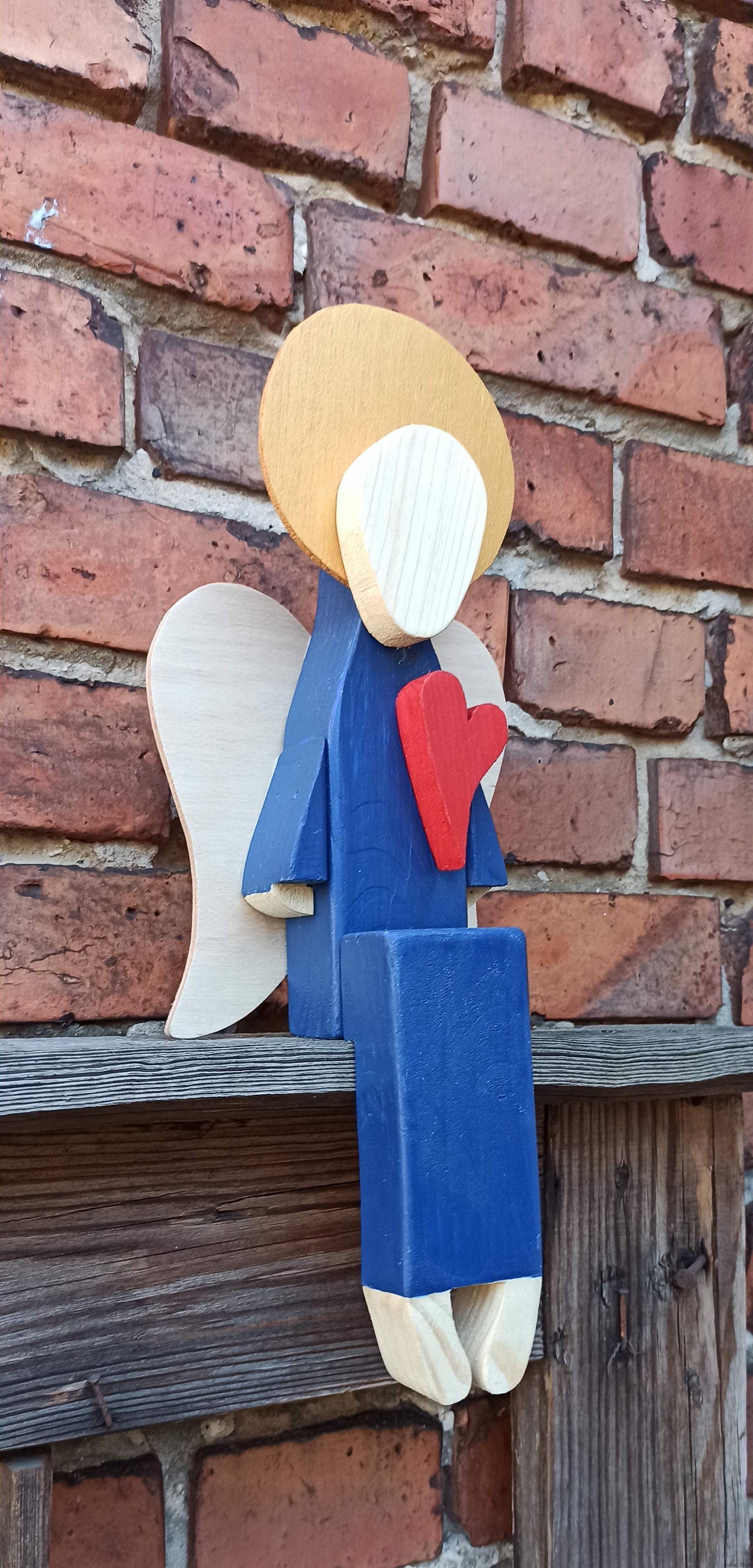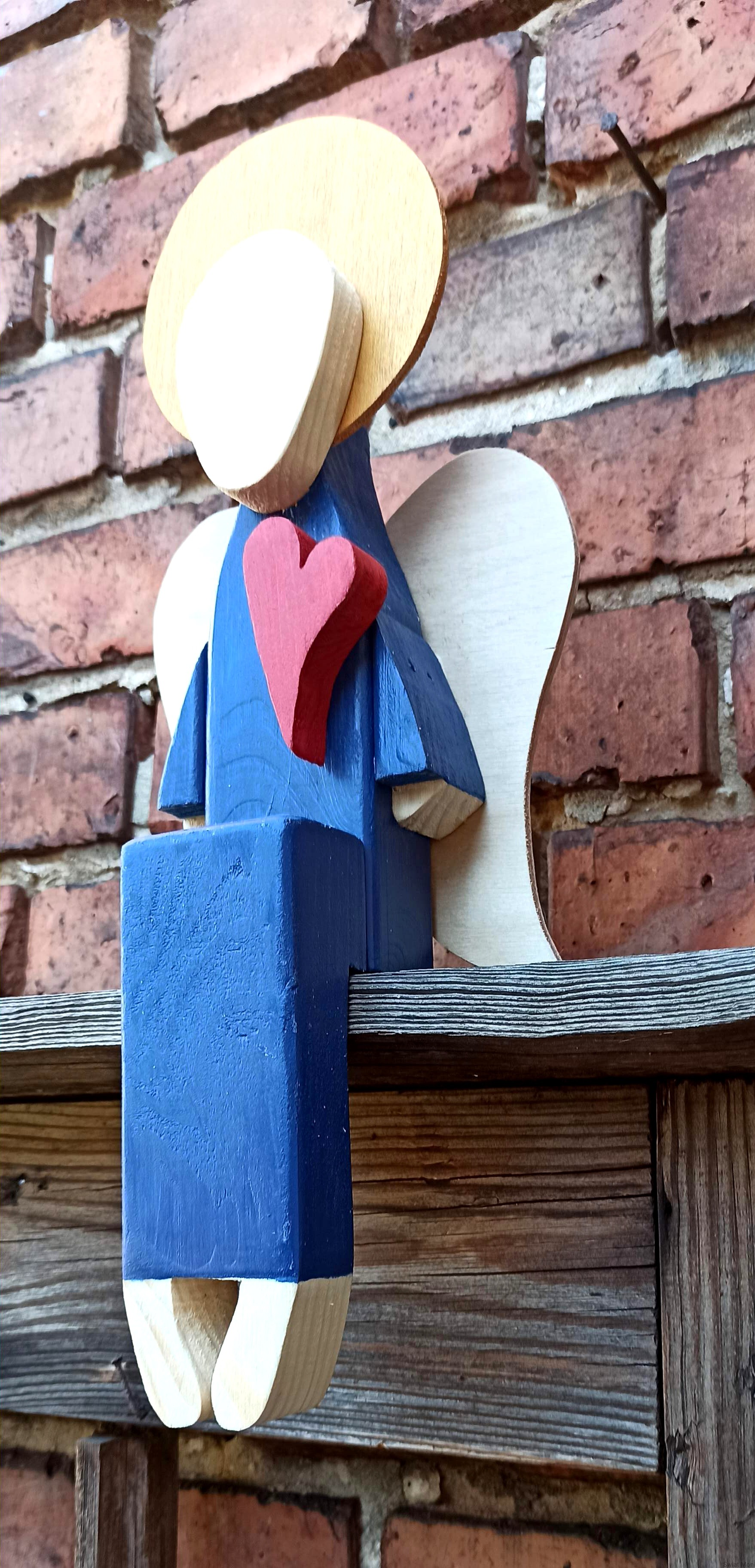 Anioł siedzący w ciemno niebieskiej sukni 39 cm do wewnątrz