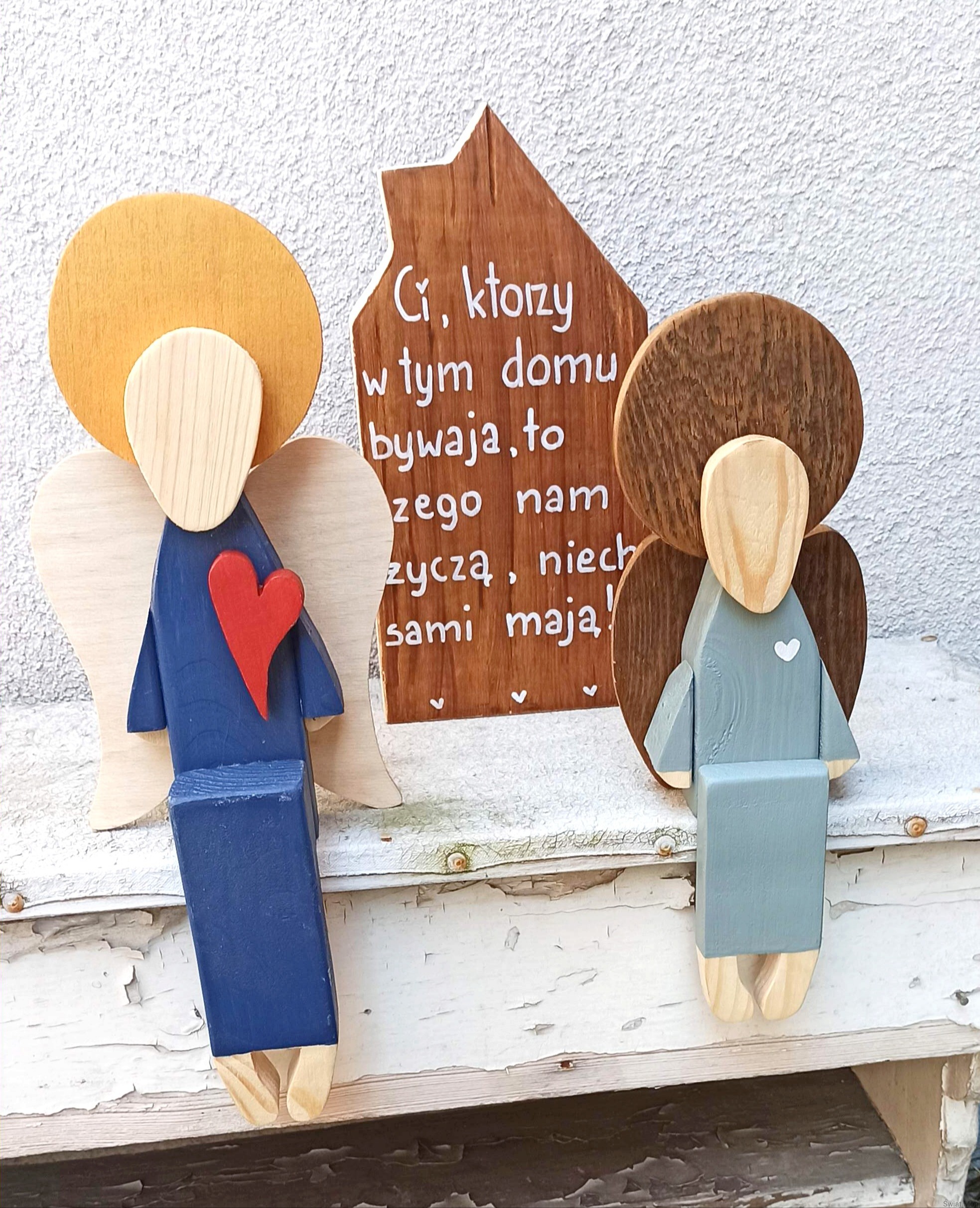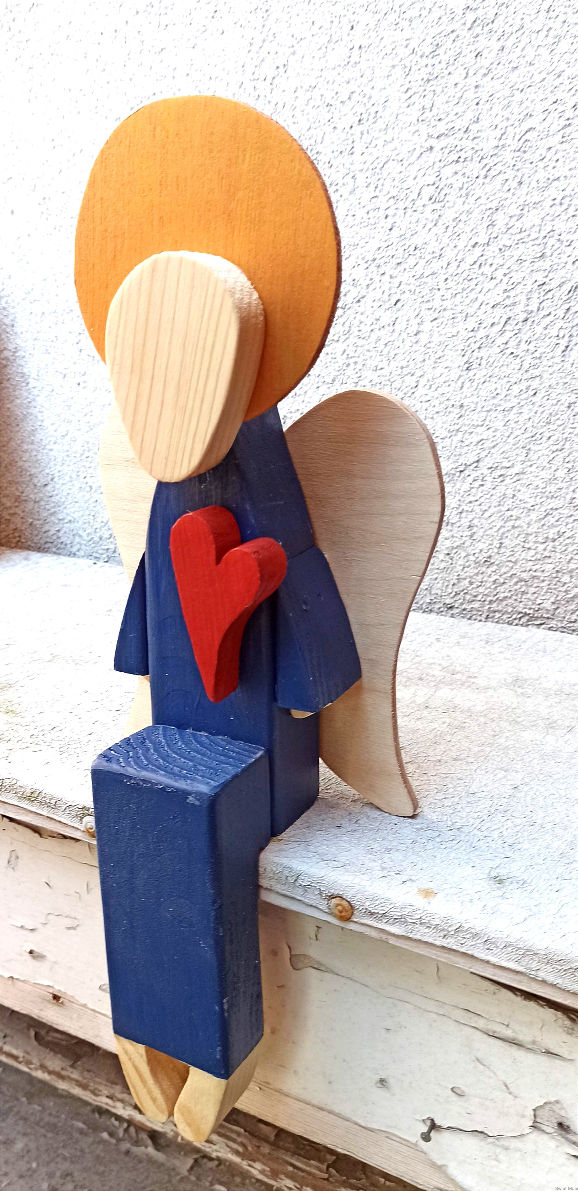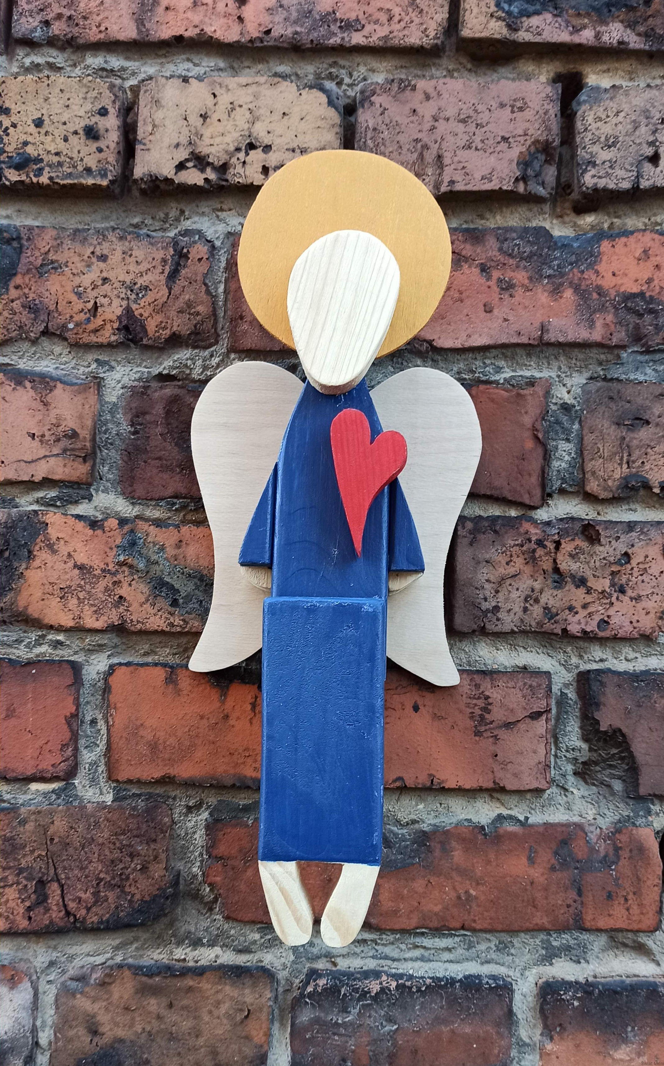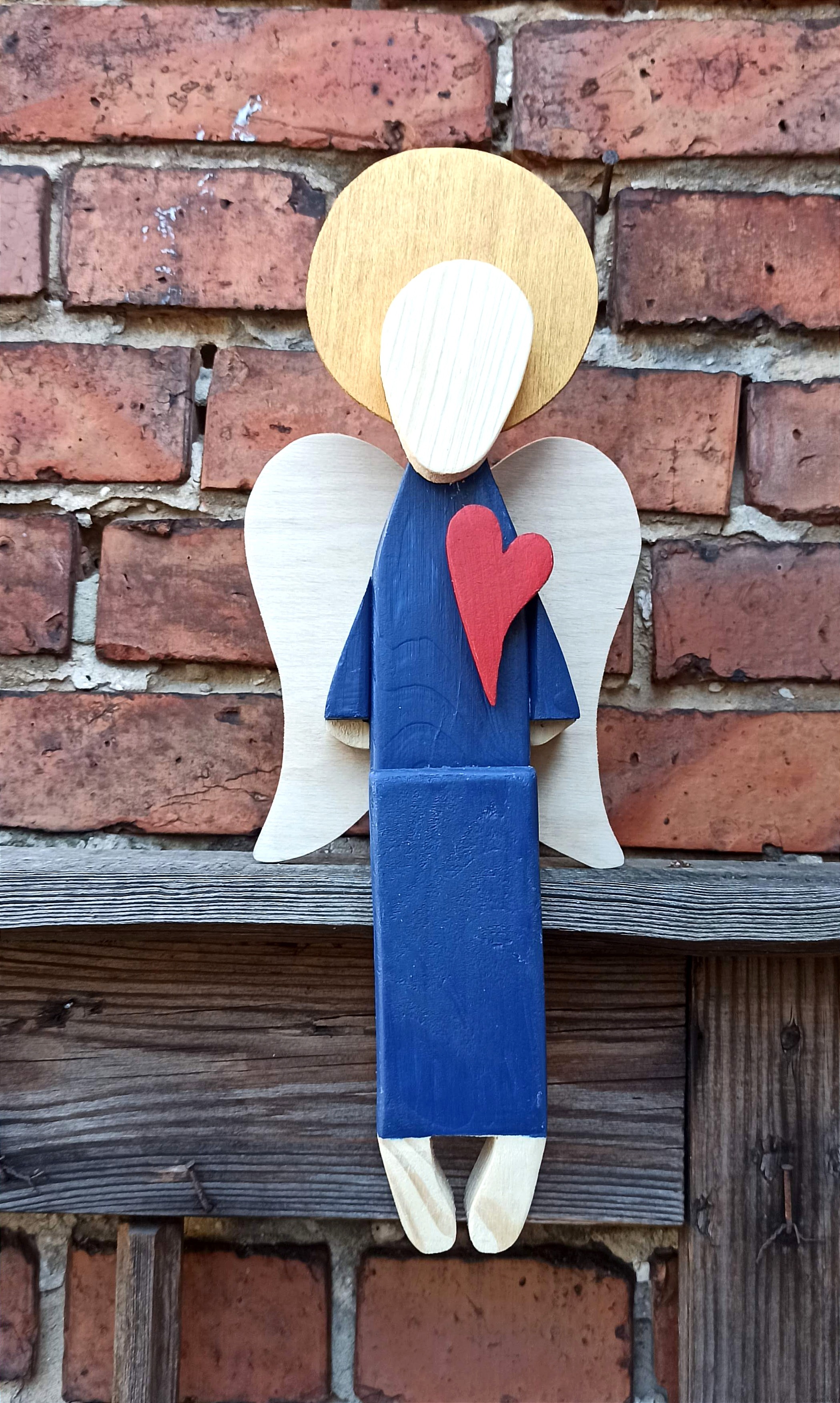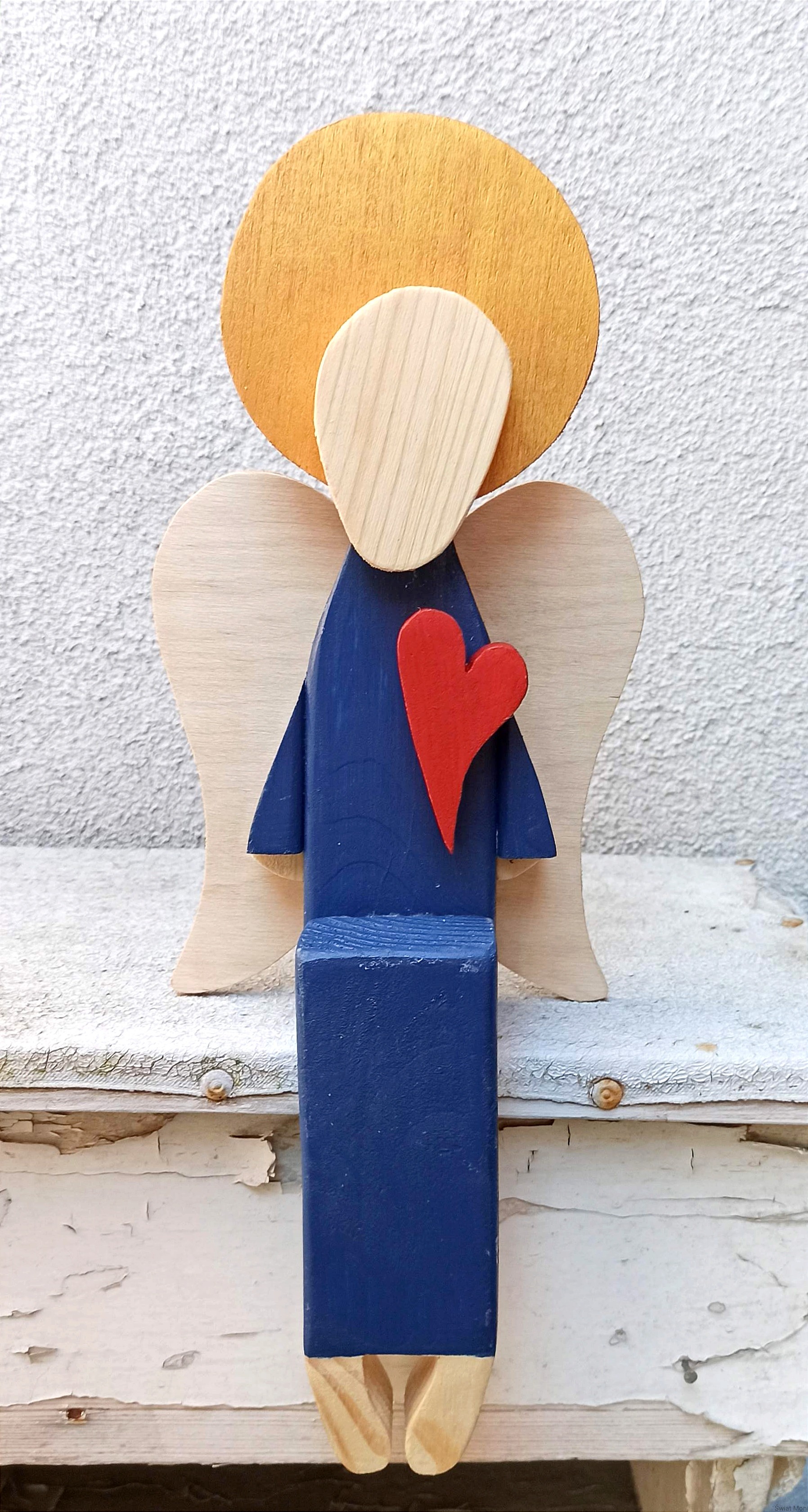 Anioł siedzący w ciemno niebieskiej sukni 39 cm do wewnątrz