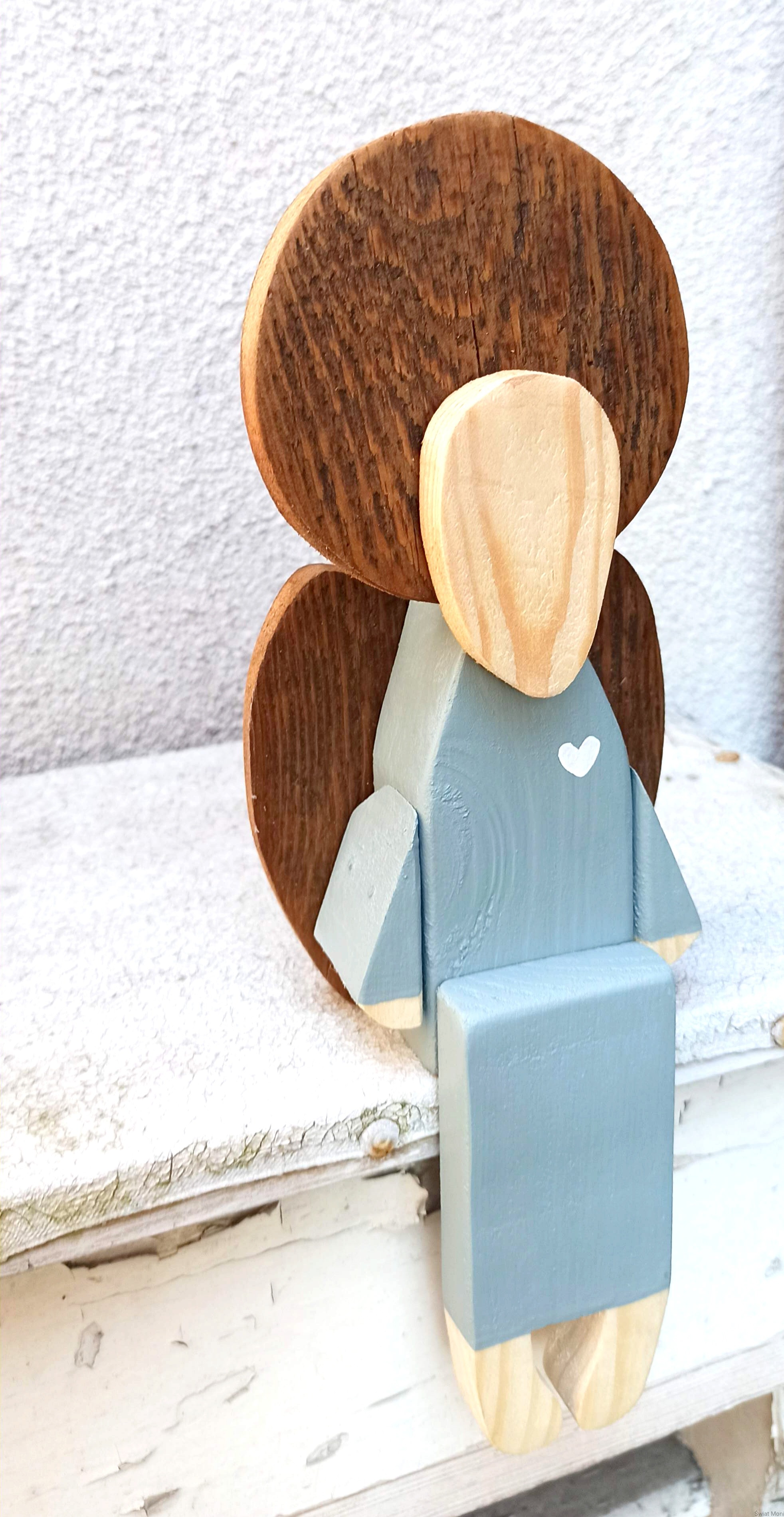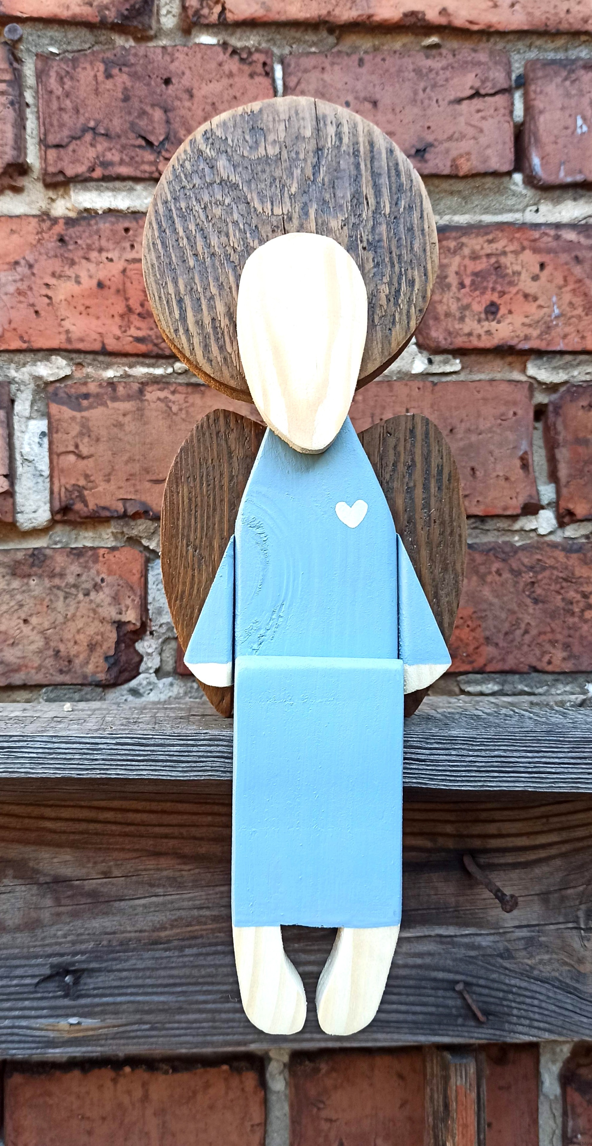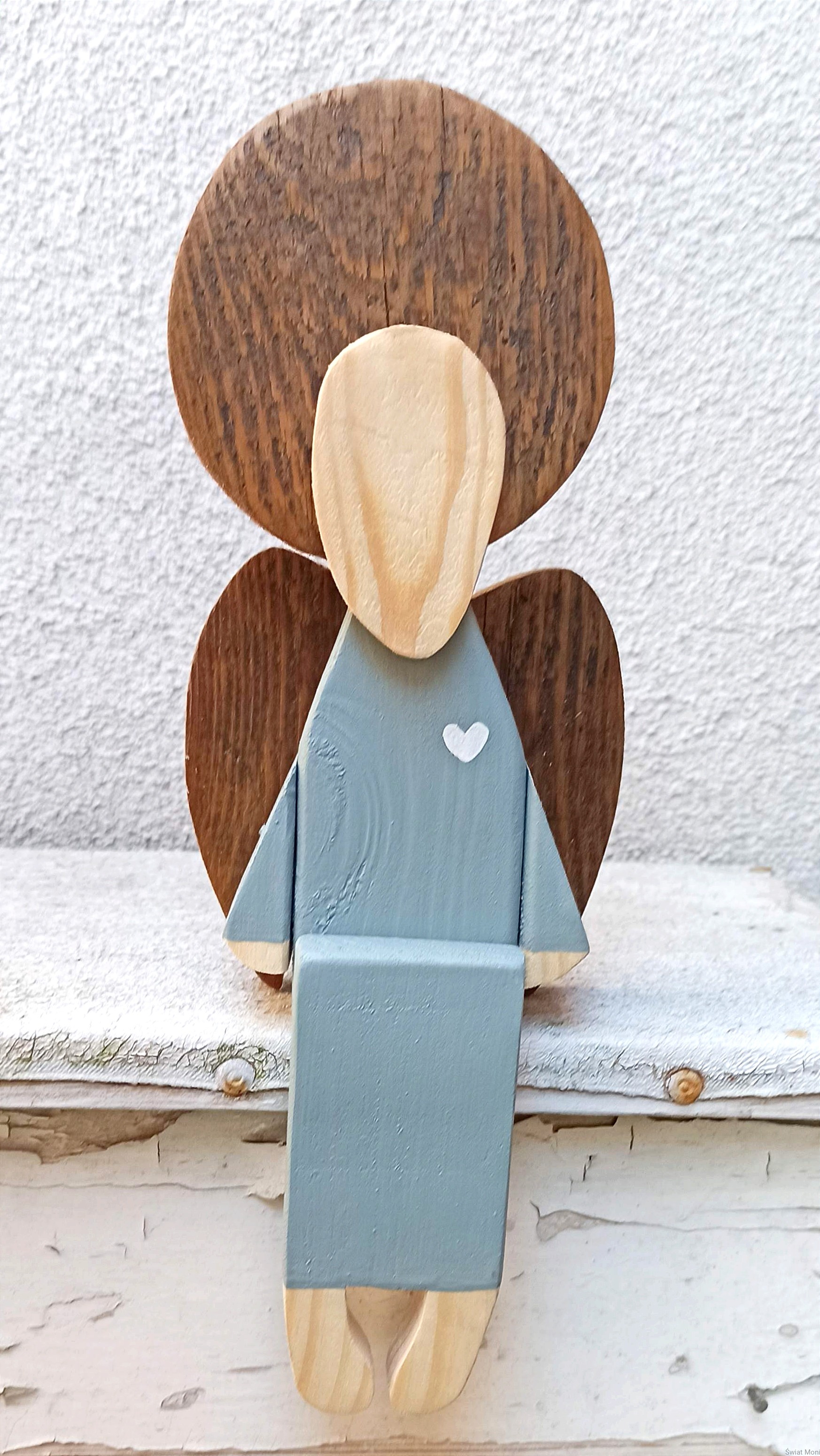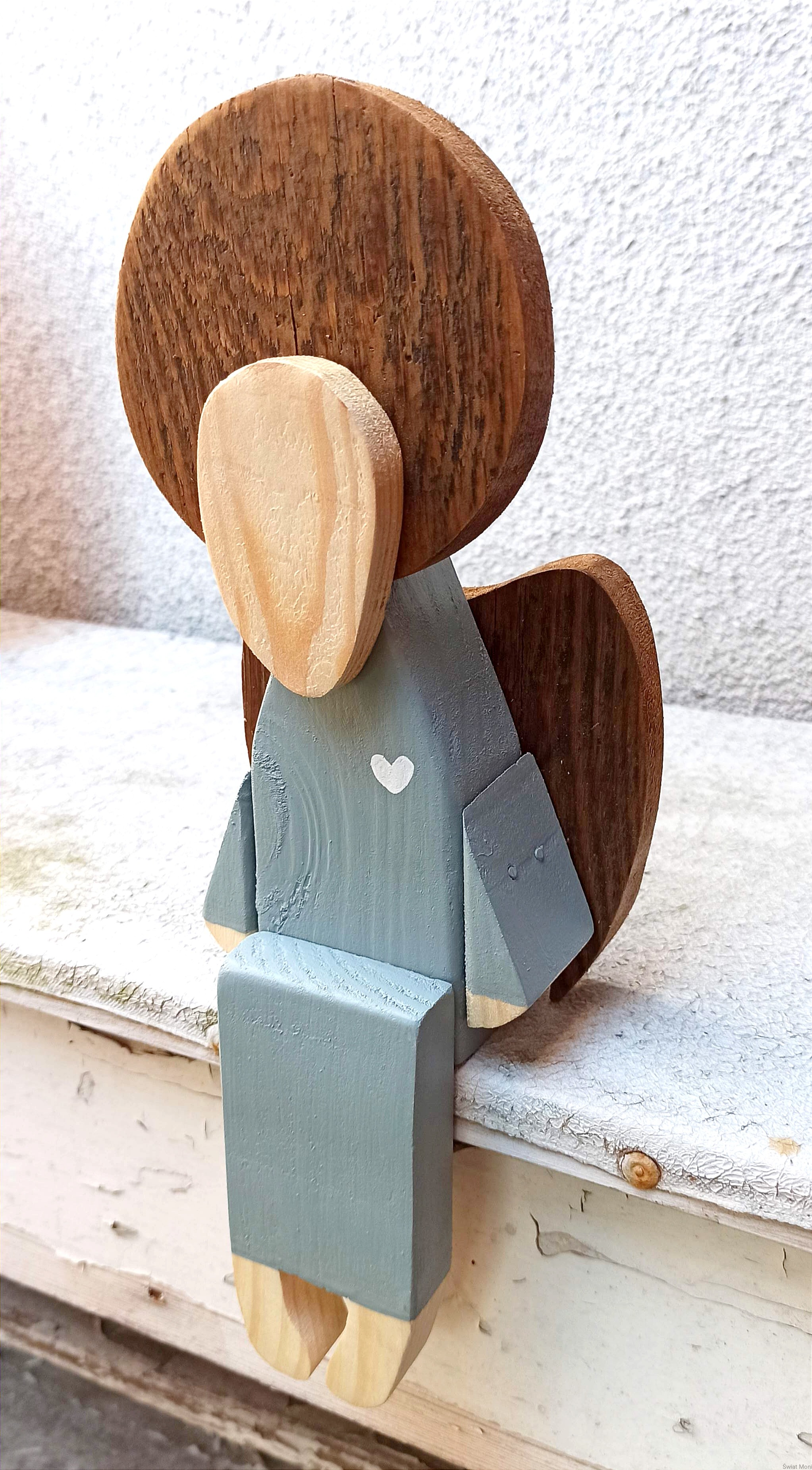 Anioł siedzący w jasno szarej sukni 31 cm