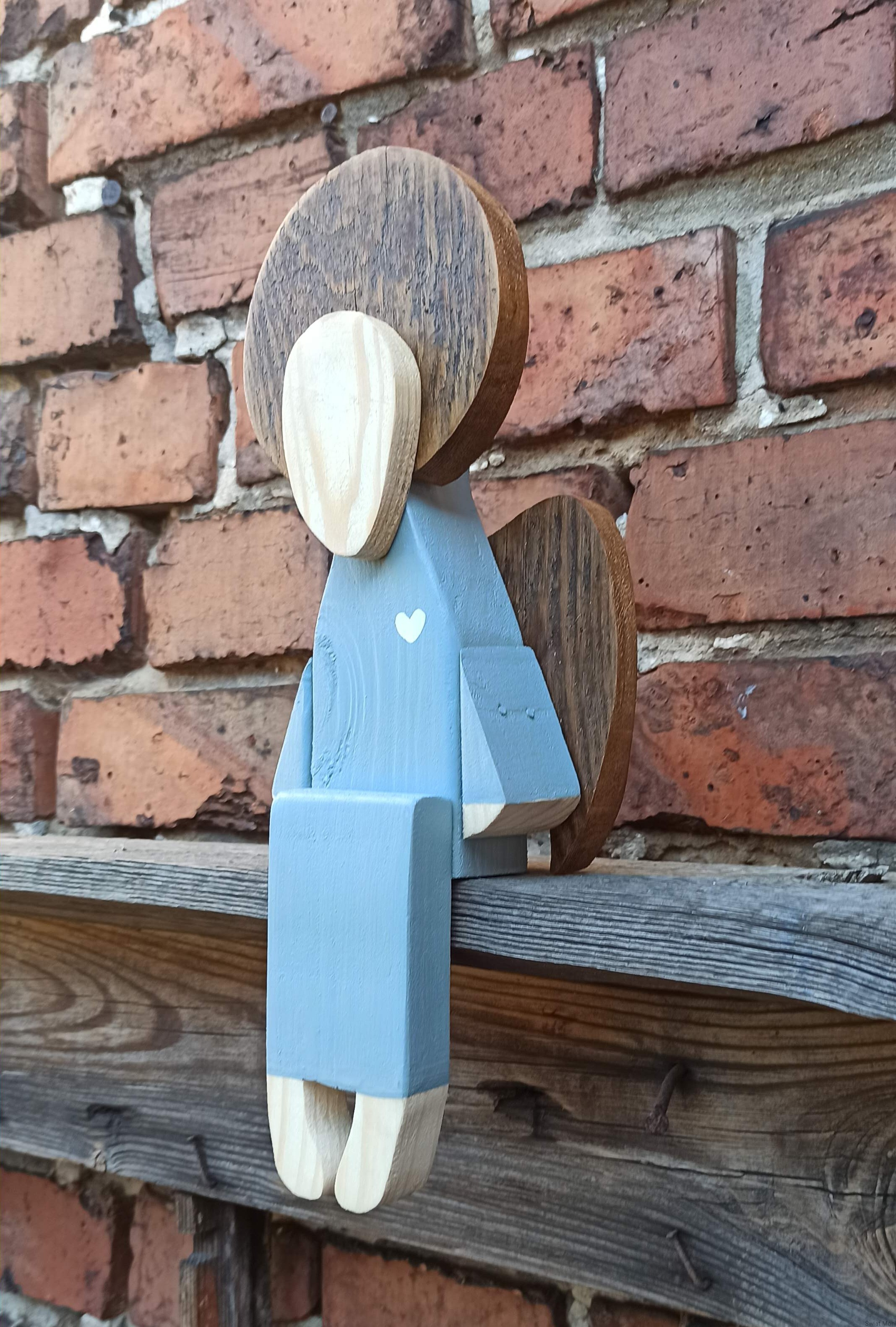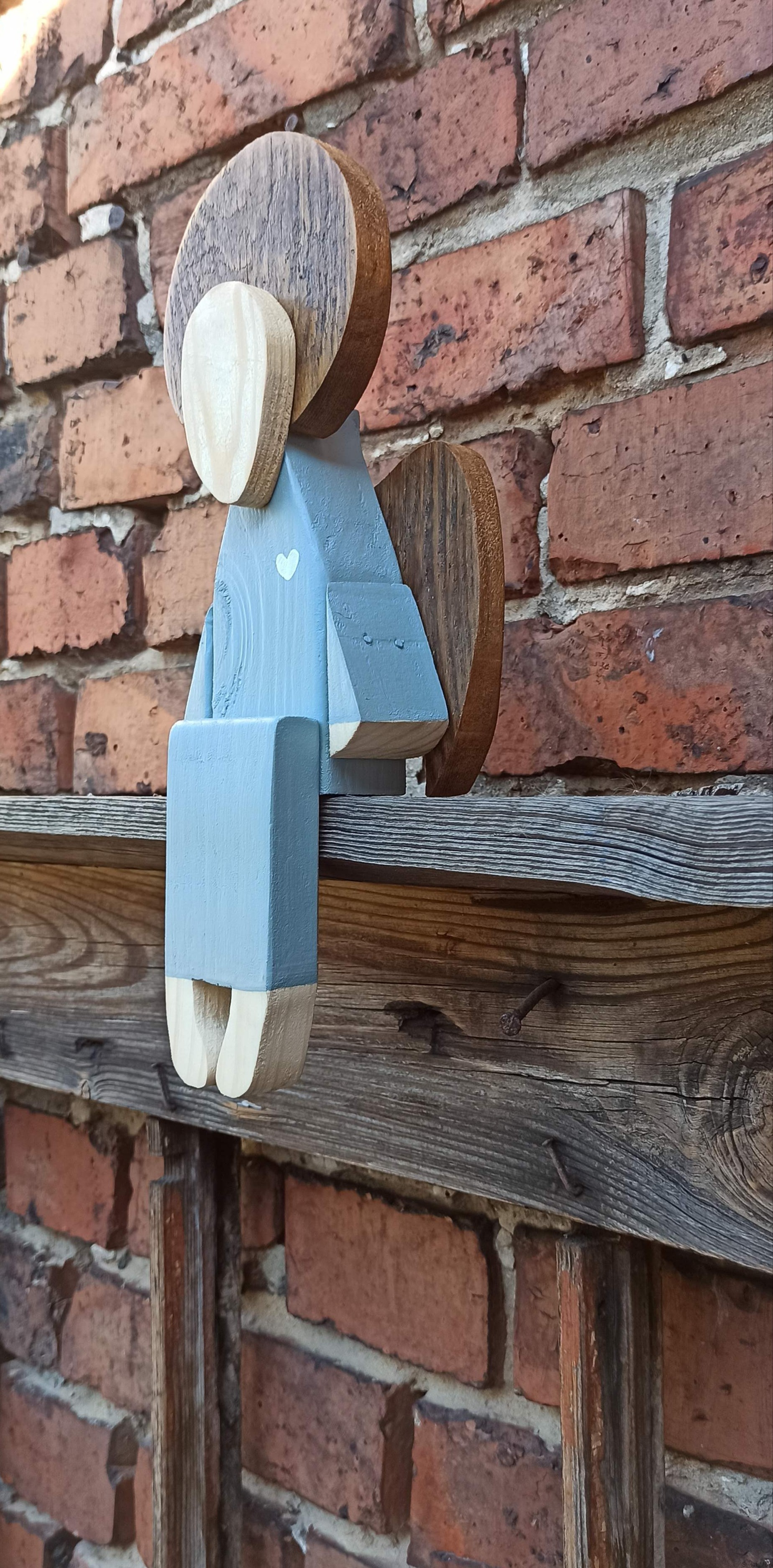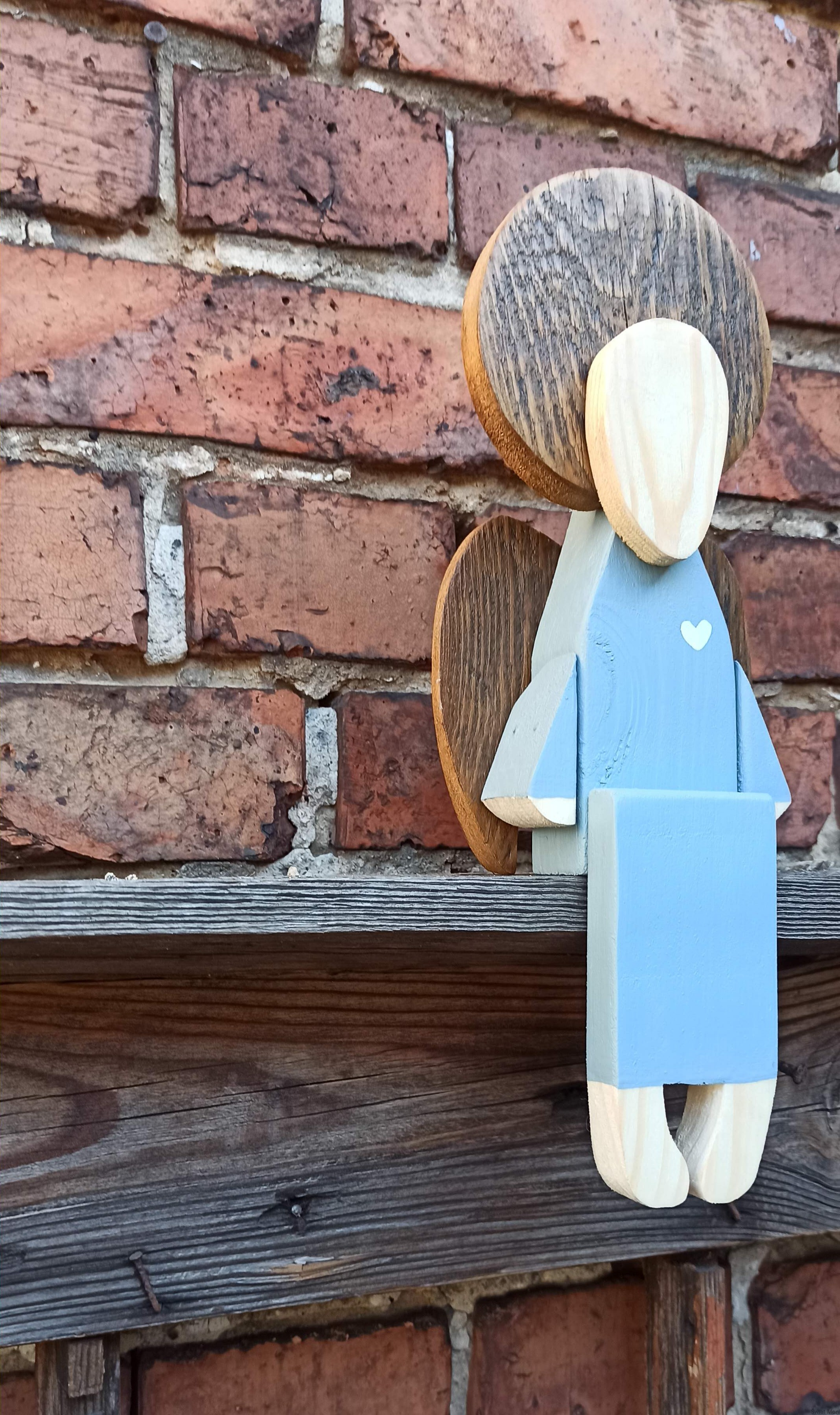 Anioł siedzący w jasno szarej sukni 31 cm