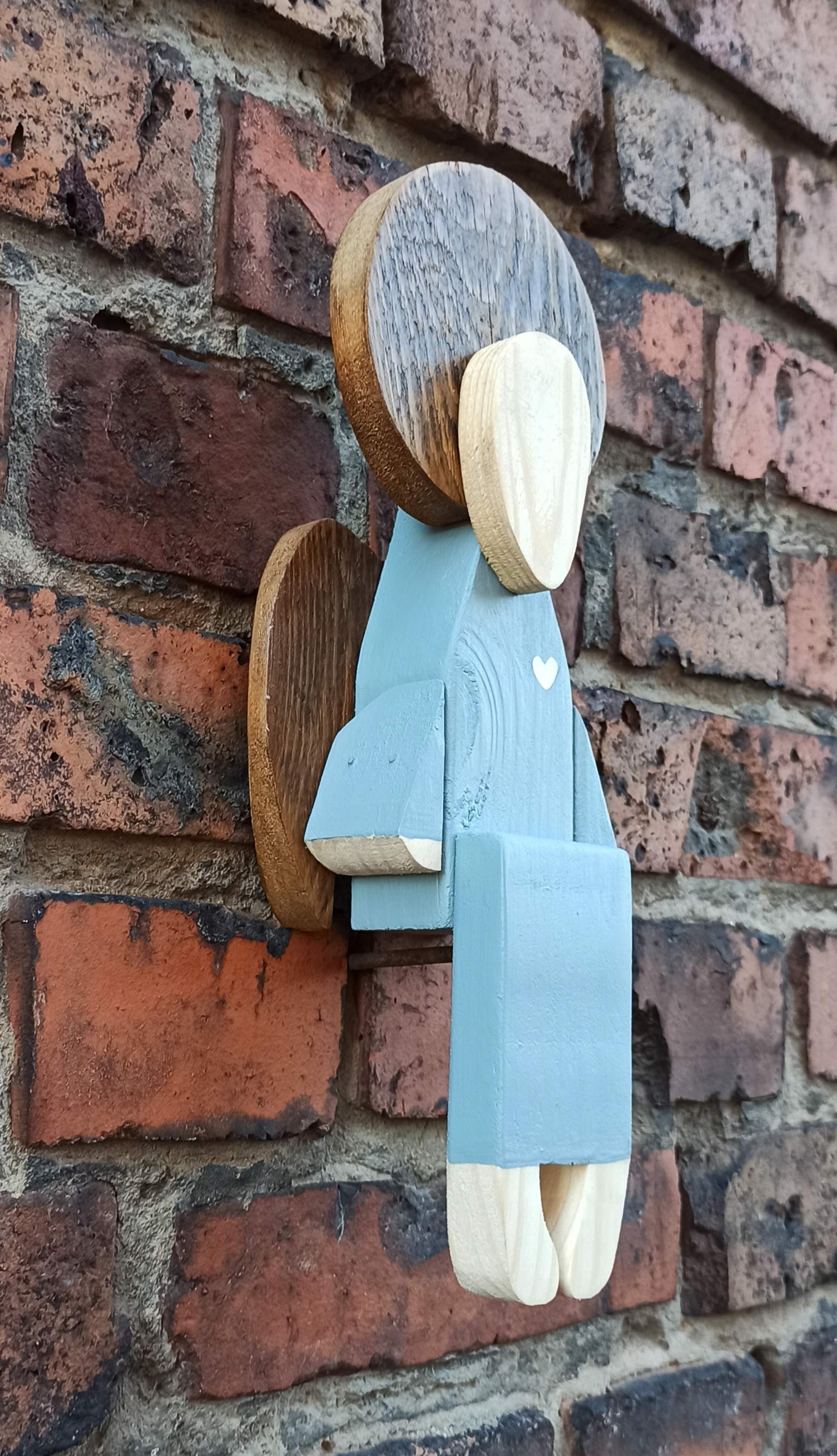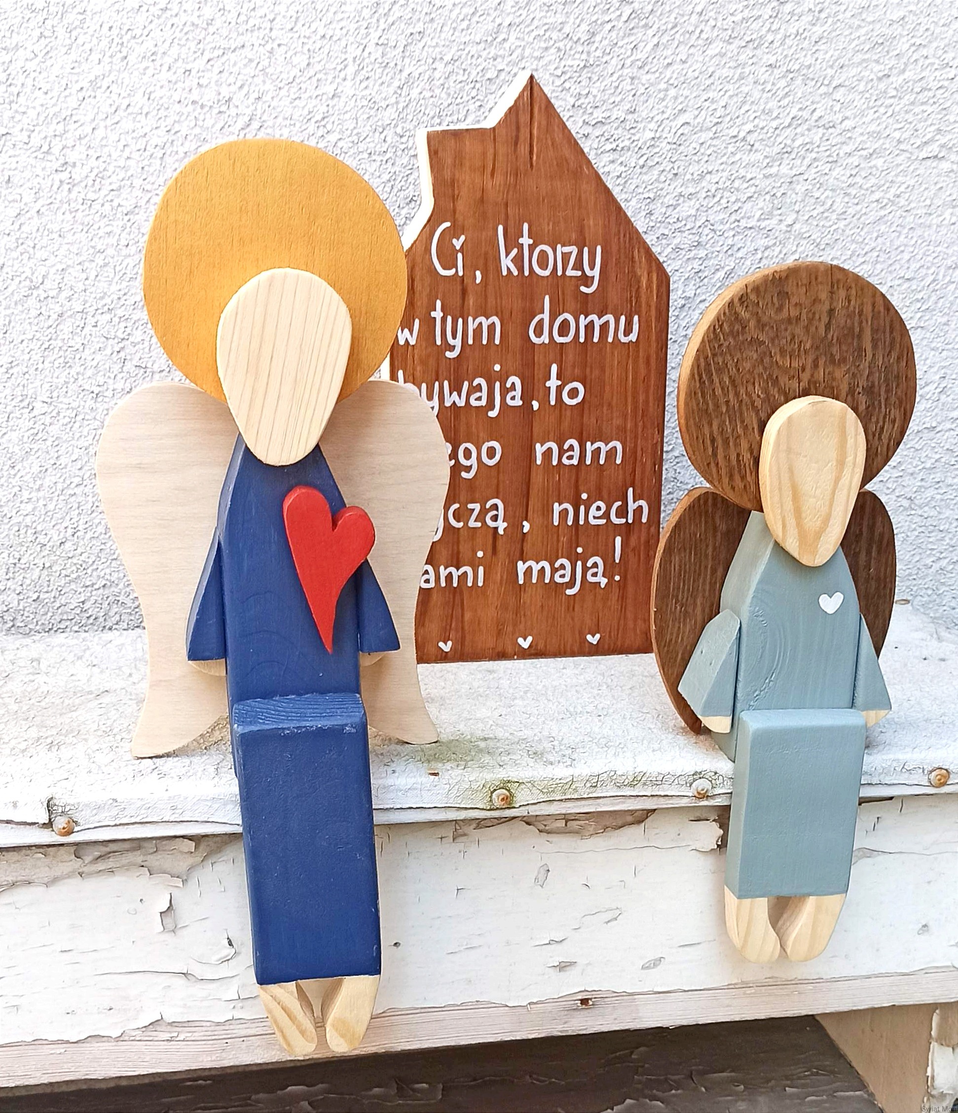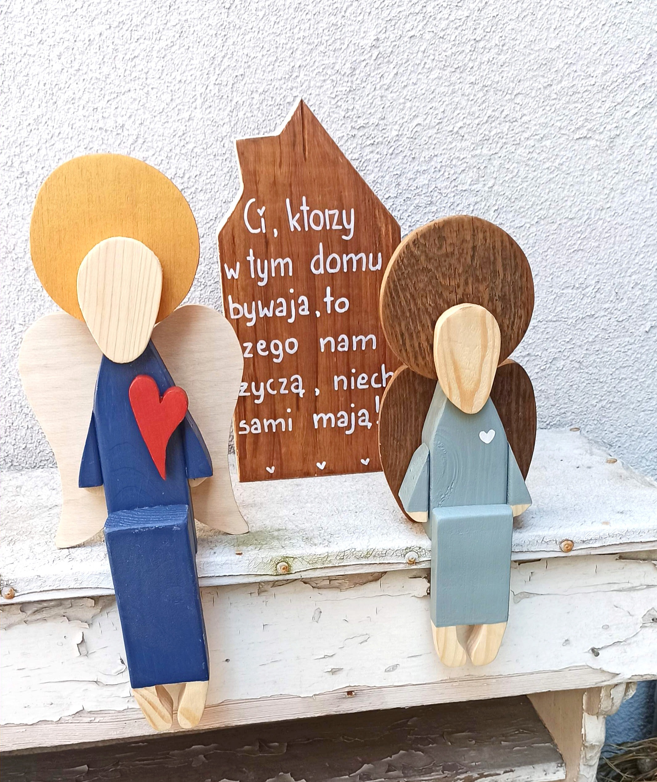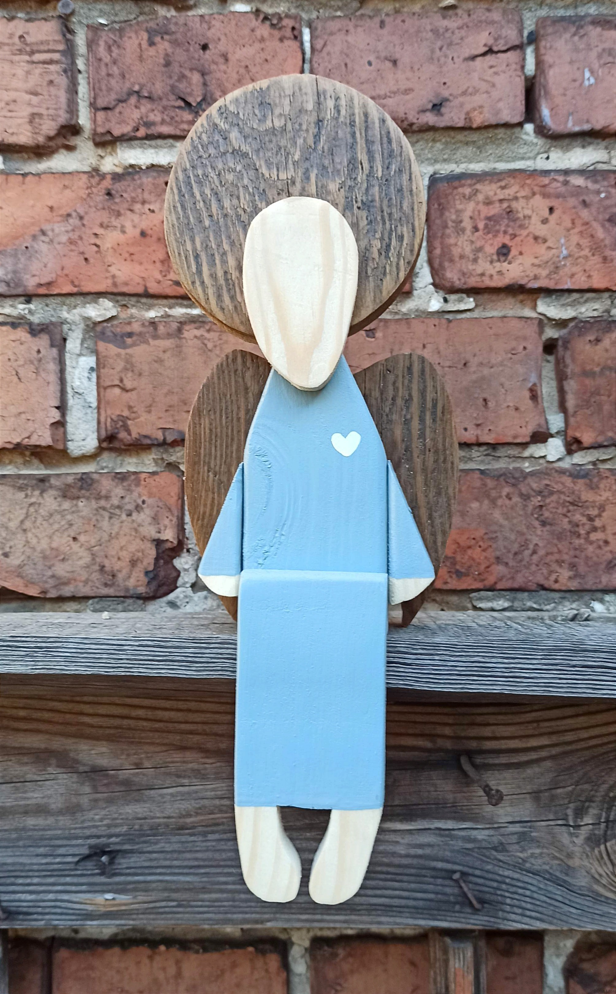 Anioł siedzący w jasno szarej sukni 31 cm