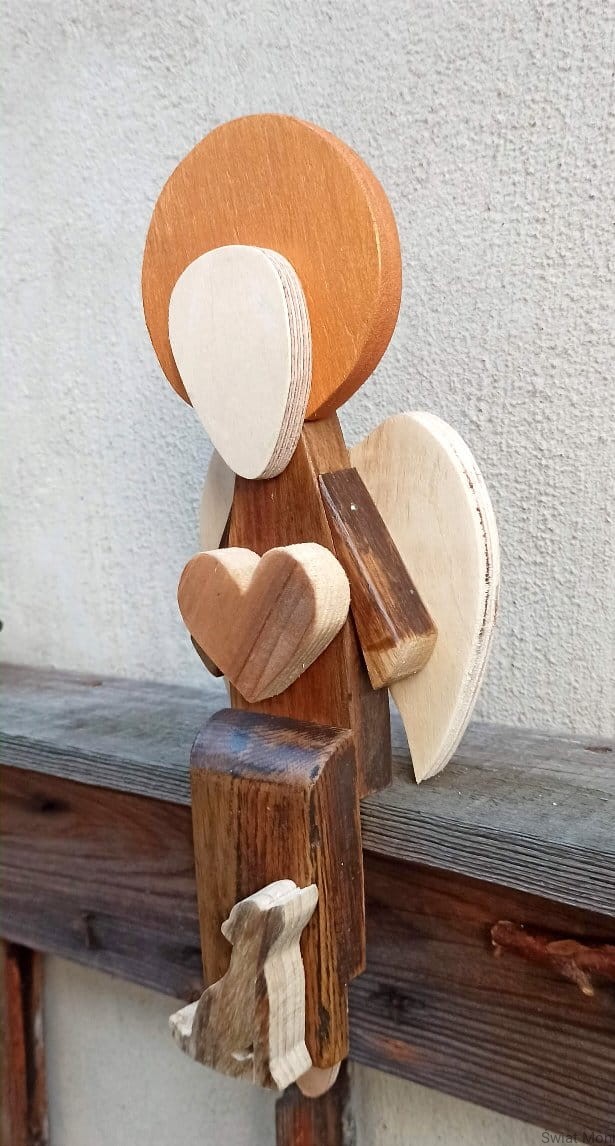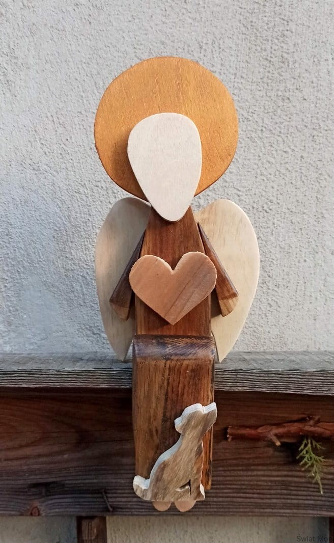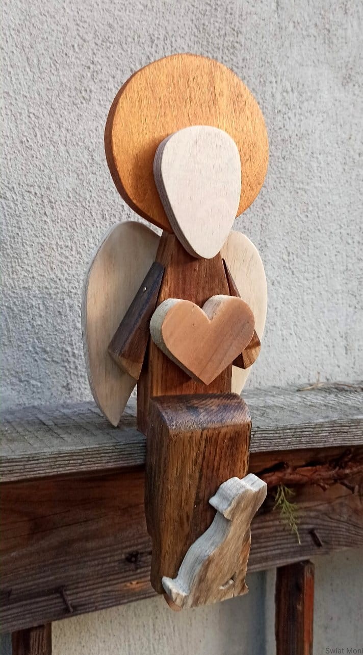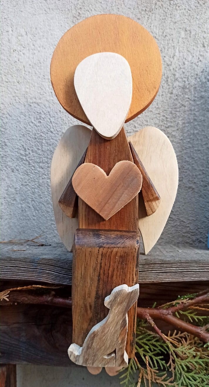 Anioł siedzący z pieskiem w brązie 33 cm