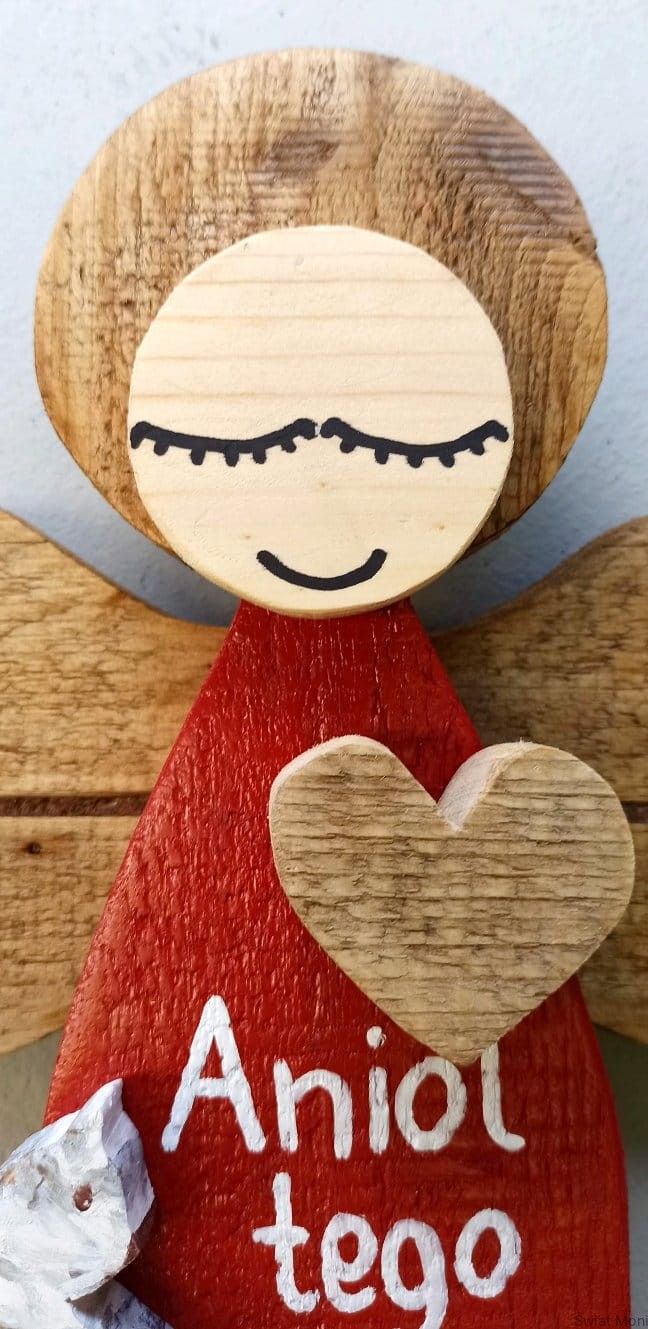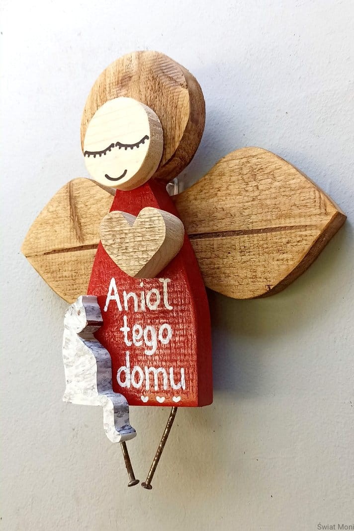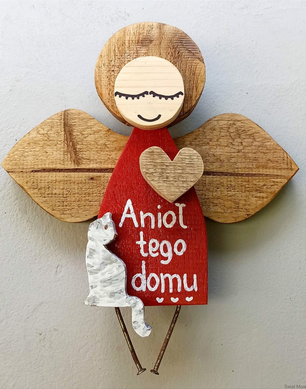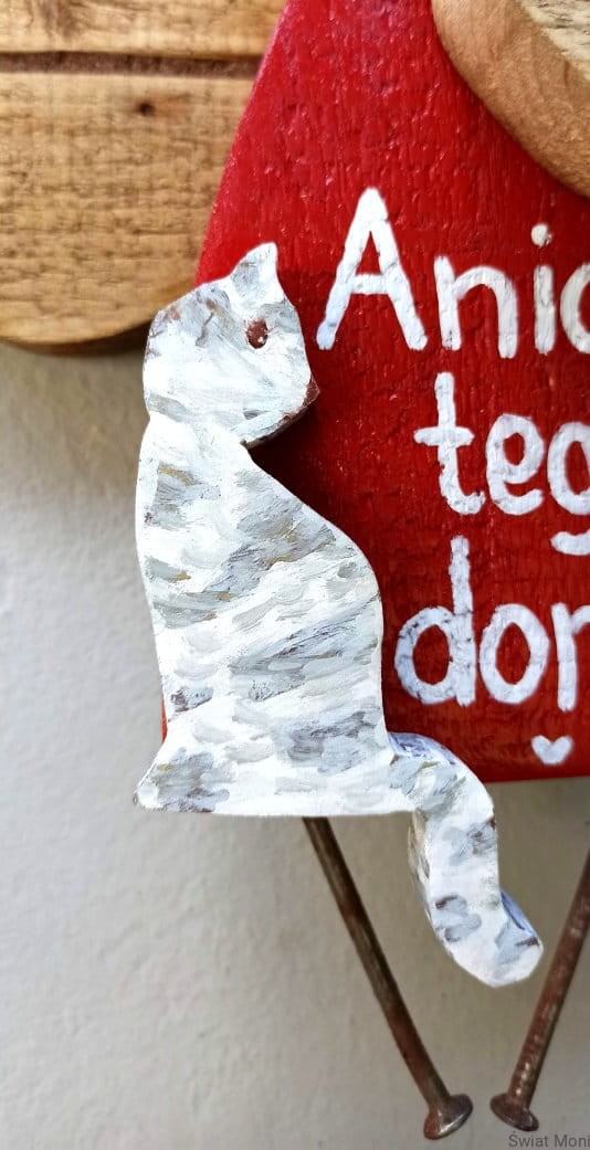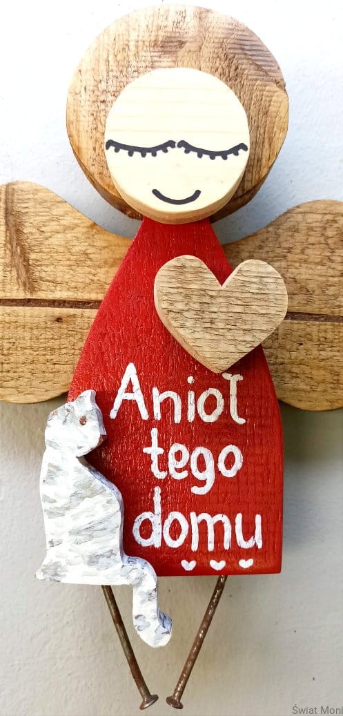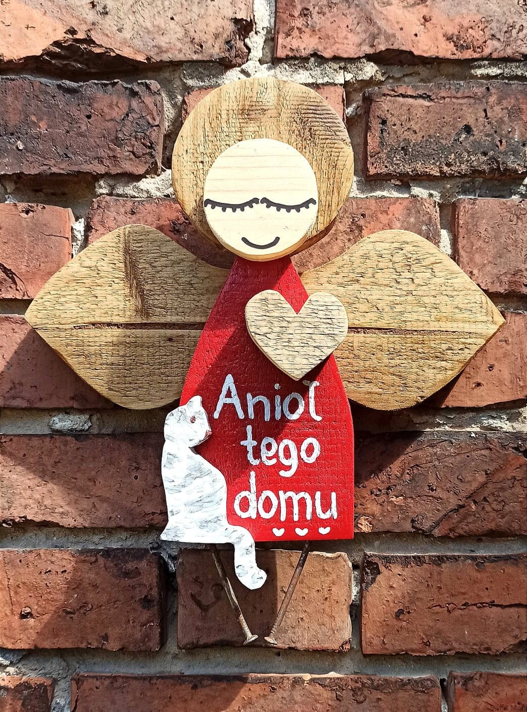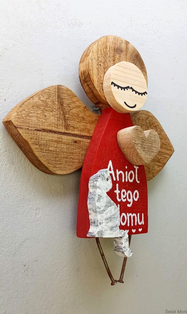 Anioł tego domu... w czerwonej sukni z szarym kotem 34 cm na zewnątrz