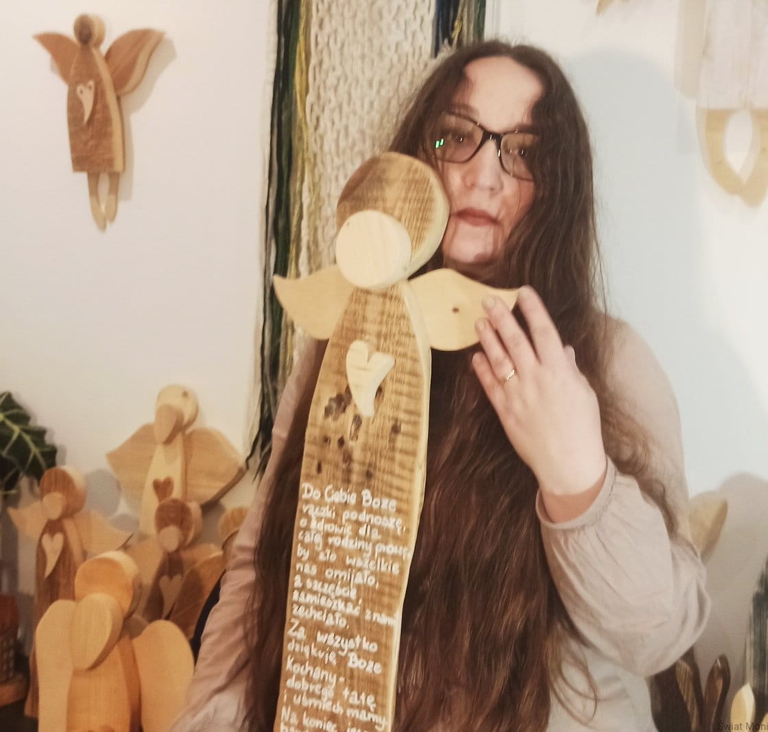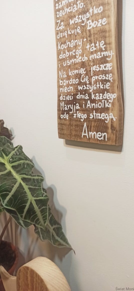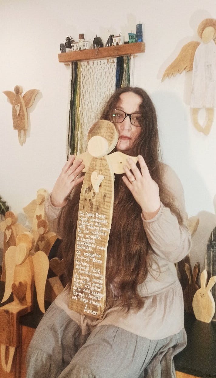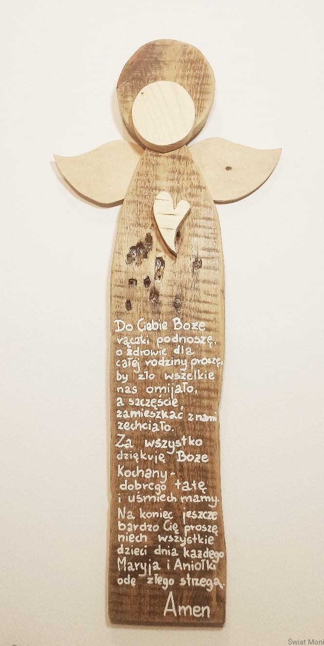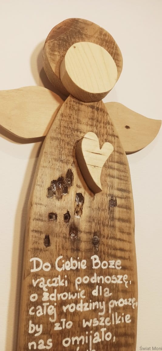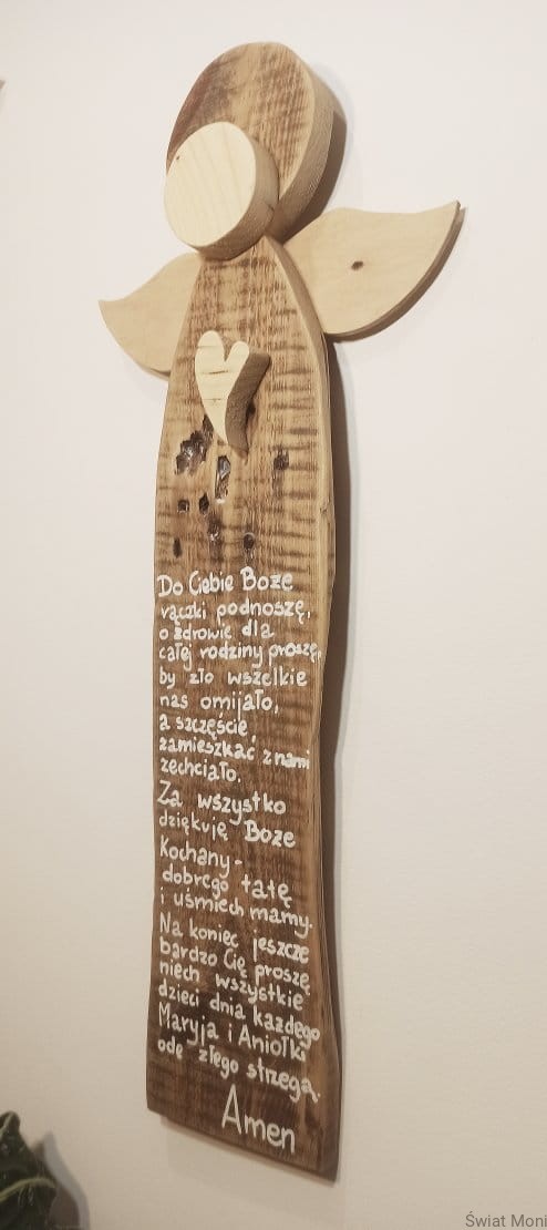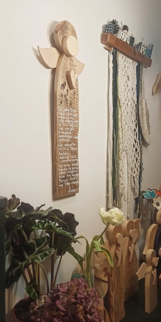 Wykonany na specjalne zamówienie, Anioł Nadzieja - gigant z modlitwa. Można go powieści na ścianie, a otoczy nas opieką. Może stać na komodzie i nas kochać tak po prostu, bo ma wspaniałe serce pełne dobroci. Wysokość Anioła to 67cm. Jeśli chcesz , by podobny Anioł poleciał do Twojego domu - napisz do mnie wiadomość. Treść modlitwy taka sama lub inna, wzór Anioła również można wybrać. Anioł z modlitwą to doskonały prezent na Chrzest, Komunie, Bierzmowanie, roczek czy Ślub - dobierzemy wtedy odpowiednia modlitwę i dedykację.