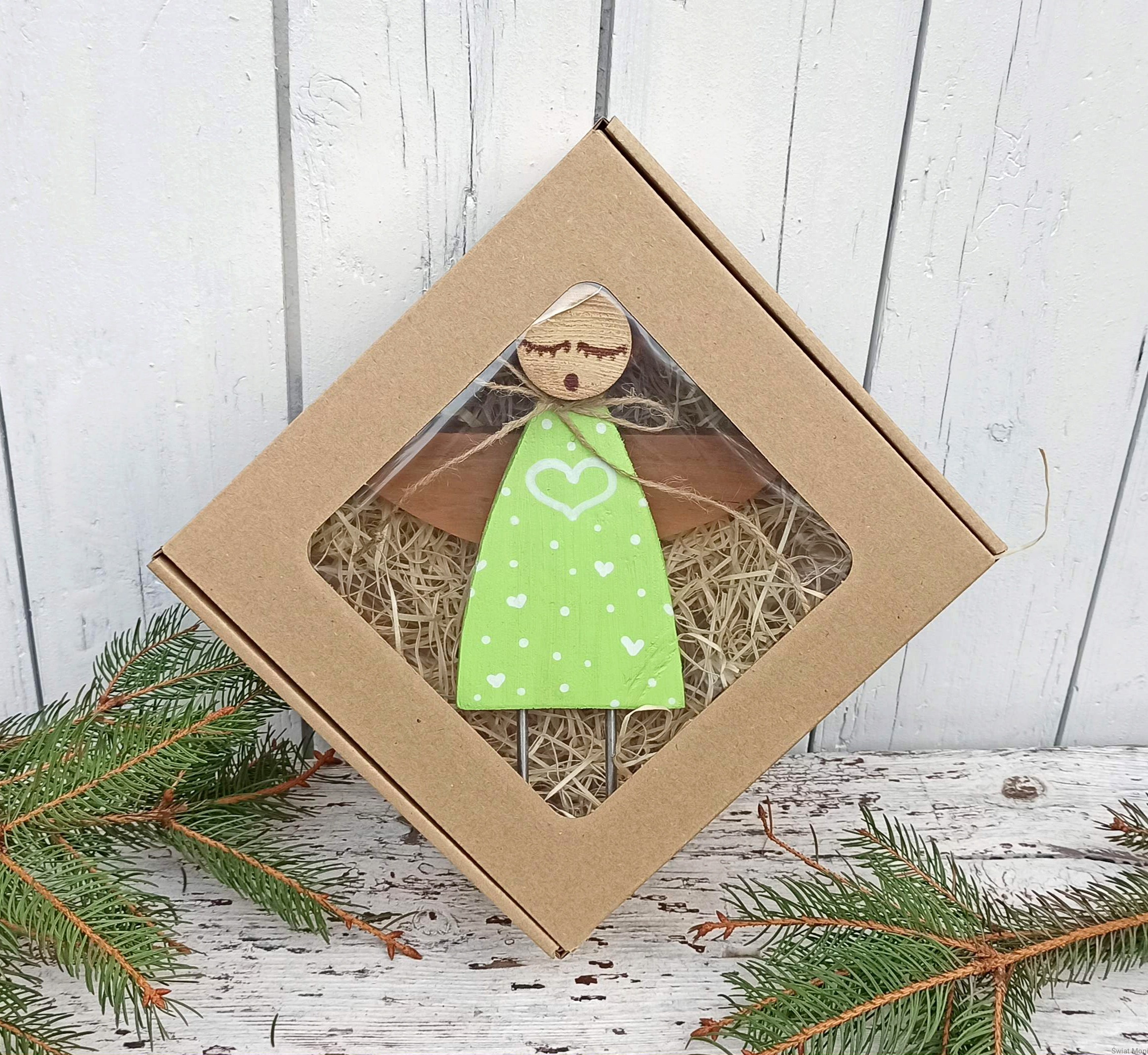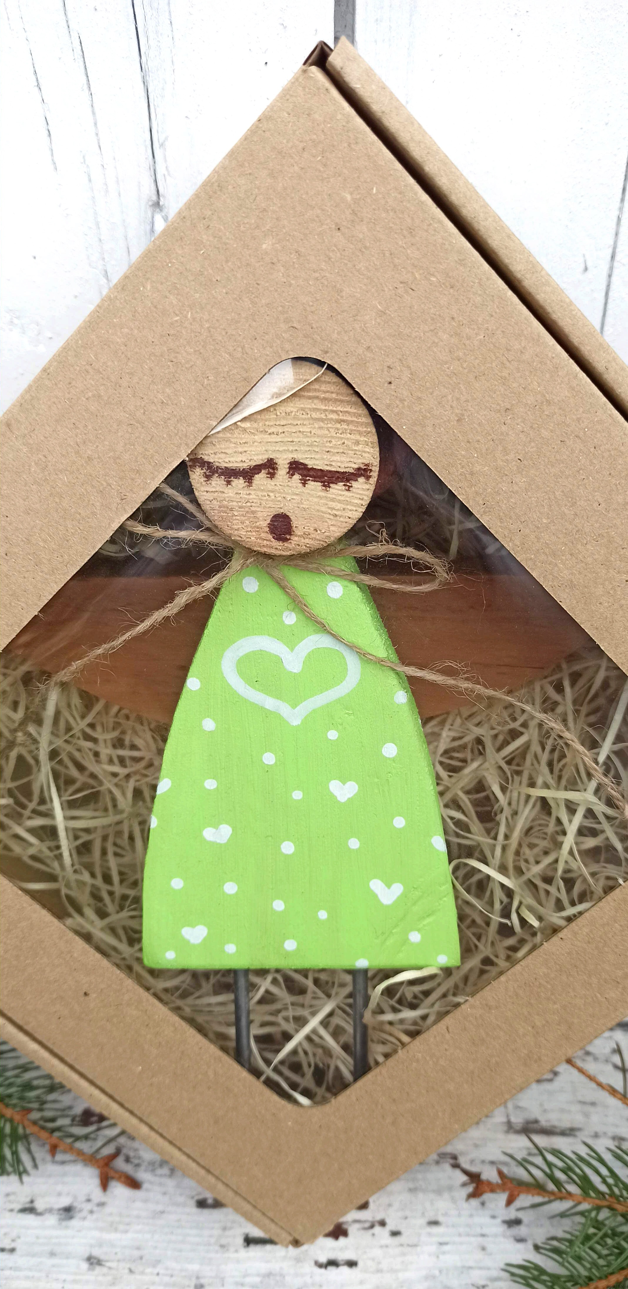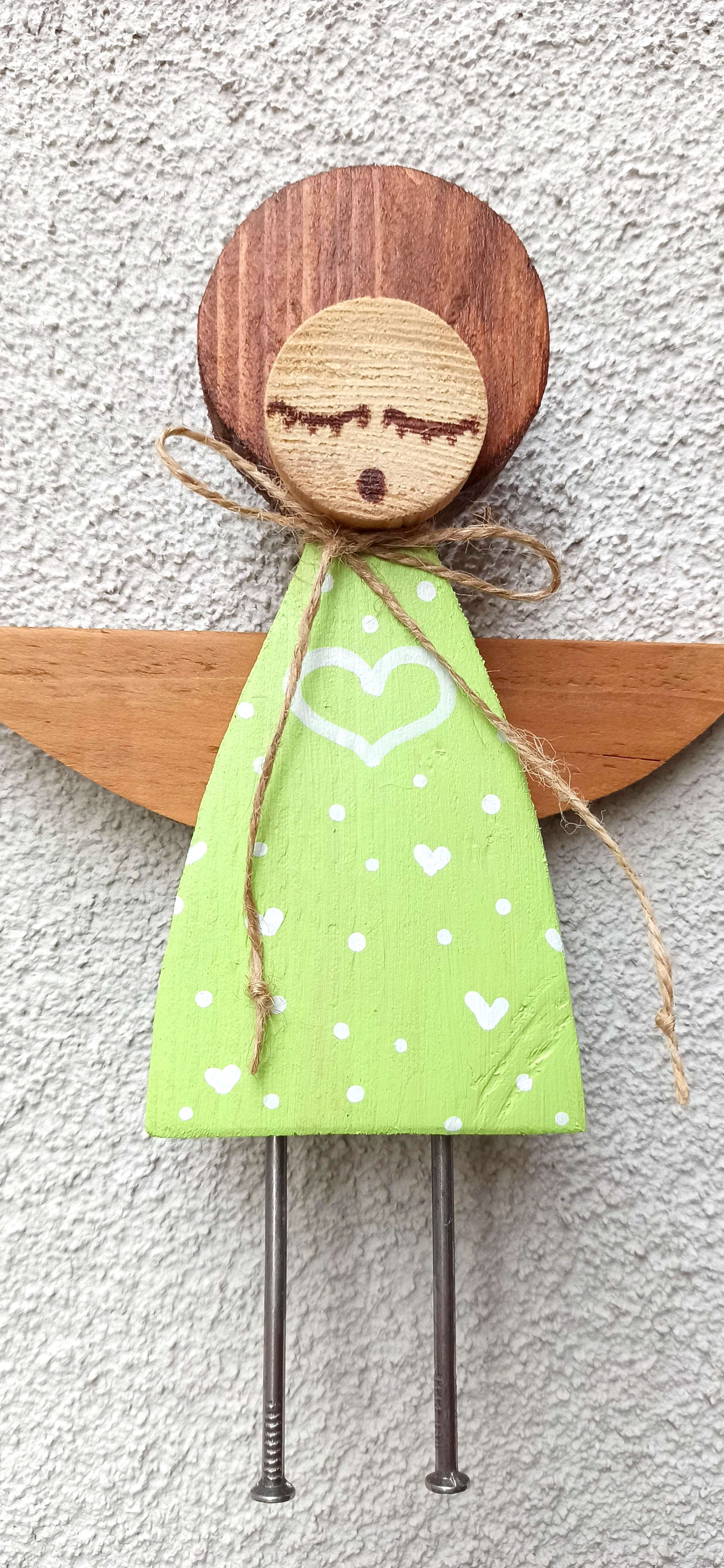 Aniołek Kropka w jasno zielonej sukni 25 cm do wewnątrz