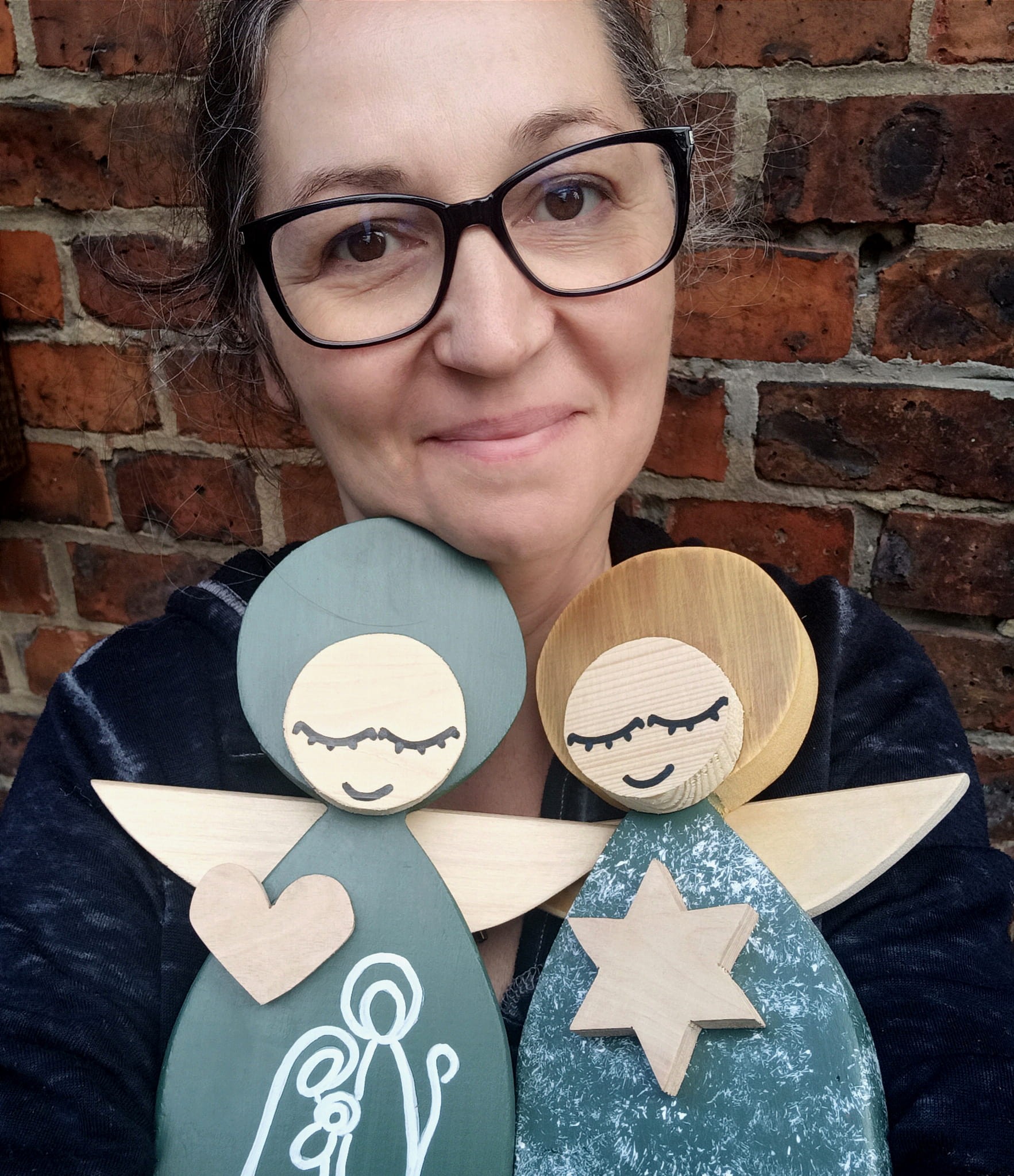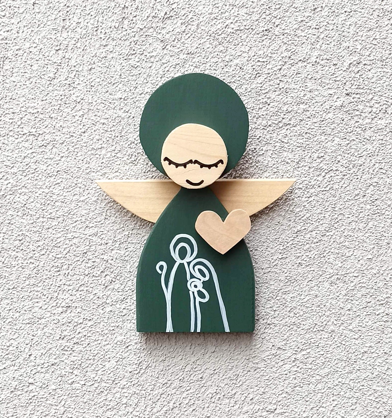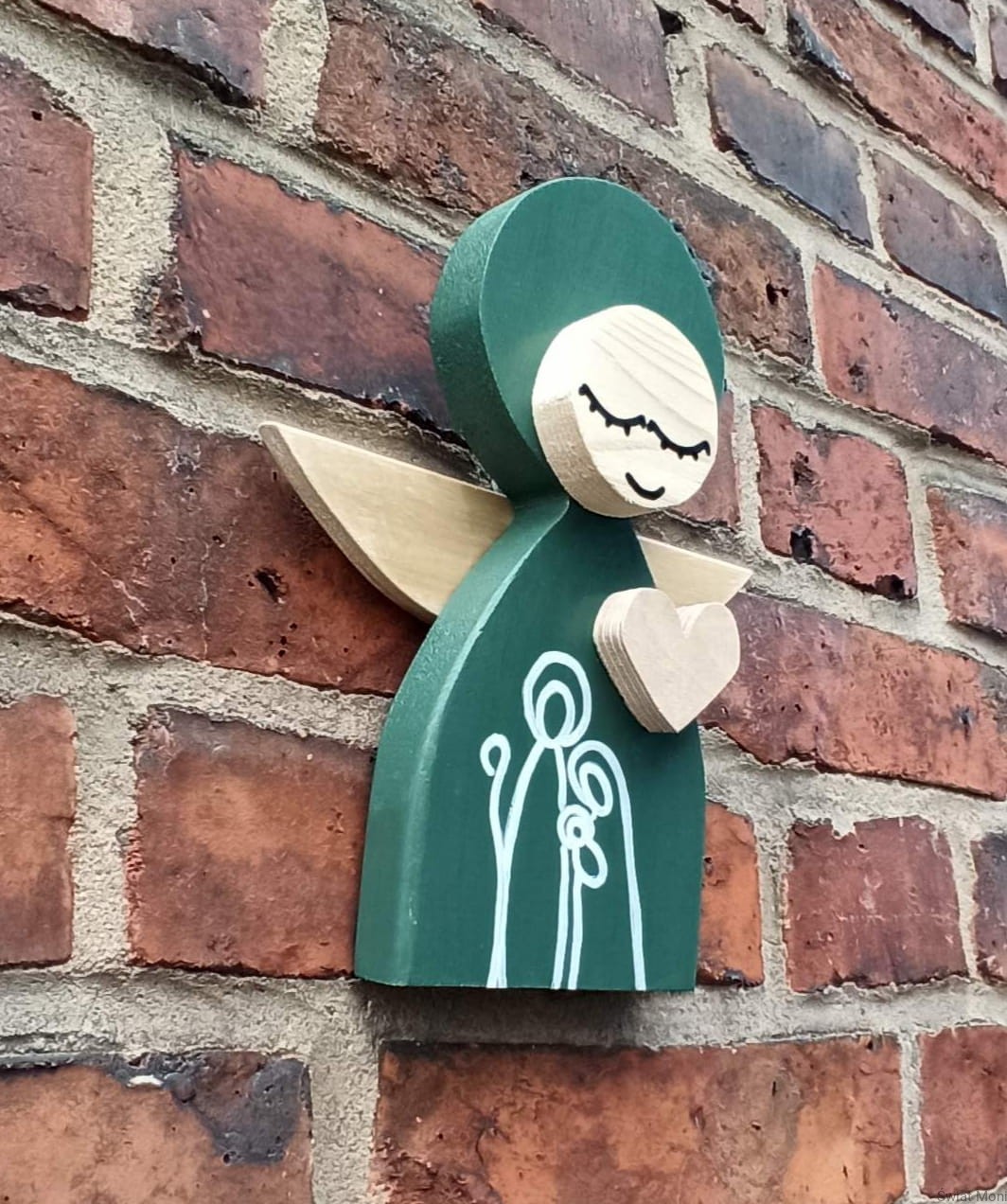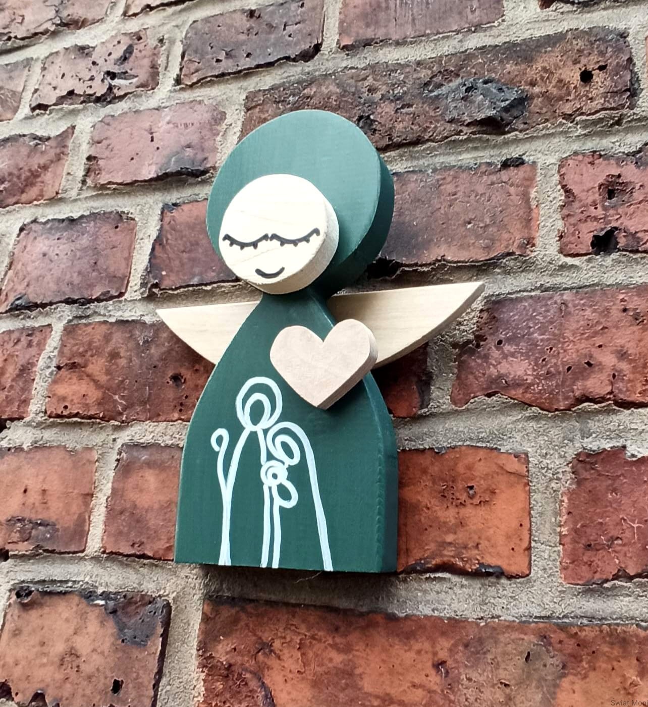 Aniołek Świąteczny ze Świętą Rodziną 24 cm w zielonej sukni w pudełku z okienkiem