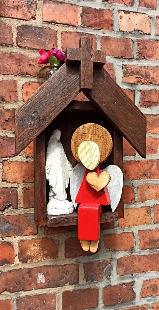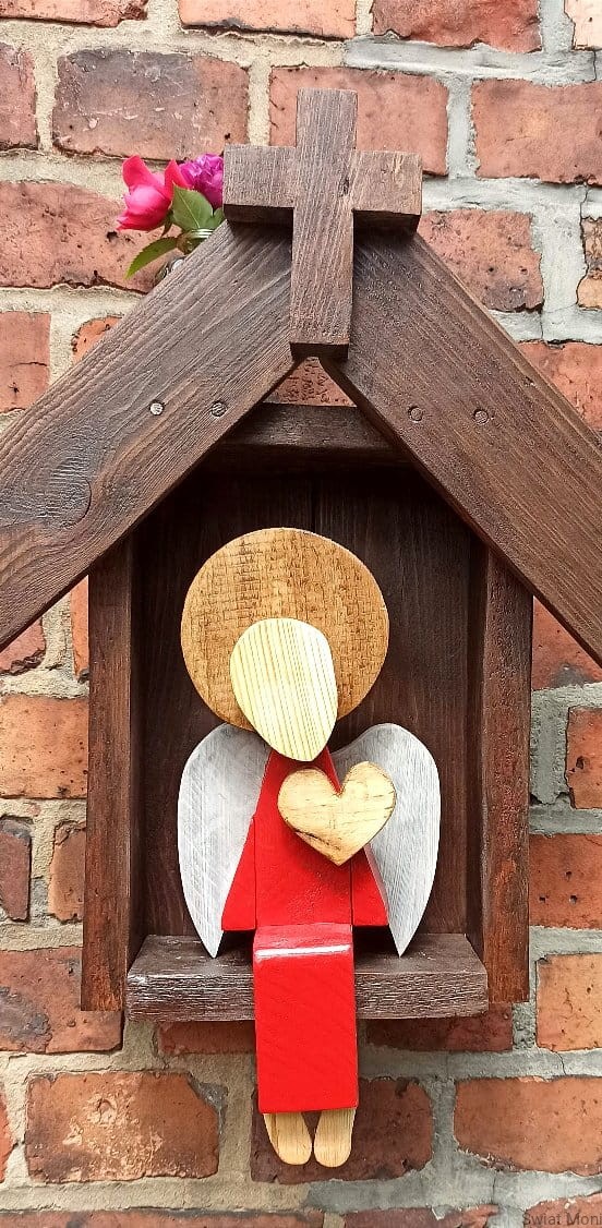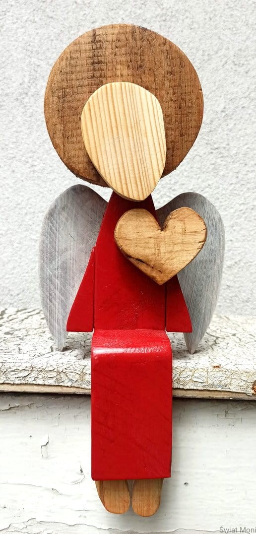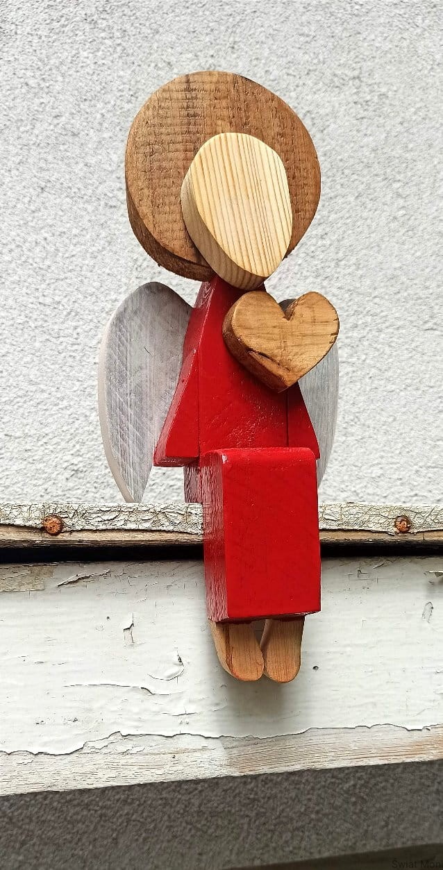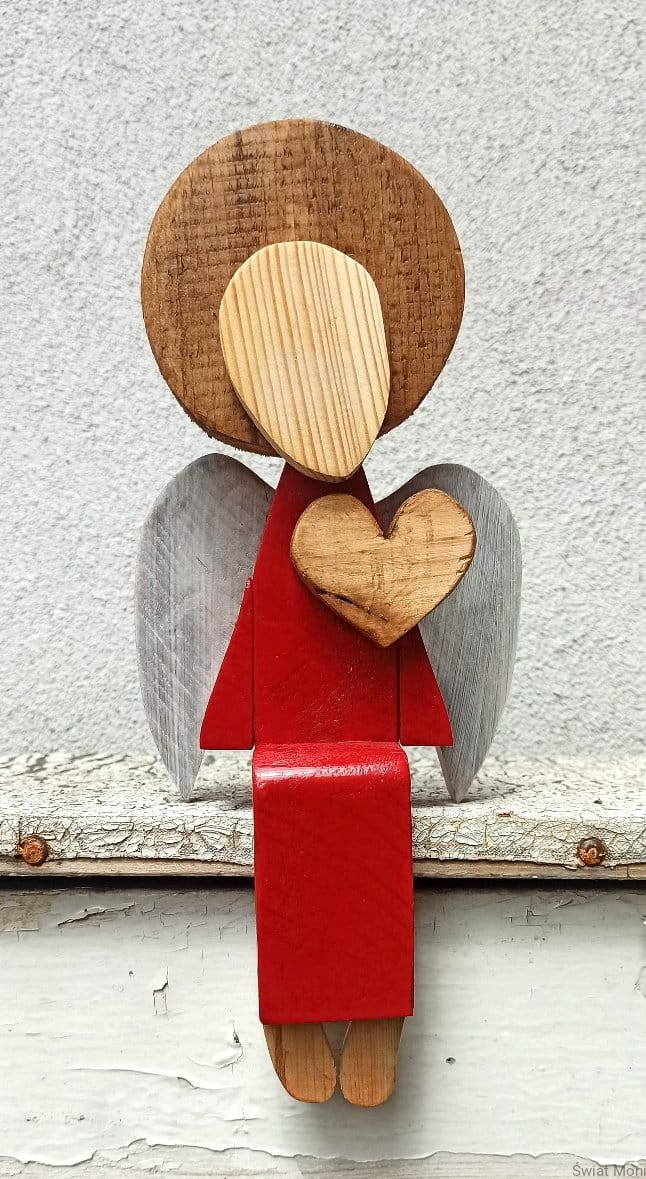 Aniołek siedzący w czerwonej sukni 34 cm na zewnątrz