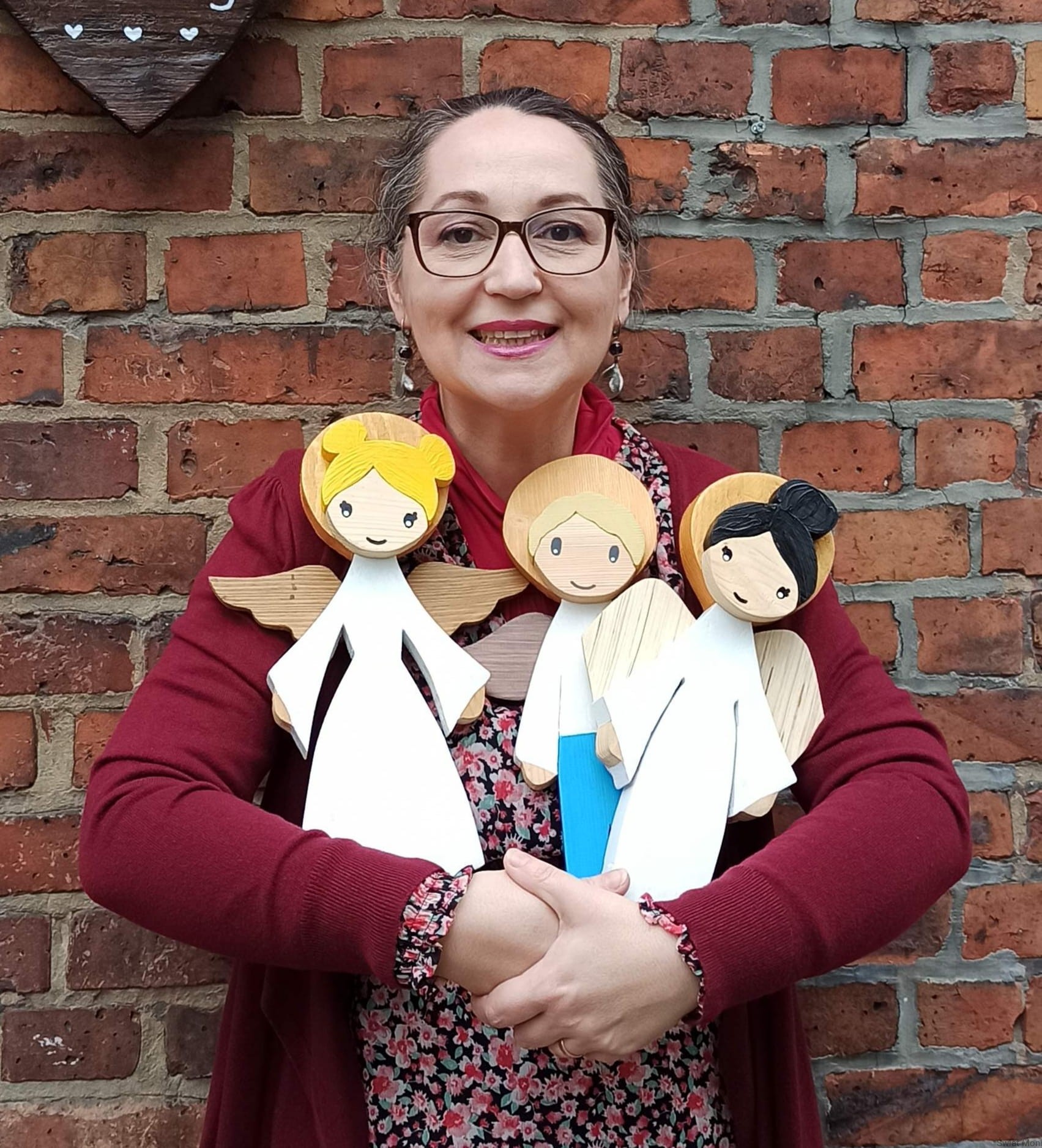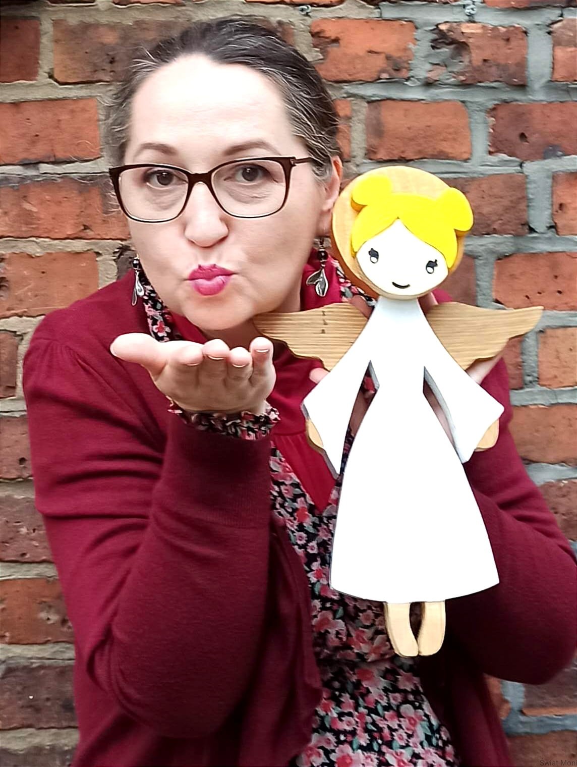 Aniołek z dwoma kokami w blondynka 37 cm do wewnątrz