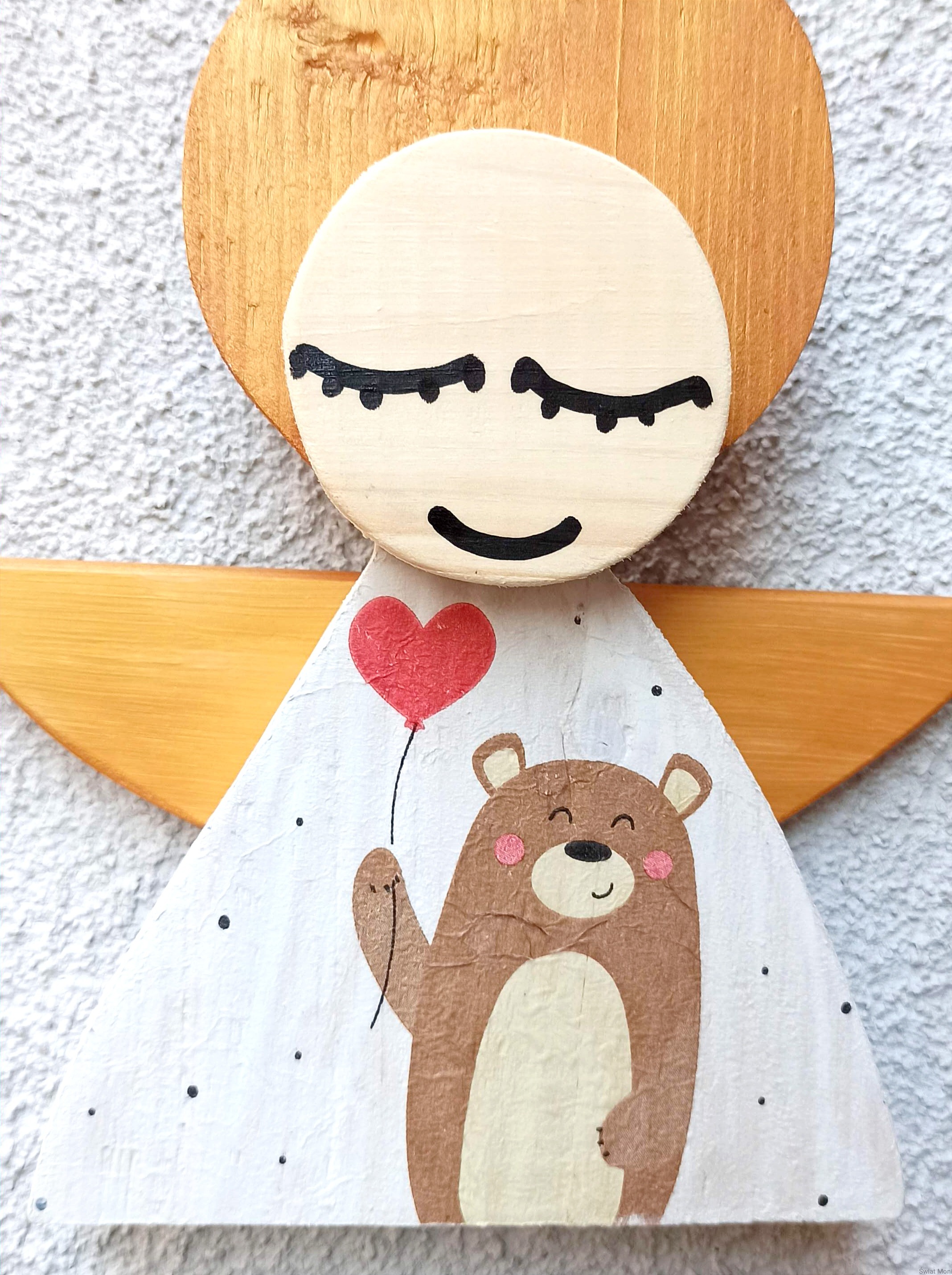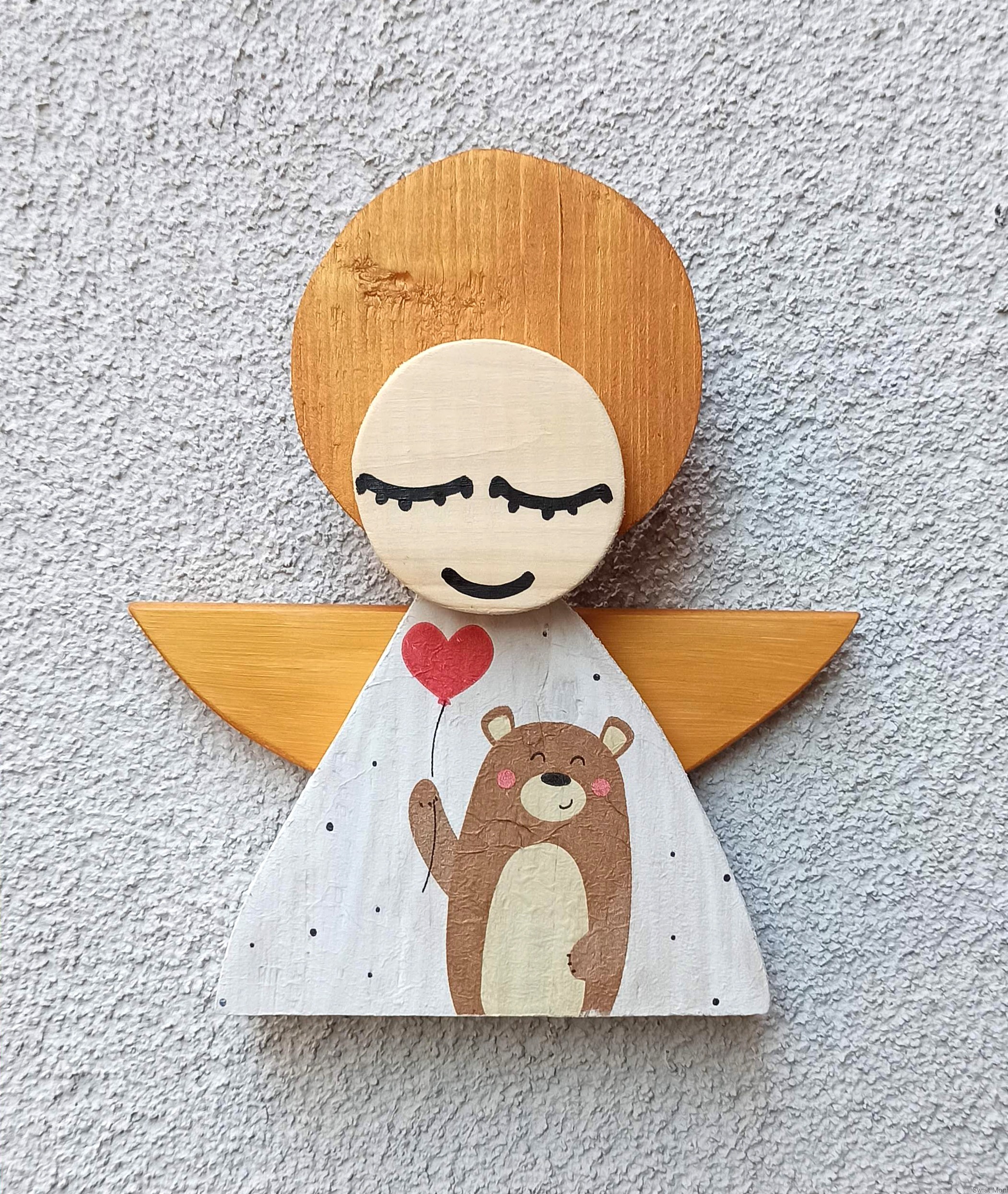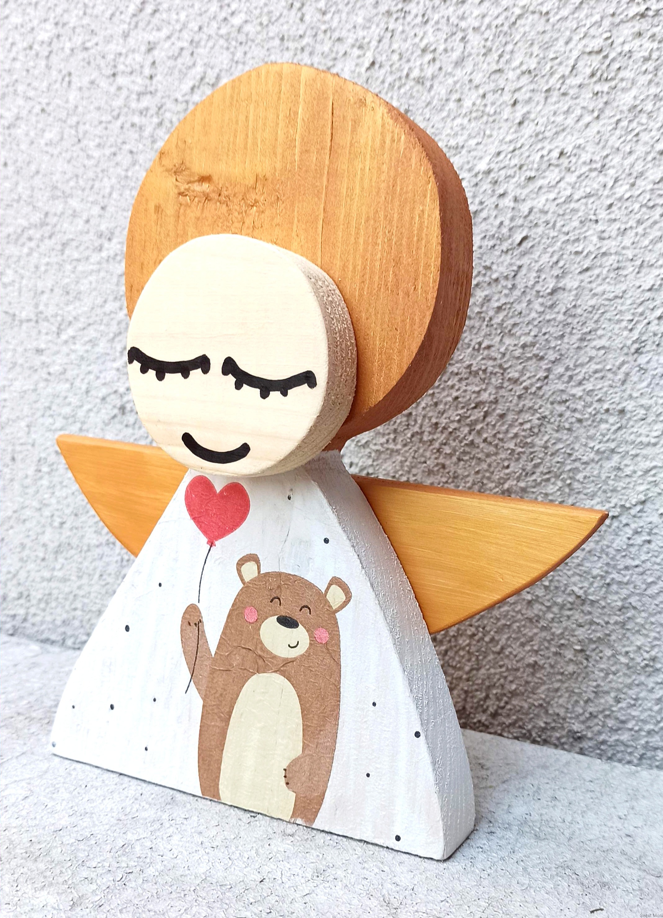 Aniołek z zakochanym misiem 22 cm do wewnątrz
