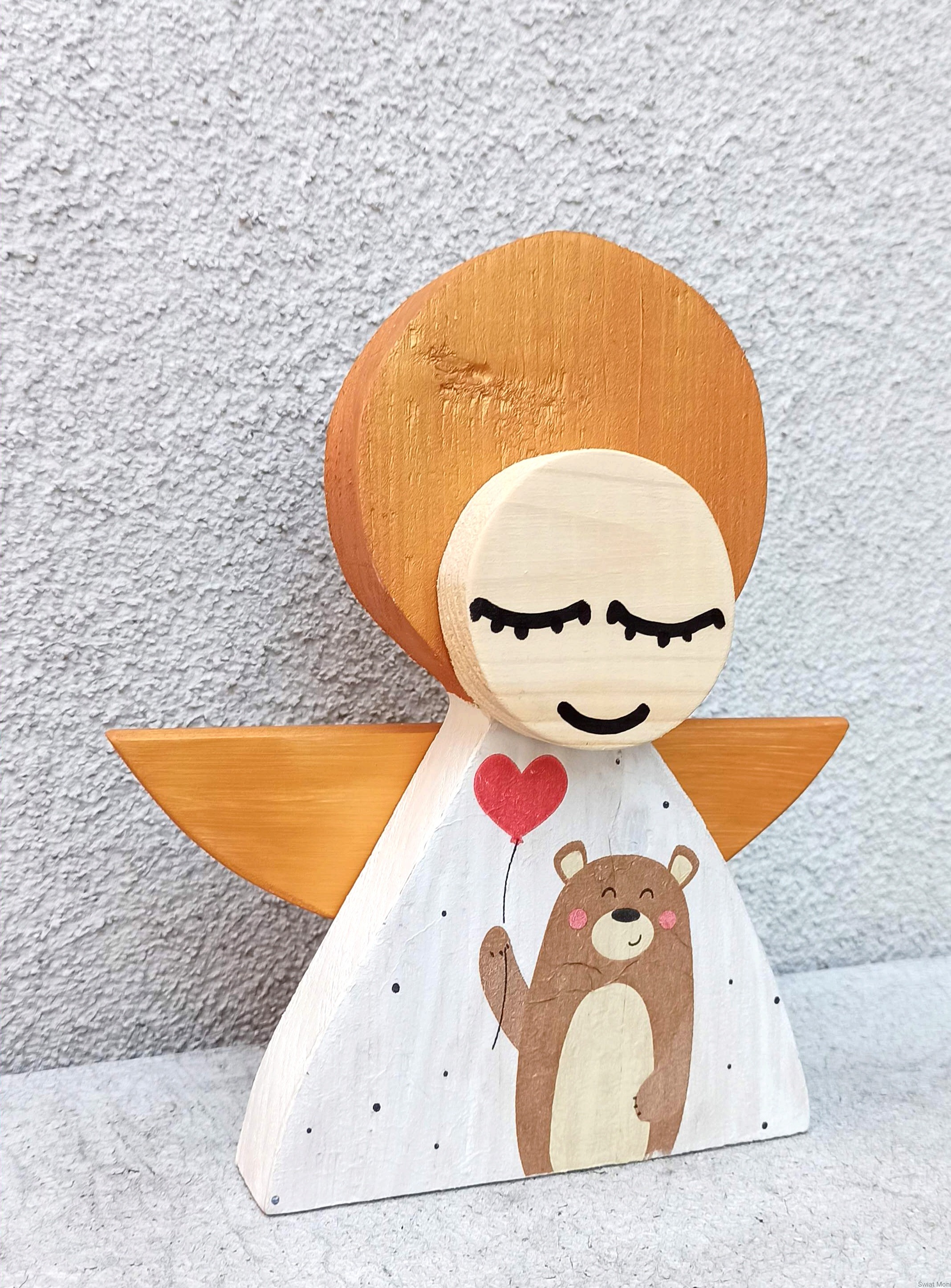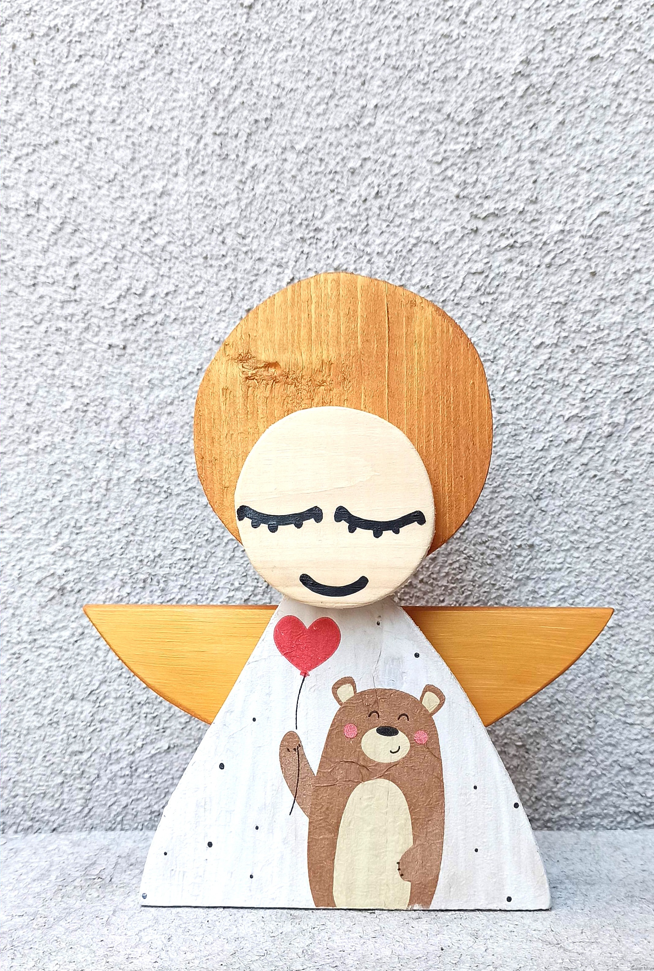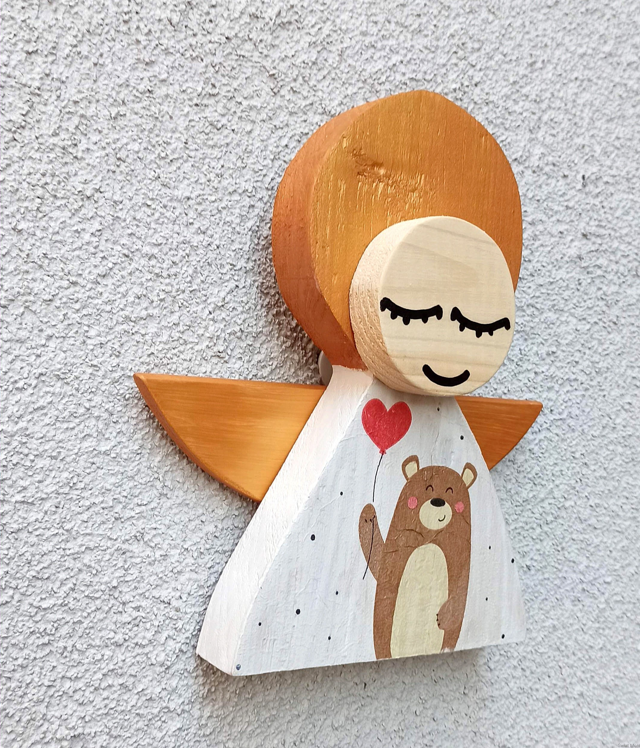 Aniołek z zakochanym misiem 22 cm do wewnątrz