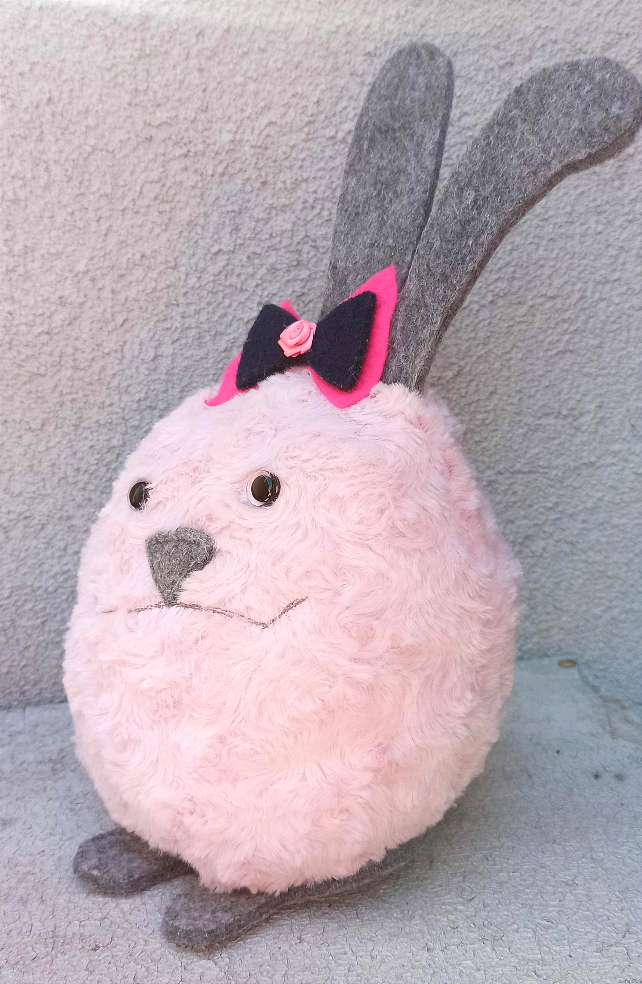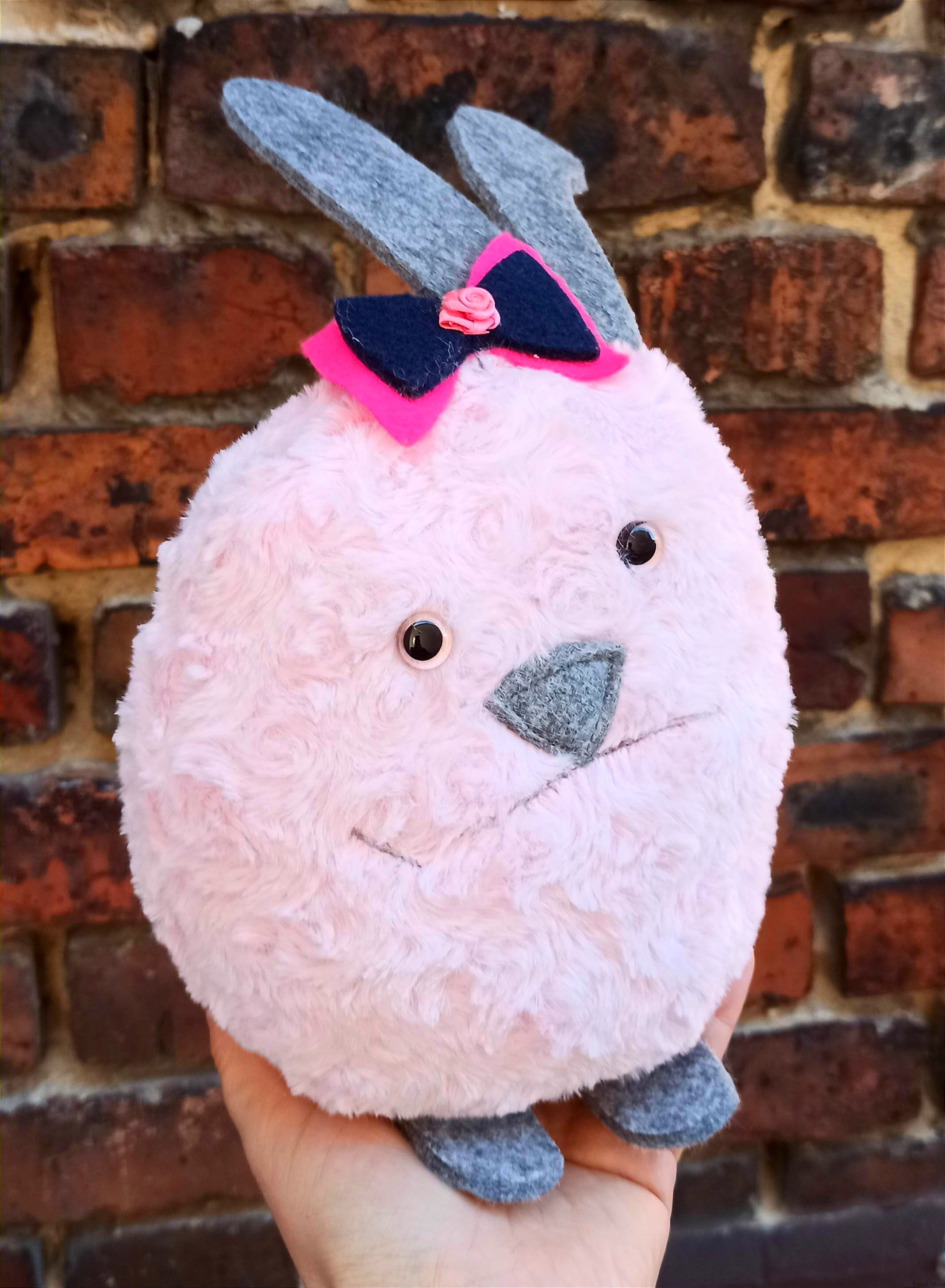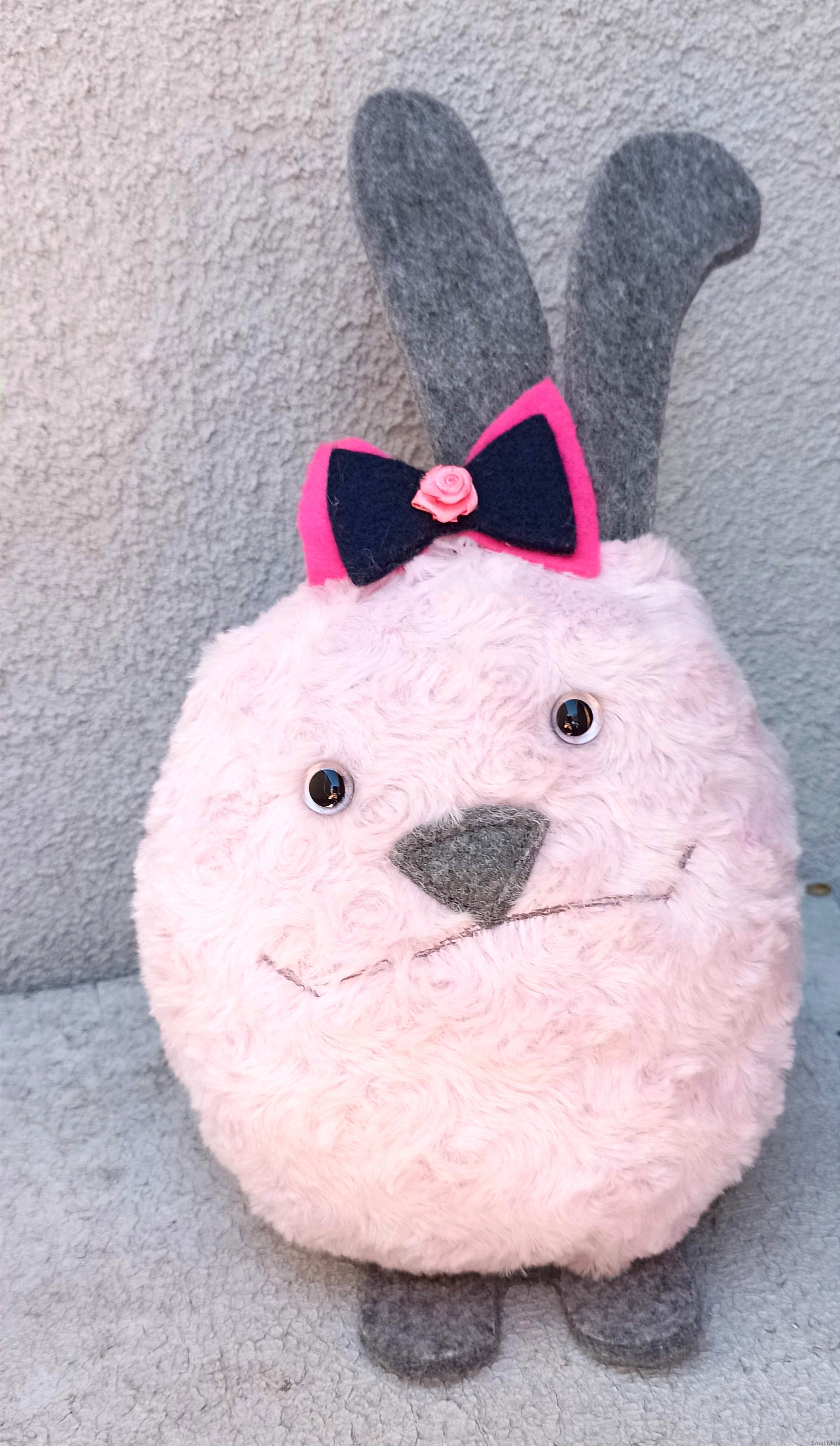 Królik pudrowo różowy z kokardką