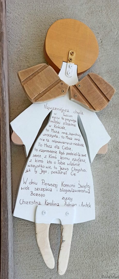 Na zamówienie Aniołek z dwoma kokami Pamiątka I Komunii Świętej