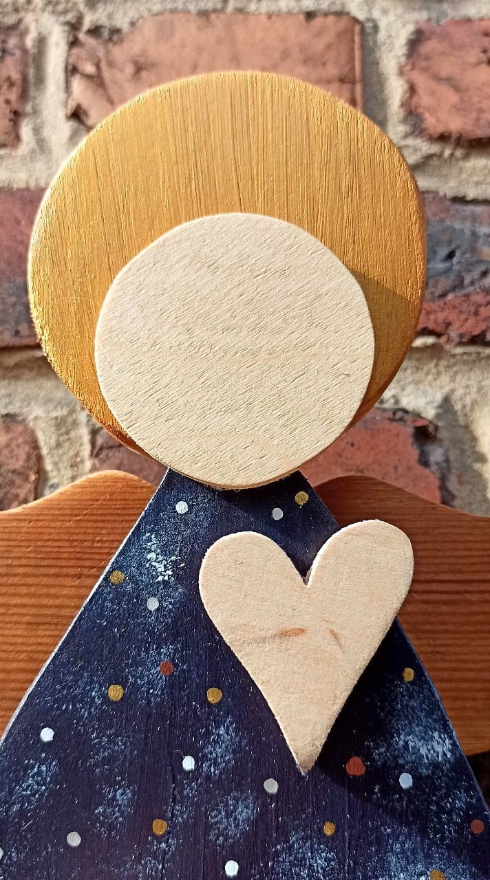 Niebiański Anioł Nadzieja ze złotą aureolą i suknią jak niebo pełne gwiazd. Na zamówienie dowolna kolorystyka i rozmiar.