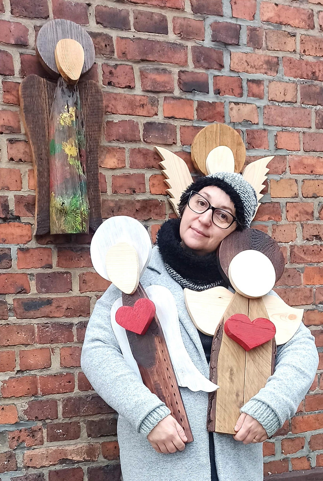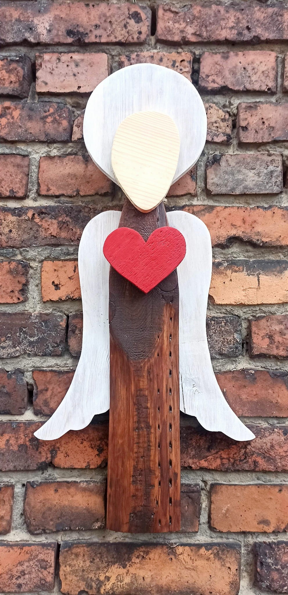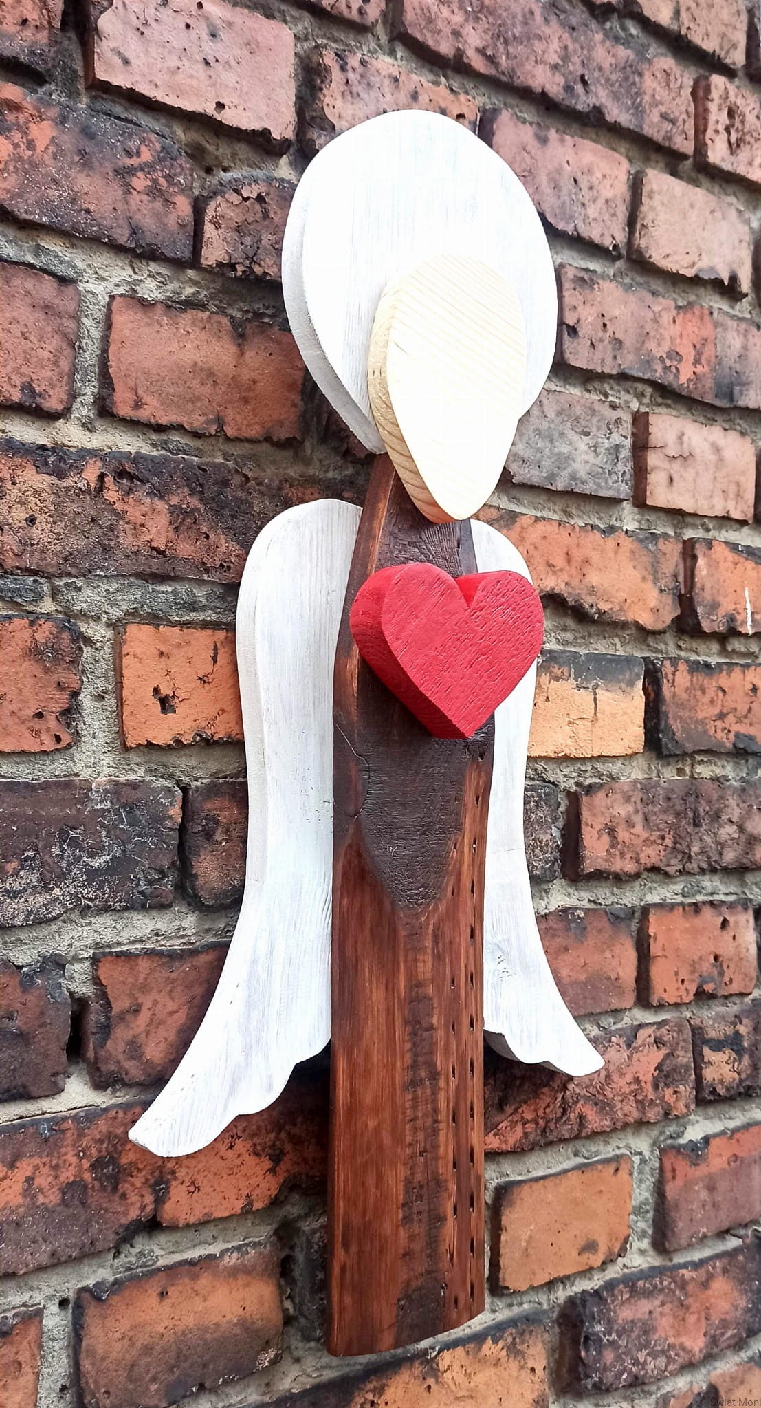REZERWACJA !!! Czuły Anioł z wielkim czerwonym sercem 63 cm do wewnątrz