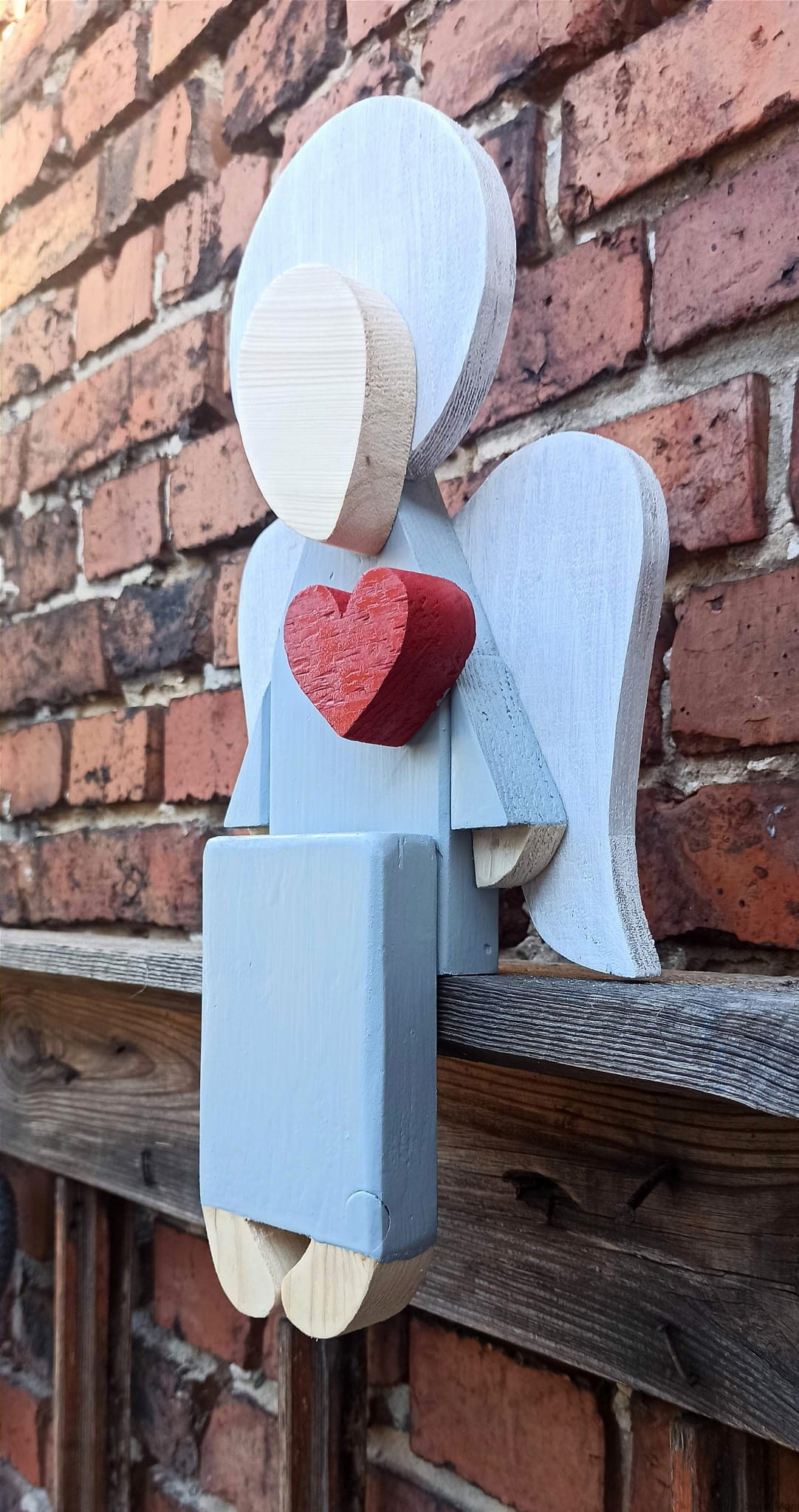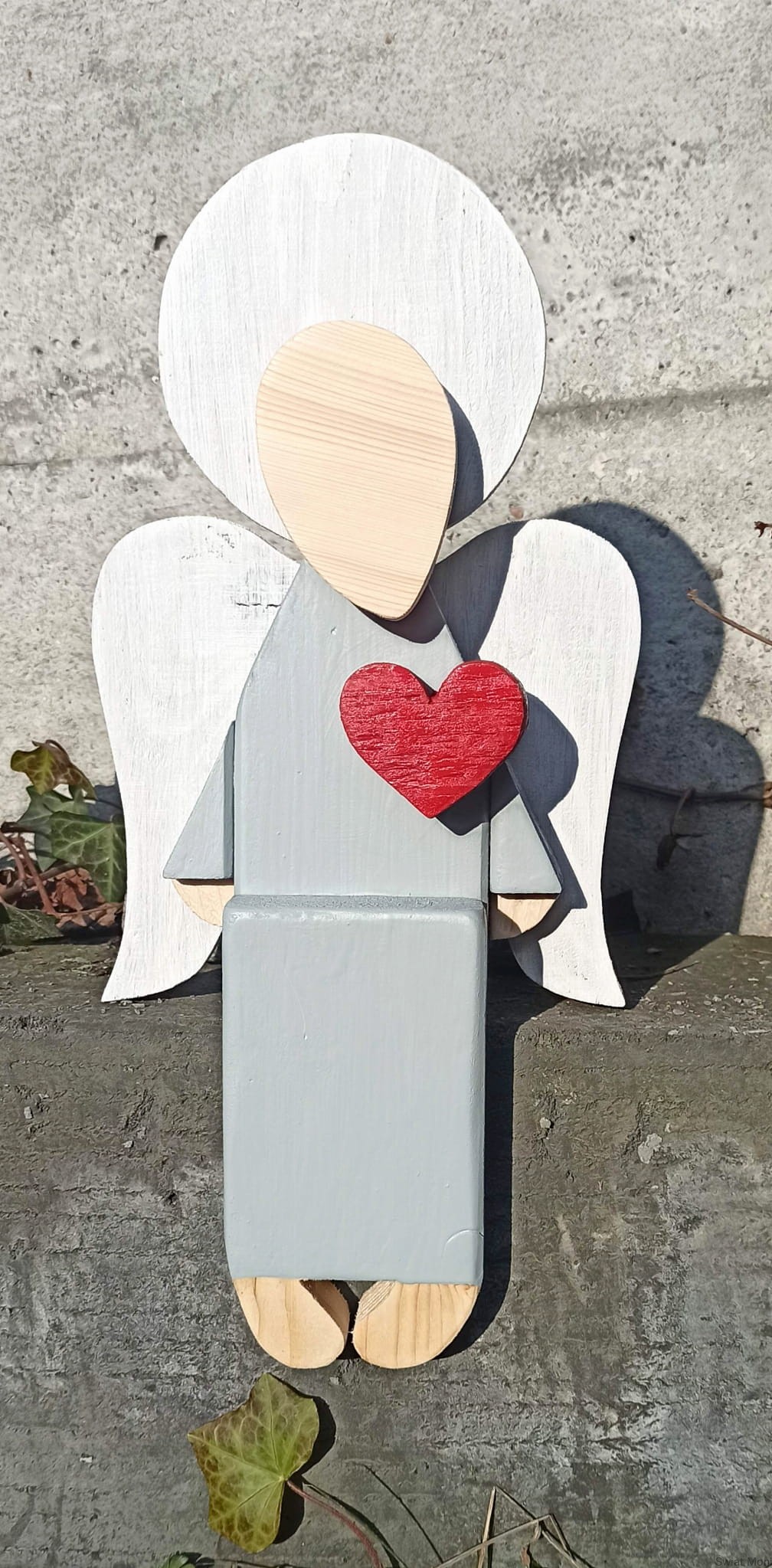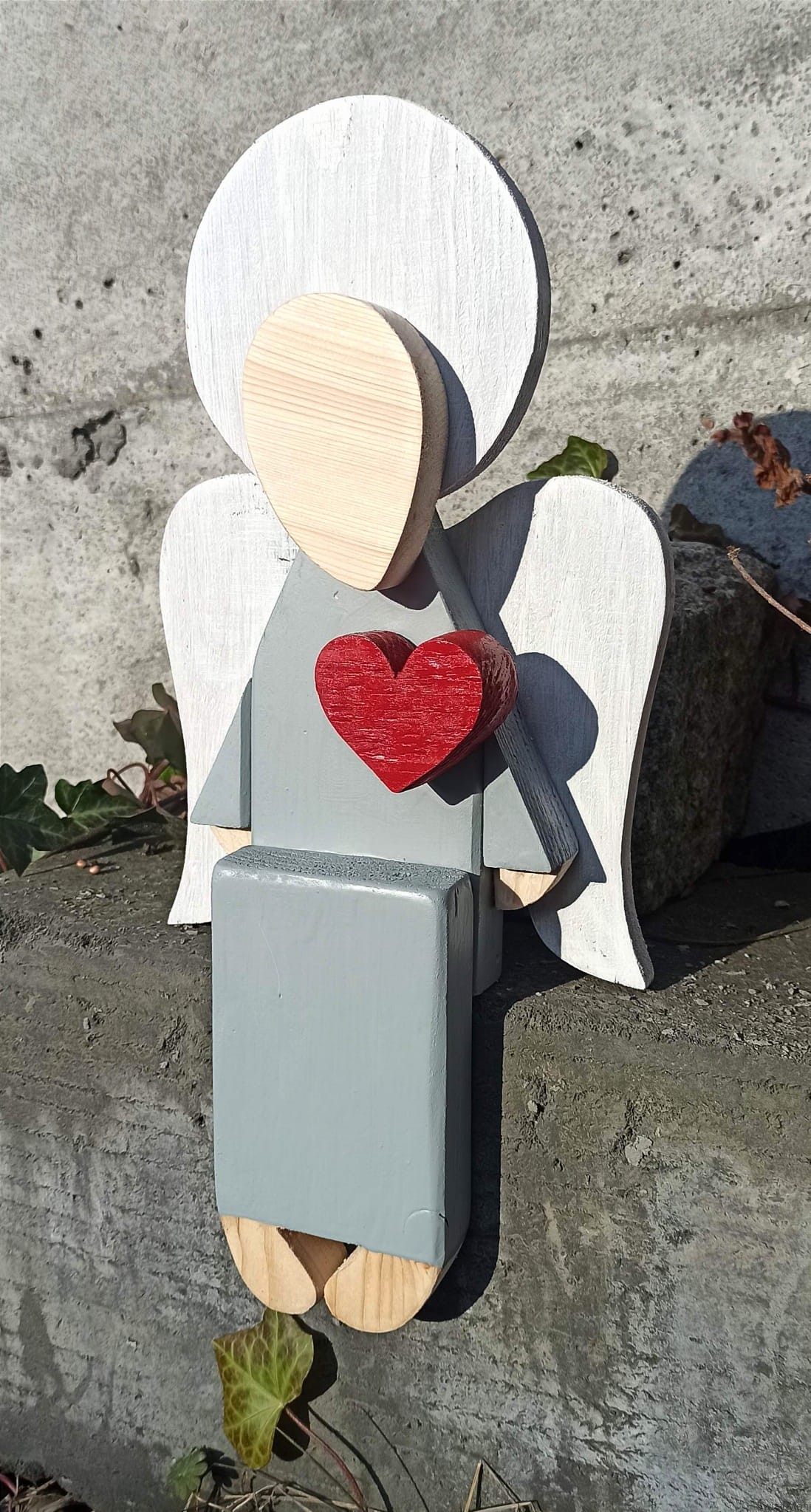 REZERWACJA !!! Siedzący Anioł w jasno szarej sukni 41 cm do wewnątrz