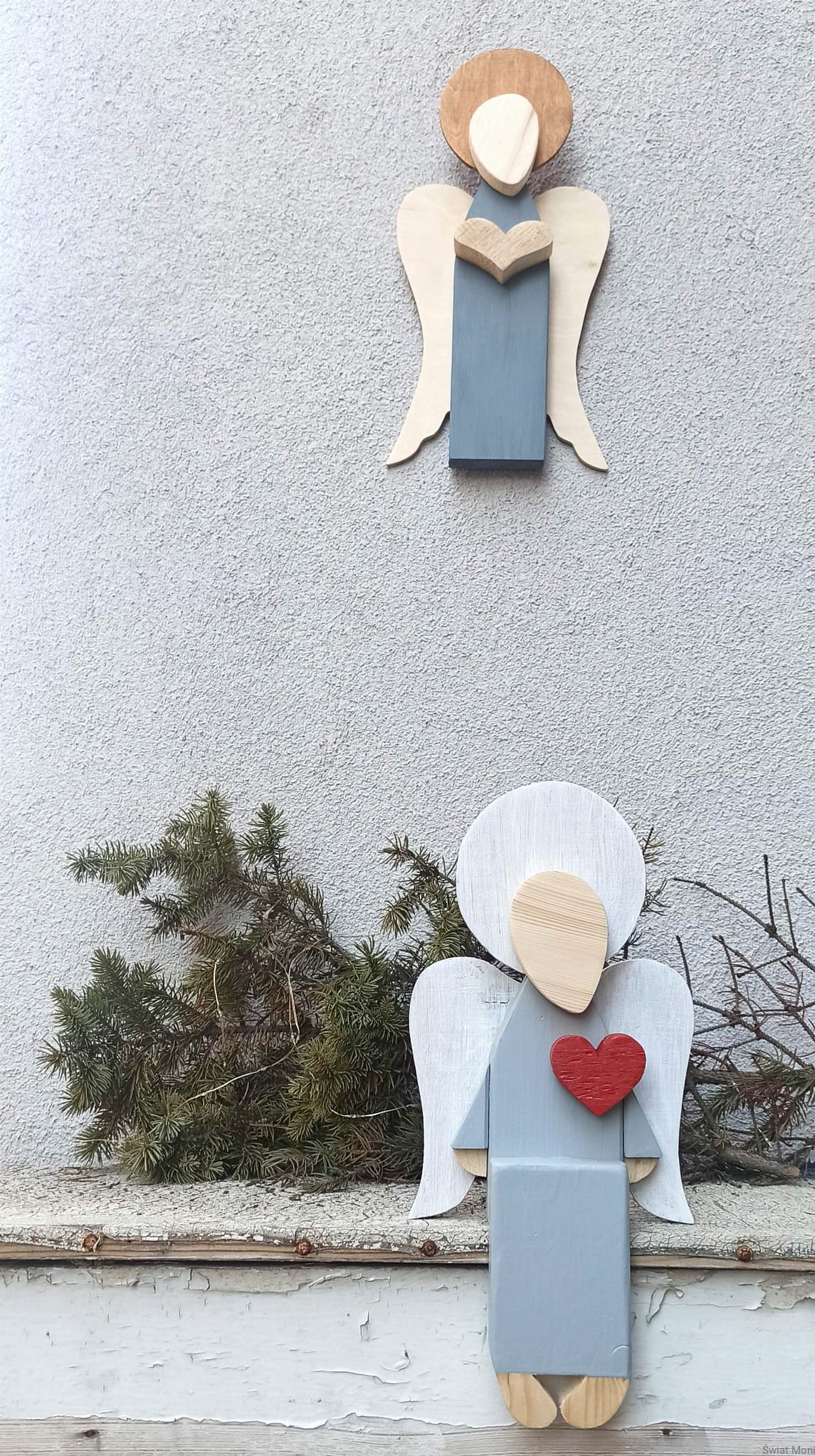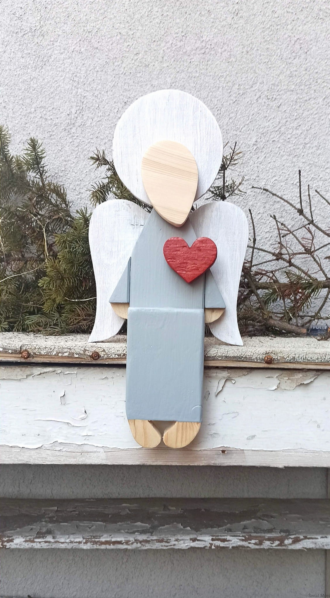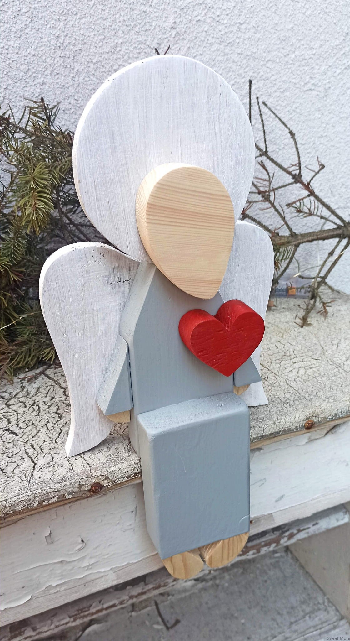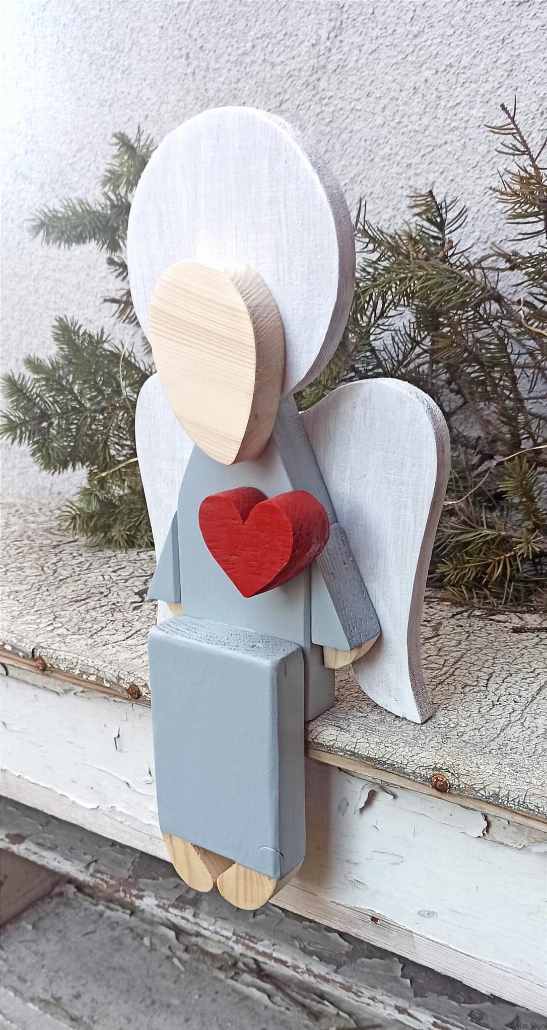 REZERWACJA !!! Siedzący Anioł w jasno szarej sukni 41 cm do wewnątrz