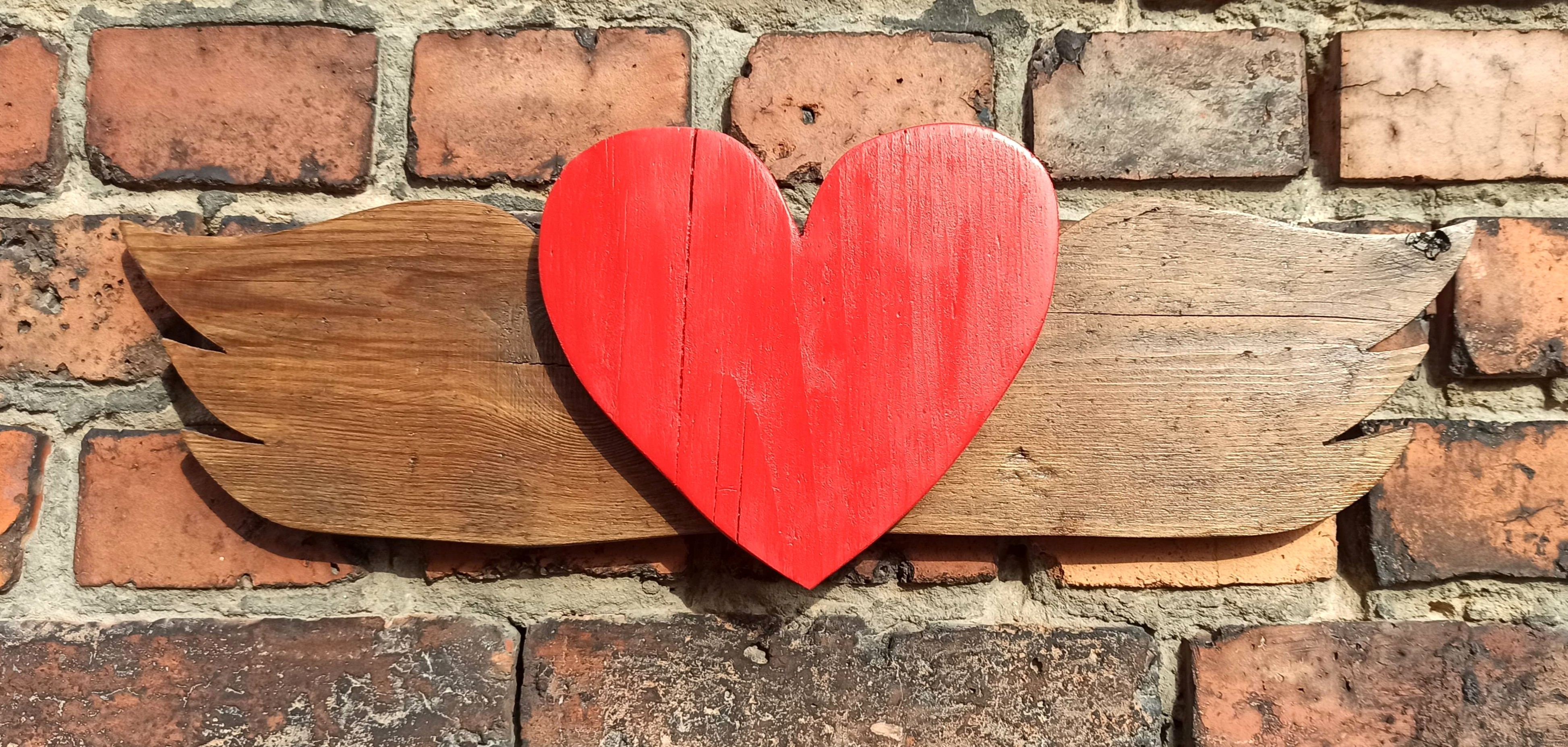 Skrzydła z czerwonym sercem 52 cm