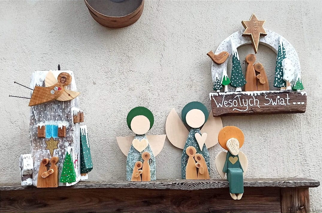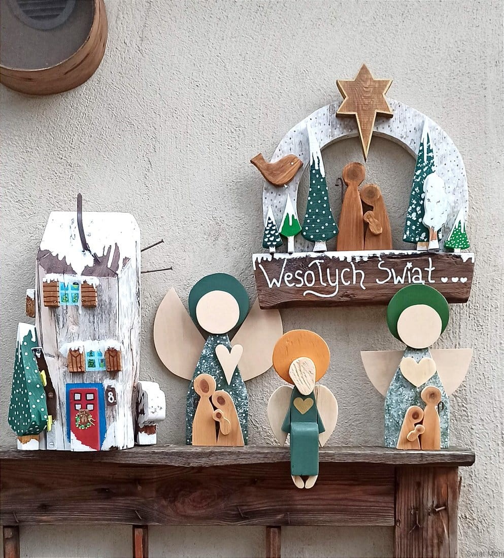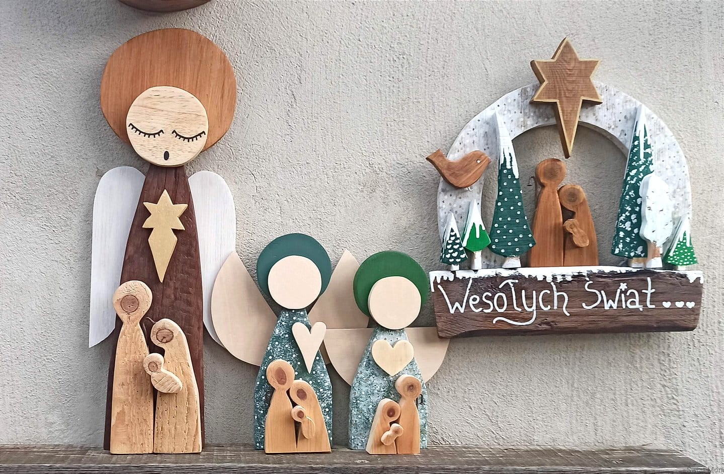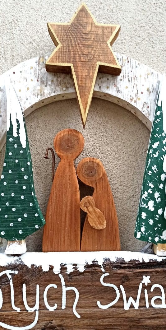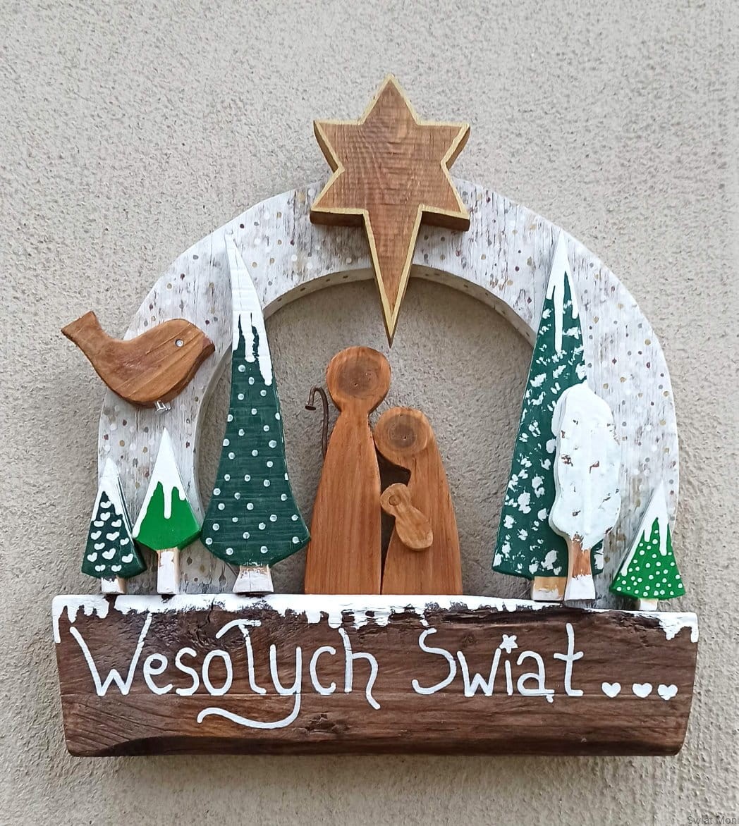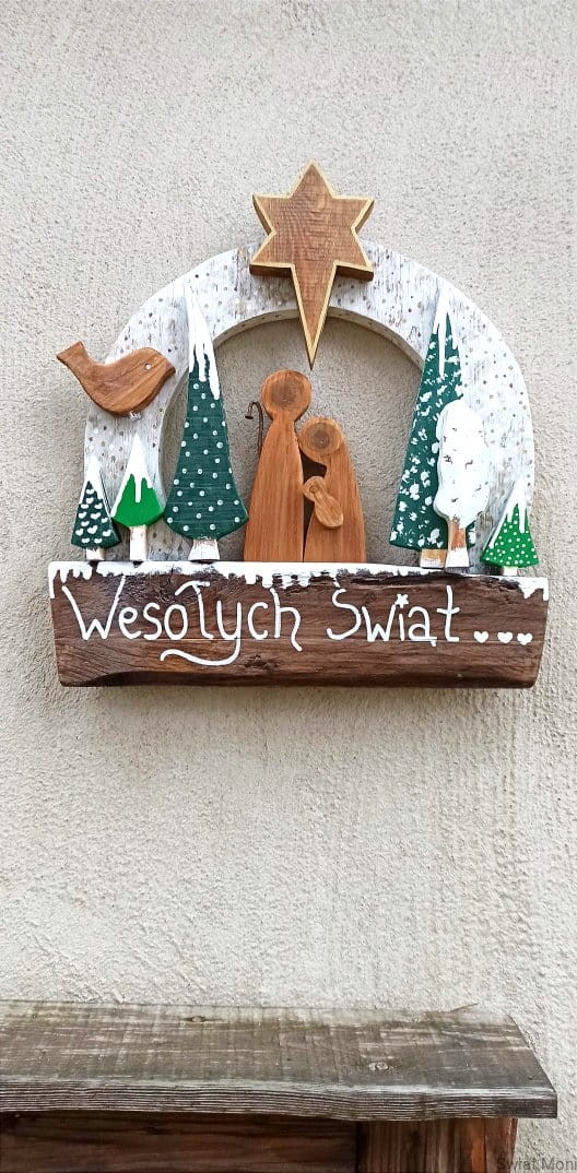 Wianek świąteczny ze Świętą Rodziną na zewnątrz 42x39 cm