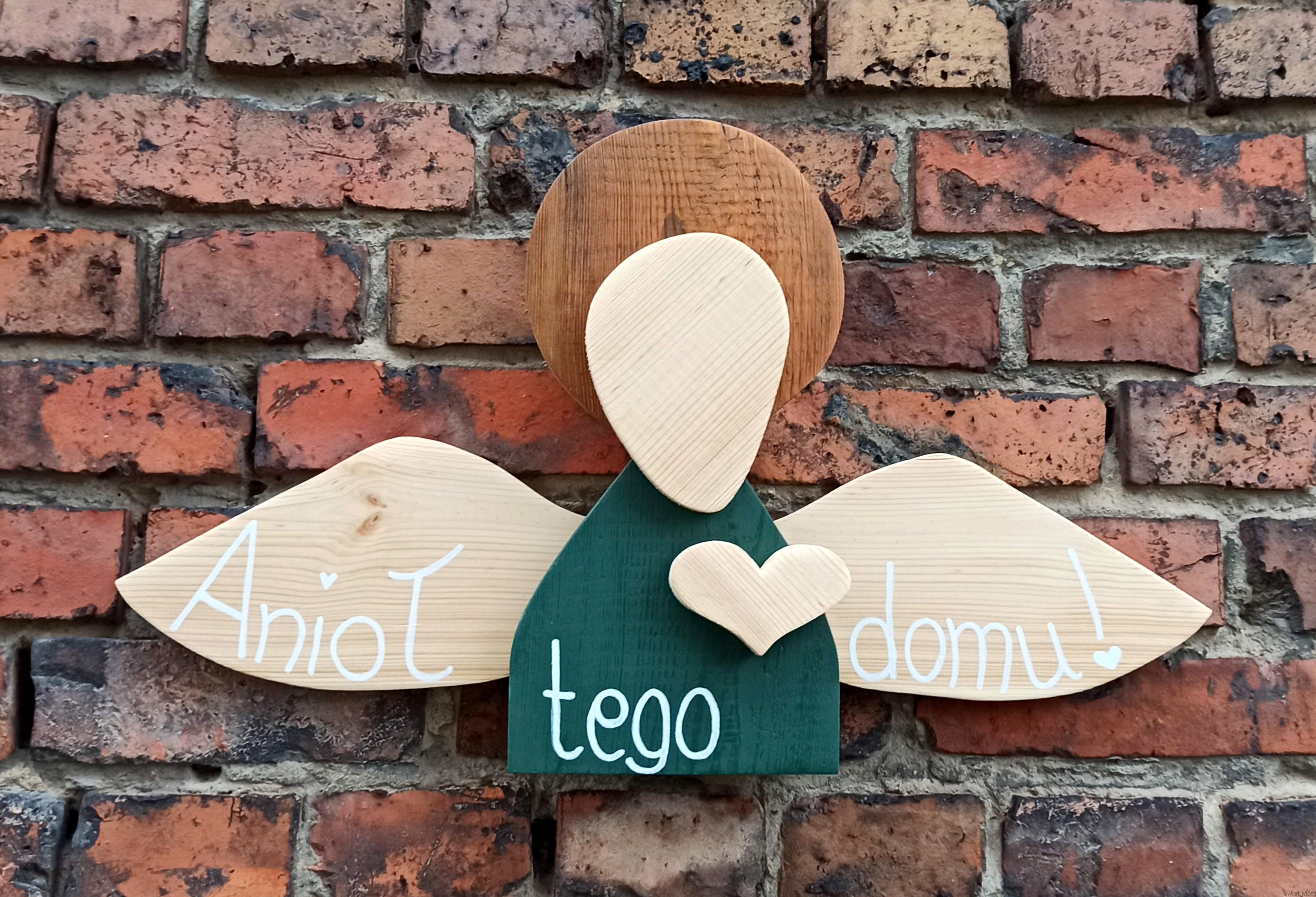 Zamów podobnego !!! Anioł tego domu nad drzwi w zielonej sukni 35x60 cm