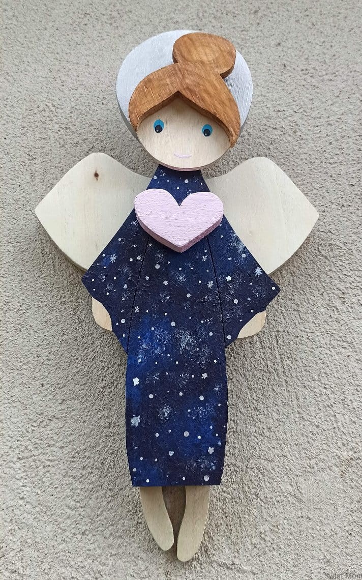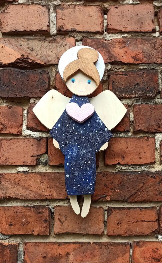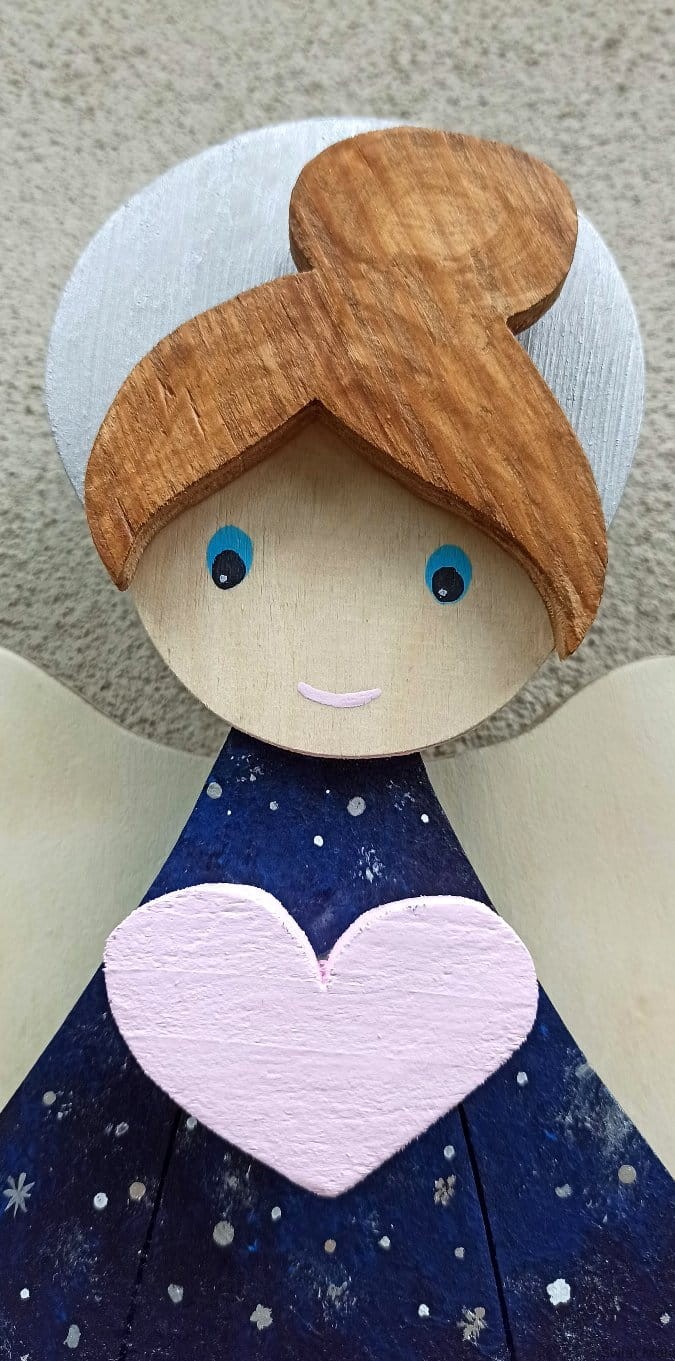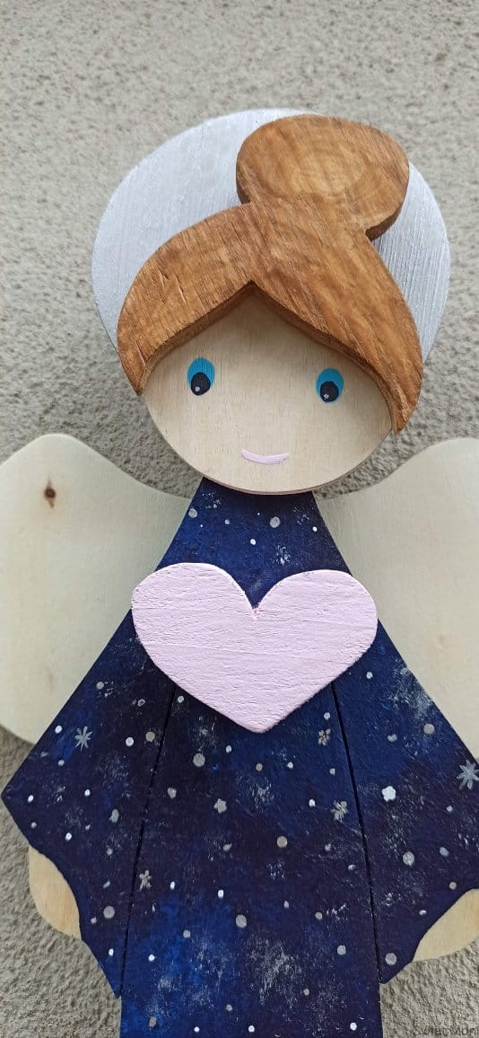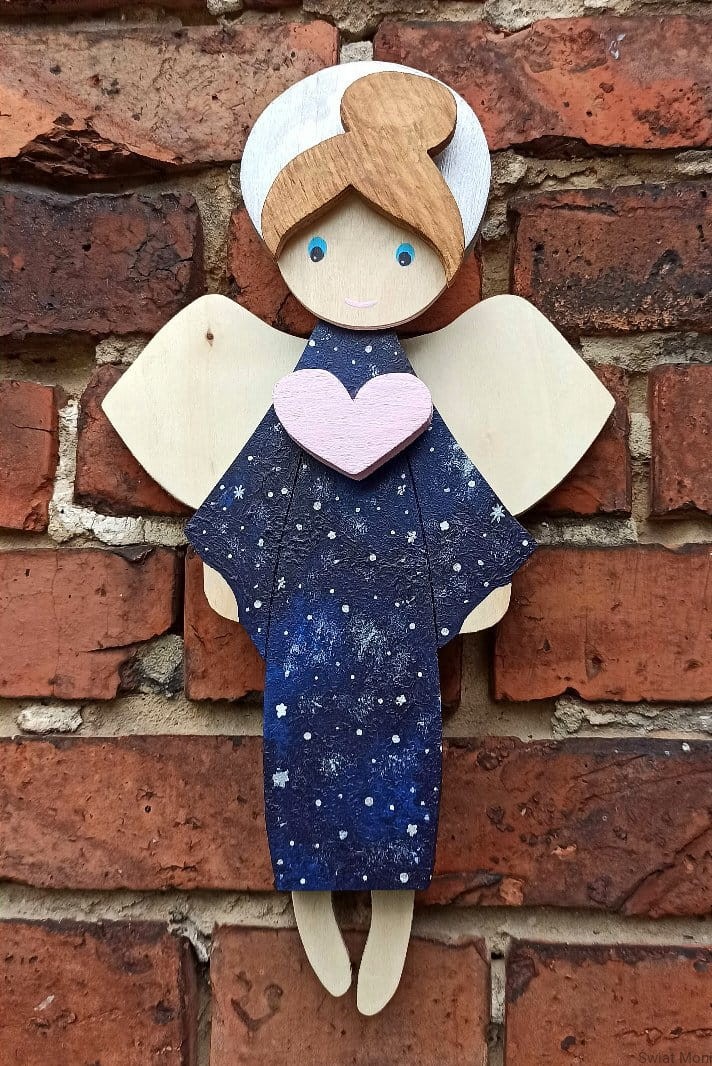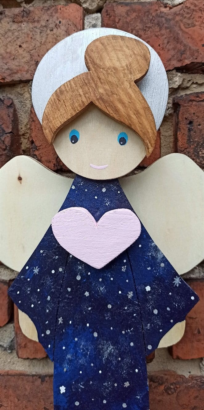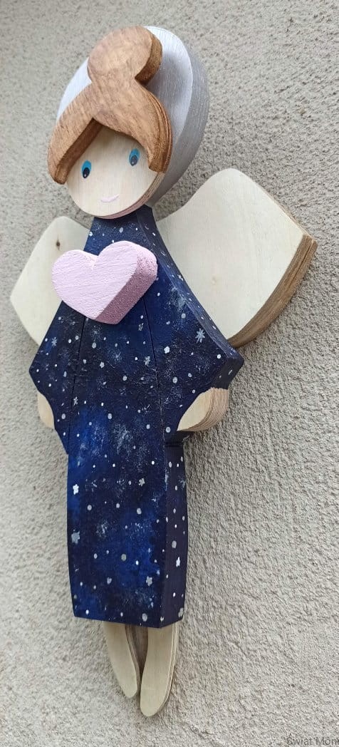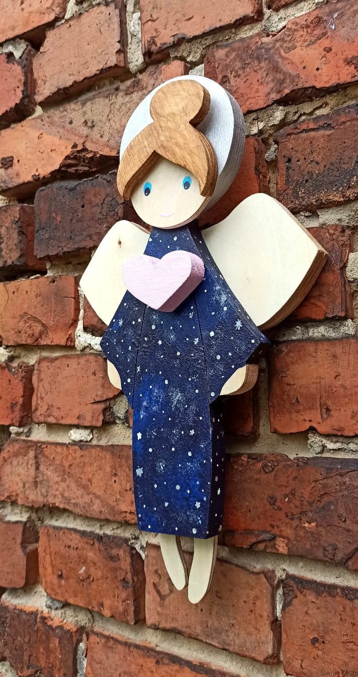 Niebiański Aniołek w sukni pełnej gwiazd, z pudrowo różowym sercem. Jeśli chcesz zamówić podobnego - napisz wiadomość i ustalimy szczegóły.