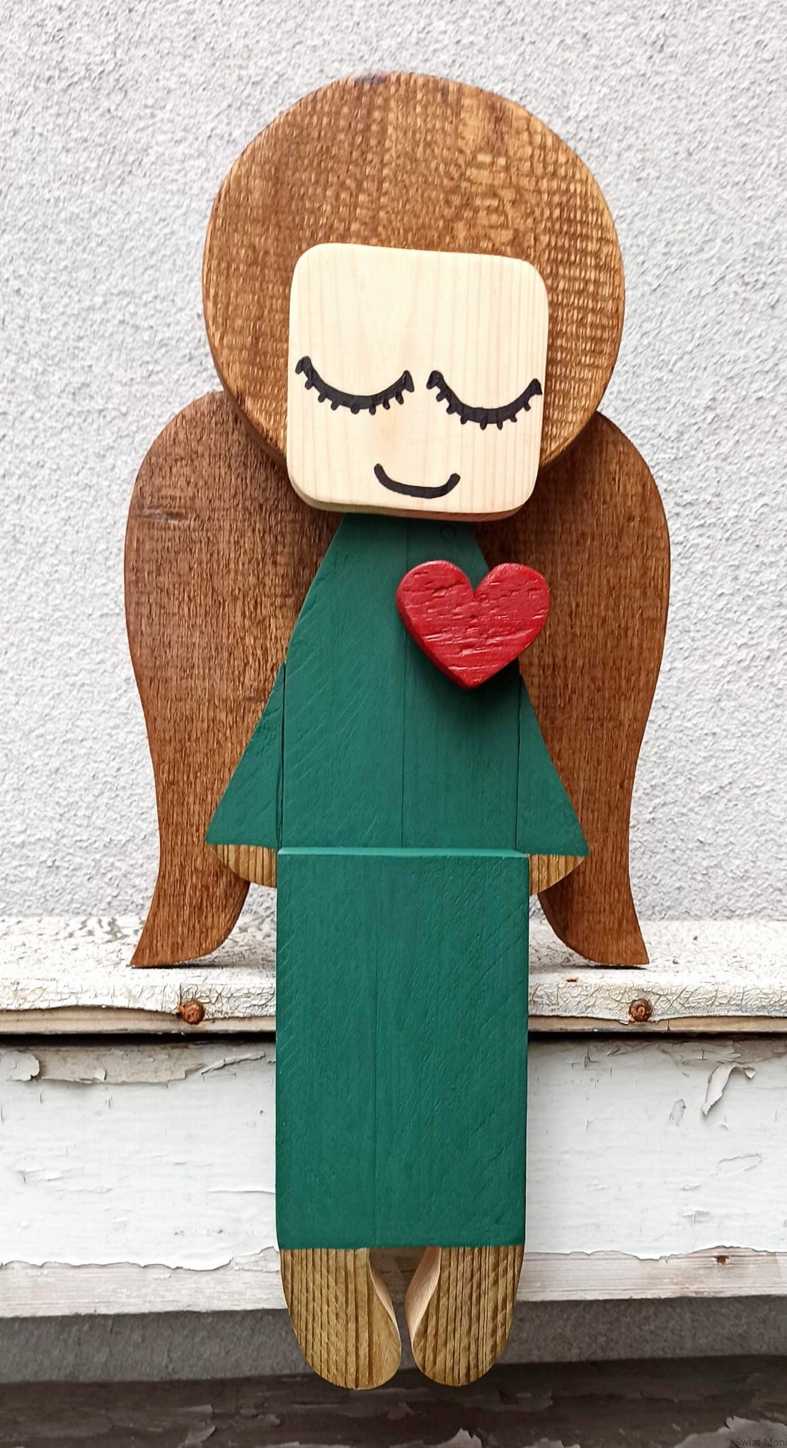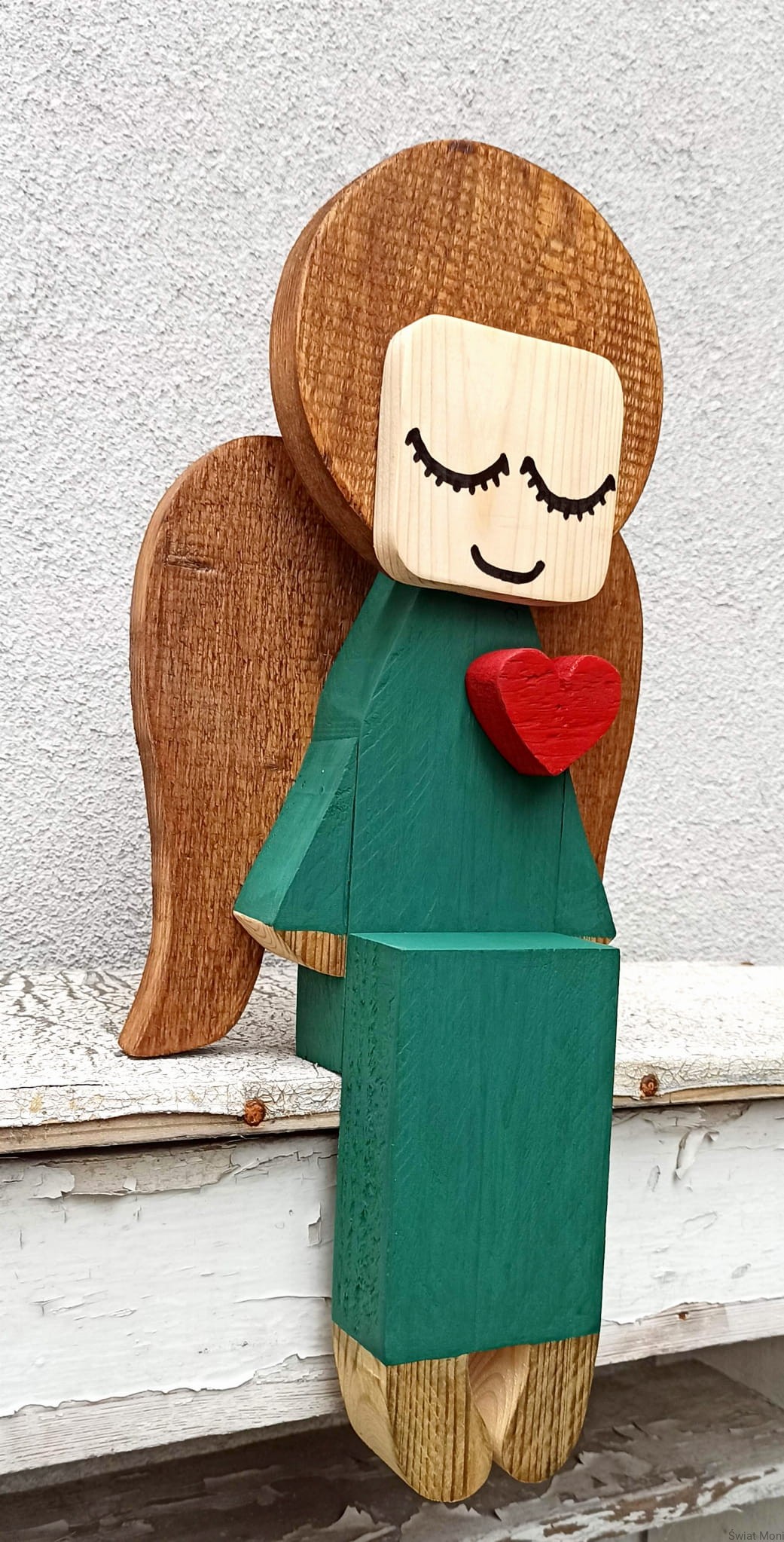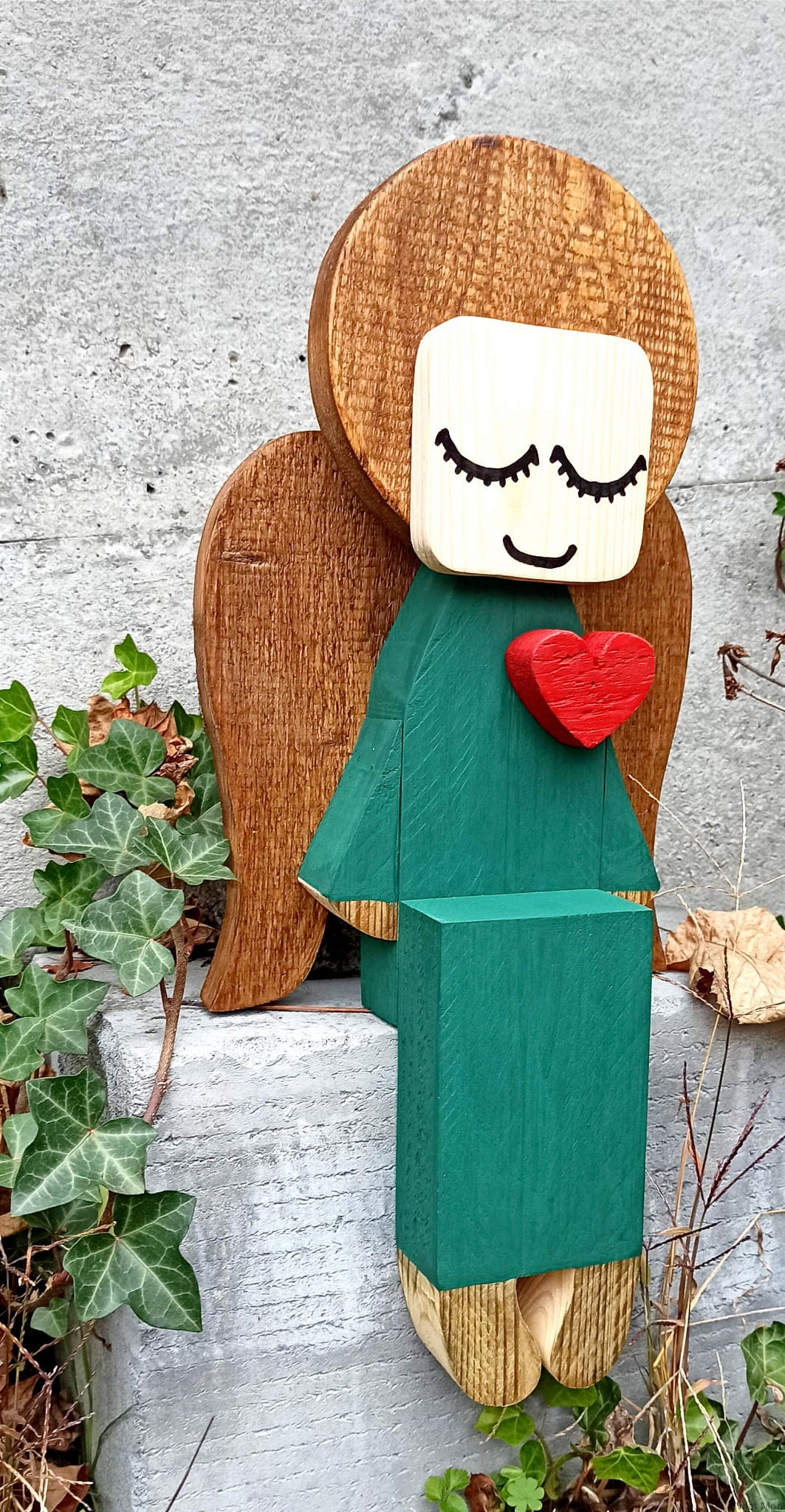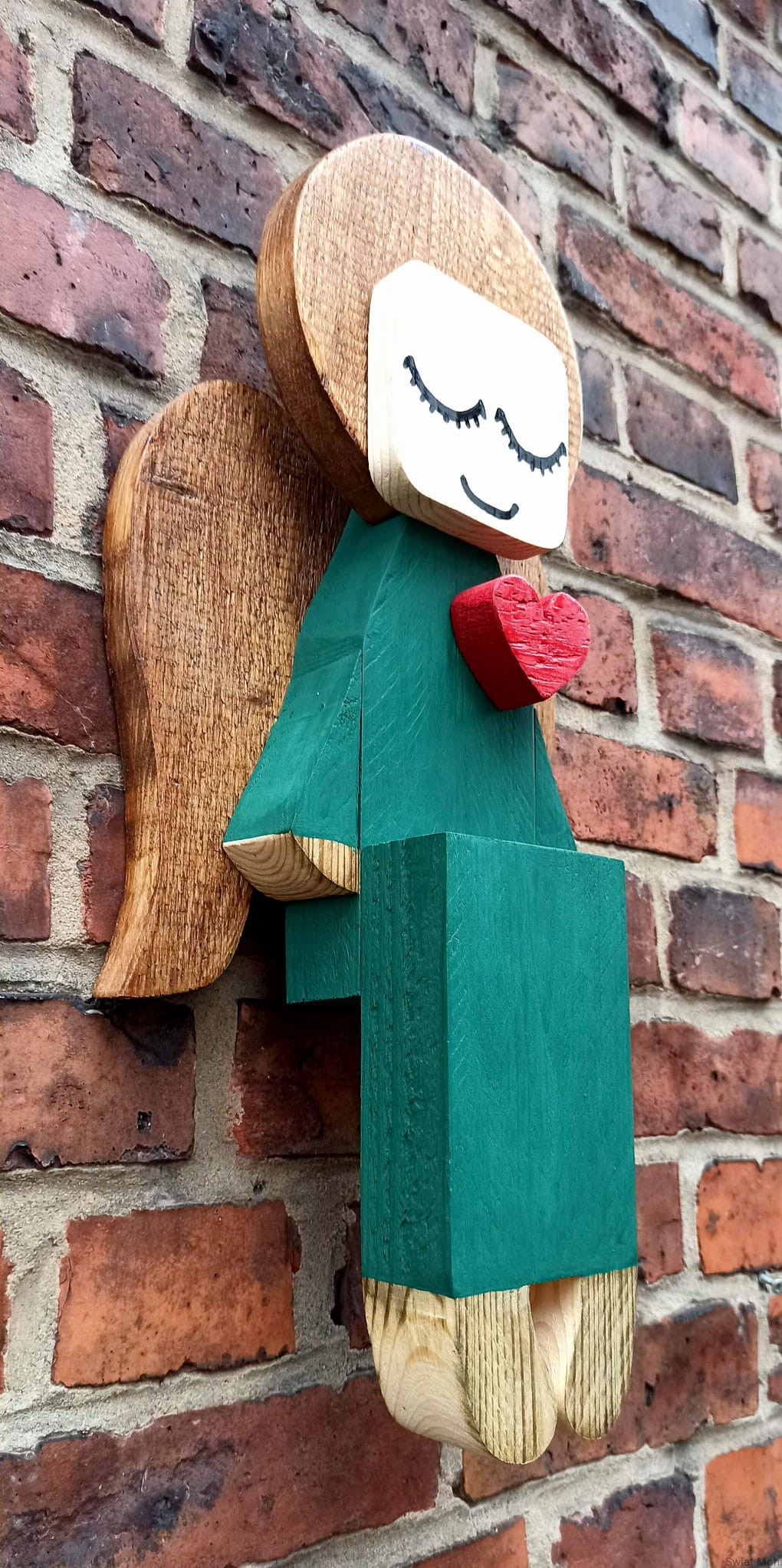 Zamów podobnego Siedzący Anioł w zielonej sukni z czerwonym sercem 54 cm na zewnątrz