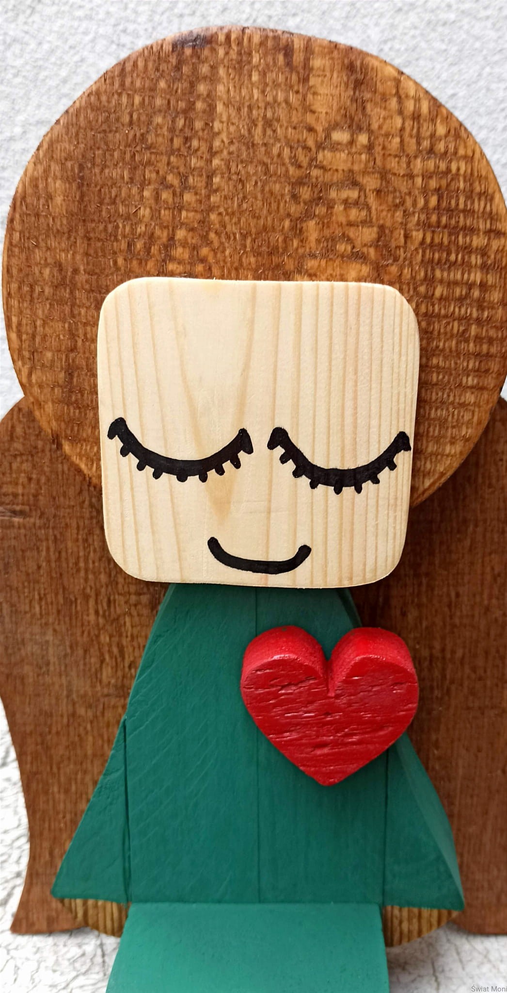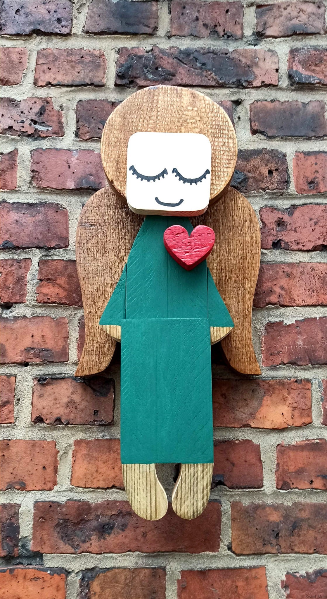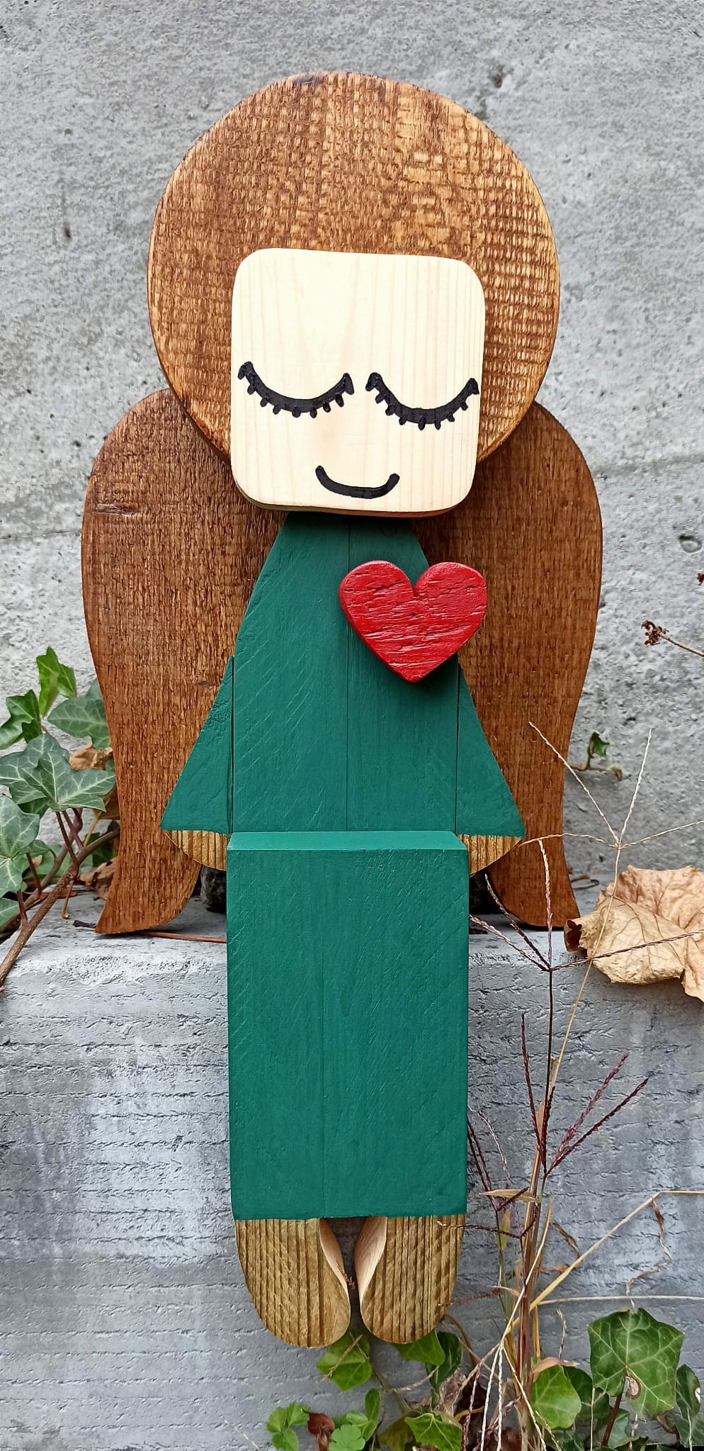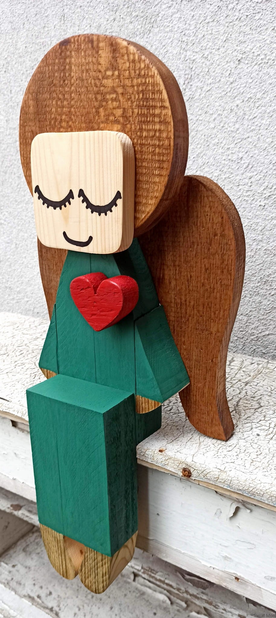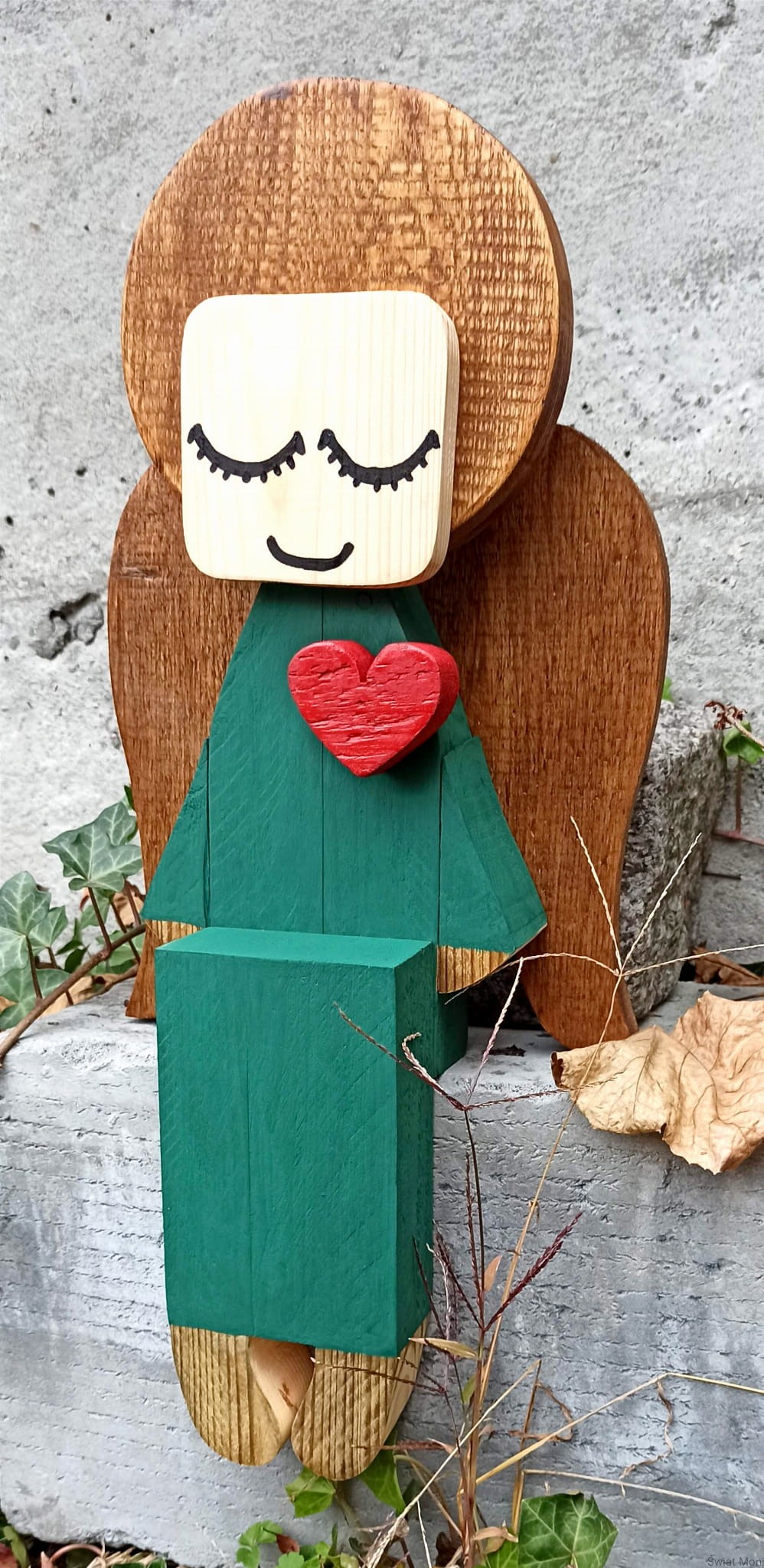 Zamów podobnego Siedzący Anioł w zielonej sukni z czerwonym sercem 54 cm na zewnątrz