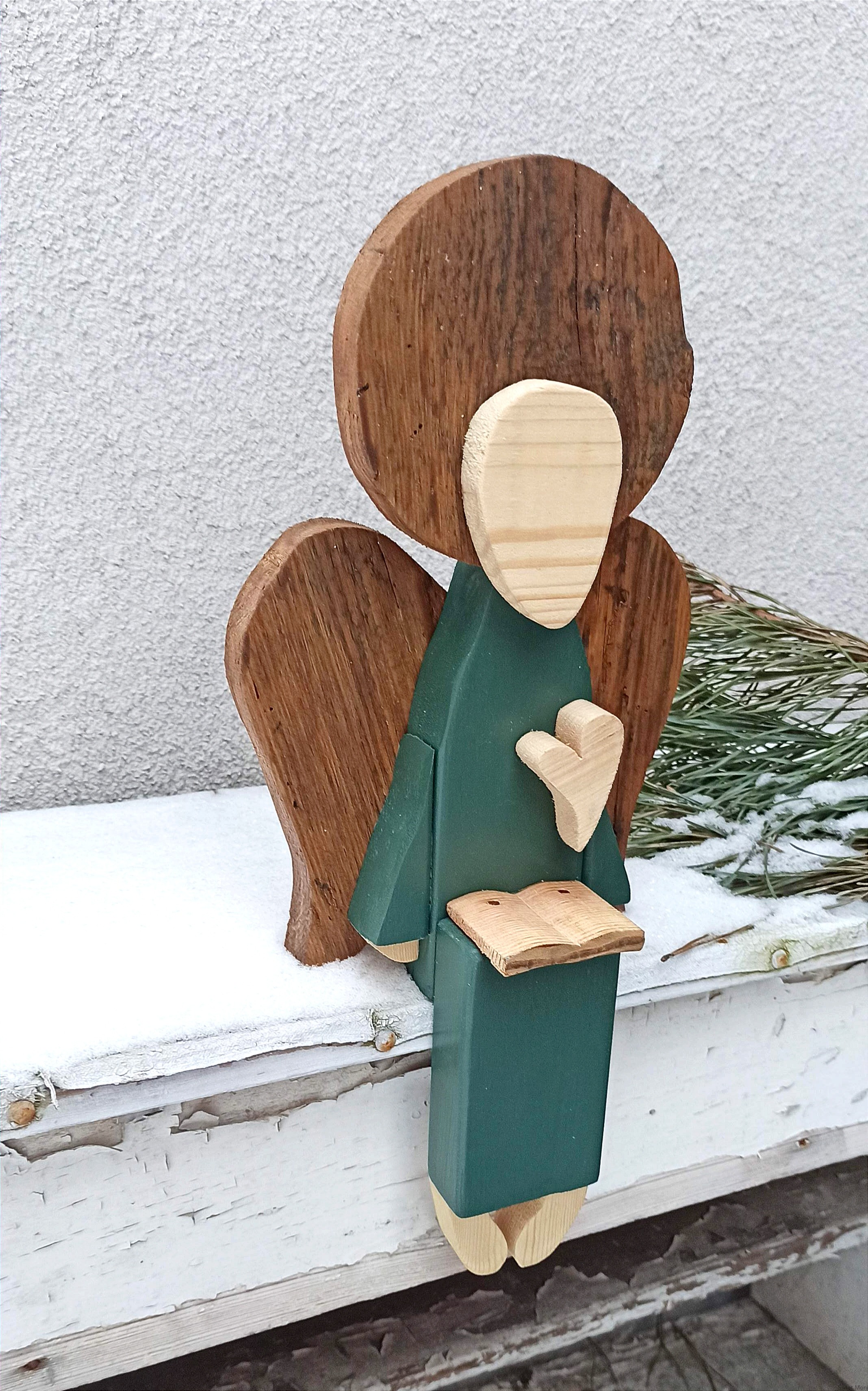Zamów podobnego !!! Siedzący Anioł w zielonej sukni z książką do wewnątrz 43 cm