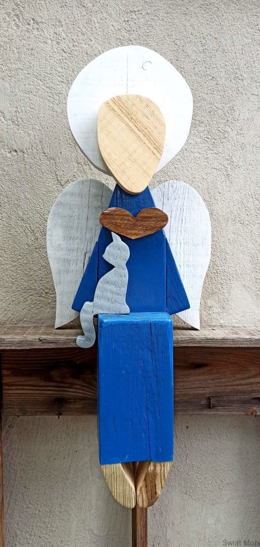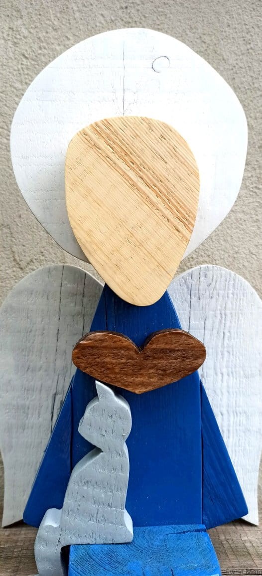 Zamów podobnego Siedzący Anioł z szarym kotem ok 61 cm