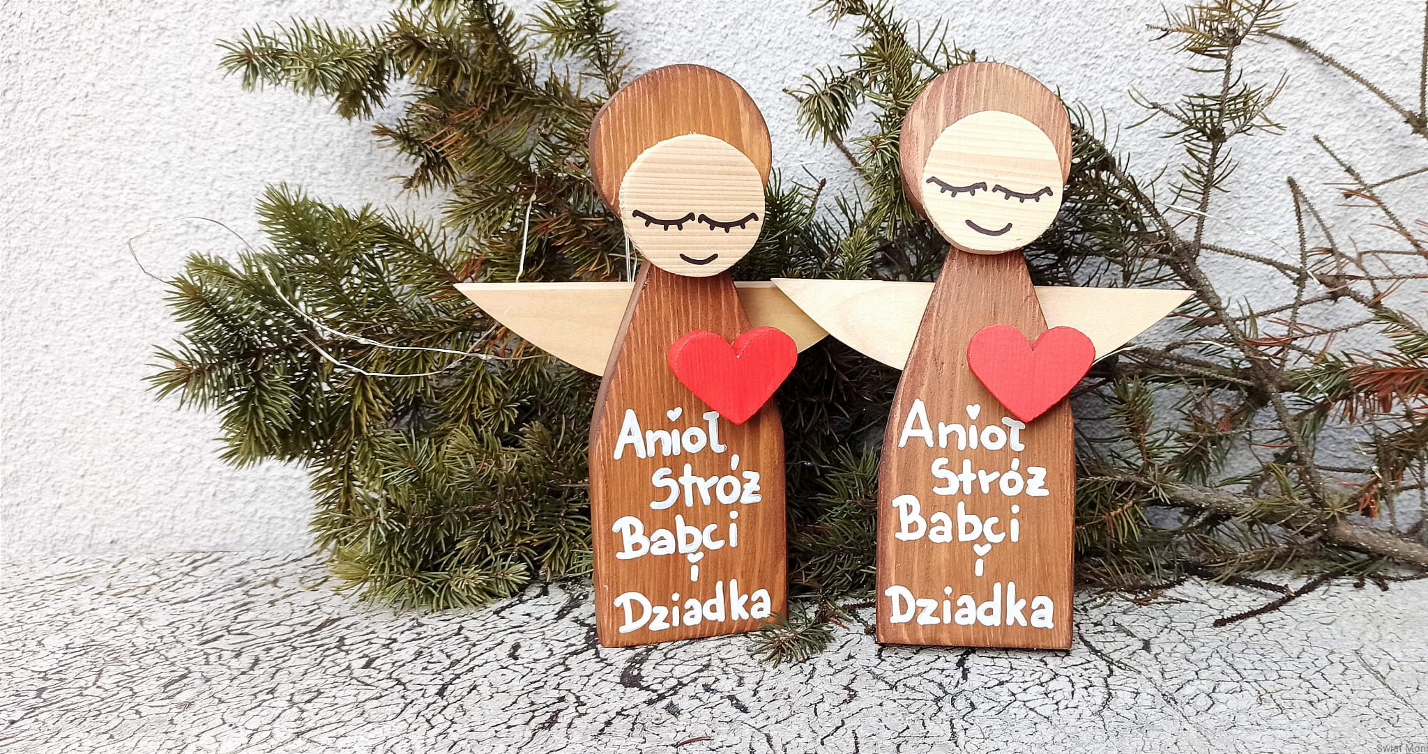 Zestaw 2 sztuki Anioł Stróż Babci i Dziadka 25 cm do wewnątrz